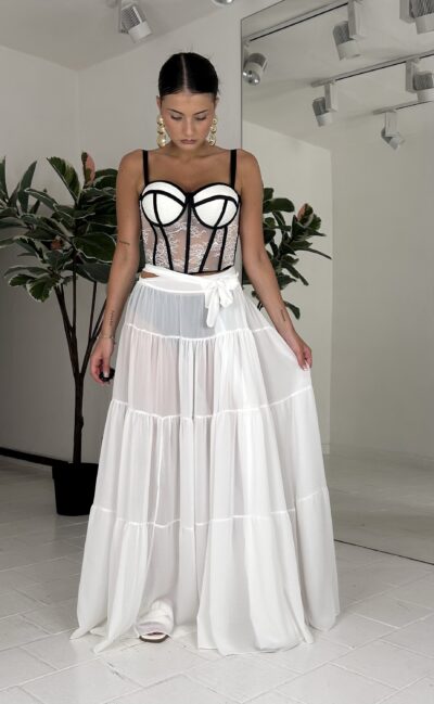Top più gonna, consiglio da xs ad L, con coppe , elasticizzato. La modella è alta 1.60cm ed è una taglia S