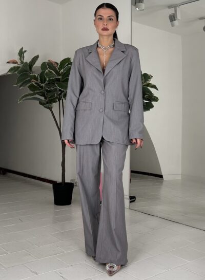 Consiglio da xs ad M. Blazer con bottoni, regolabile sul retro, foderato. Il pantalone con elastico sul retro, bottoni e tasche. La modella è una taglia S ed è alta 1.60cm