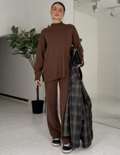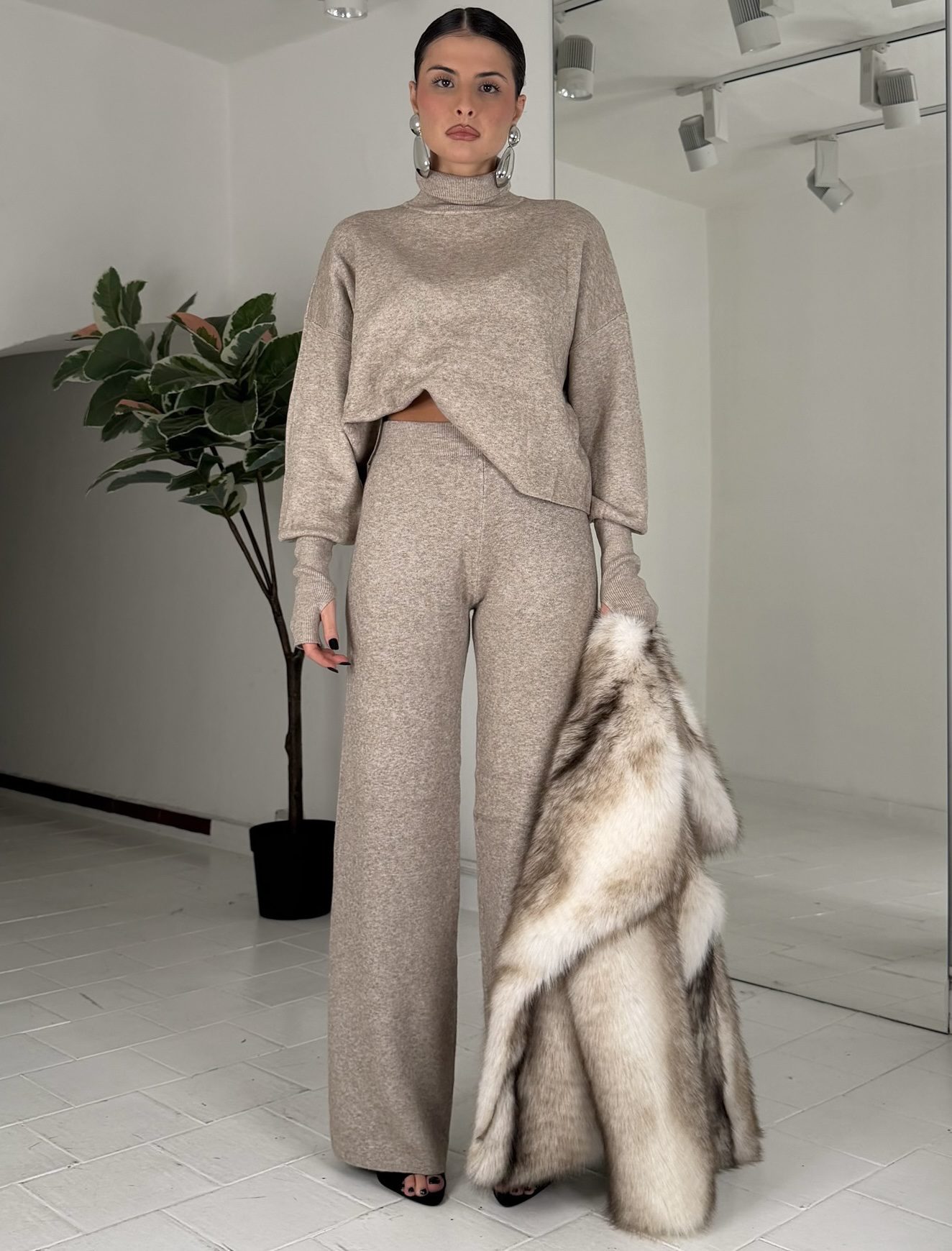 Consiglio per ogni taglia, in lana, cardigan + top. La modella è una taglia S ed è alta 1.60cm
