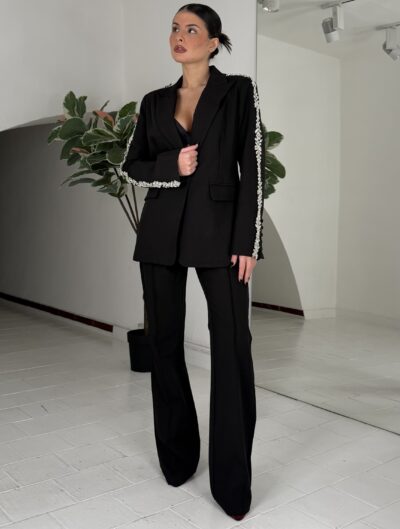 strutturato, top Quality, foderato, pantalone con bottone. La modella è una taglia S ed è alta 1.60cm