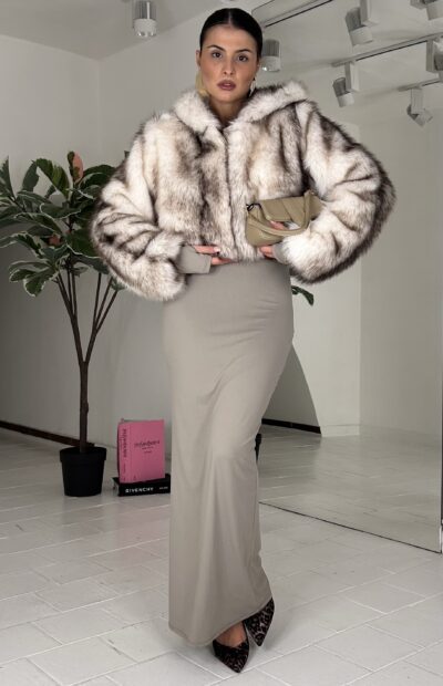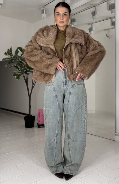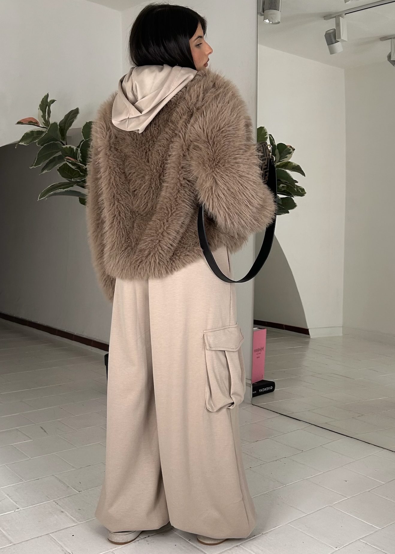 48,00 €Consiglio da xs ad L, con dettagli in ecopelle, foderata, con tasche e zip. La modella è una taglia S