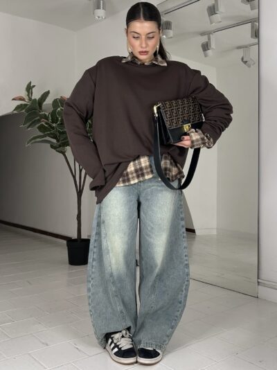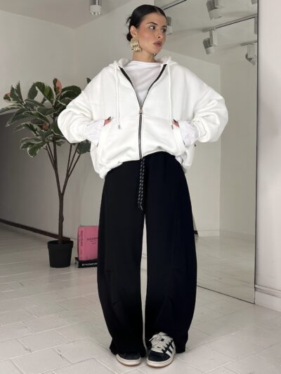 52,00 €JustWest , consiglio da xs ad XL, elastico alla base del pantalone e della felpa, con polsino, oversize. La modella è alta 1.60cm ed è una taglia S