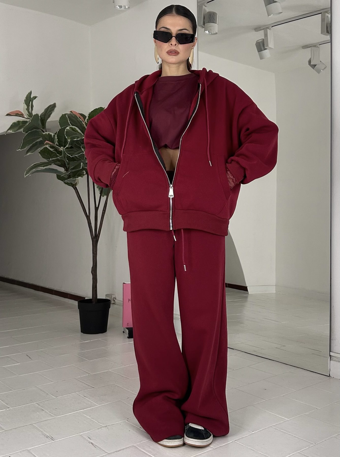 Felpa Zip bordeaux