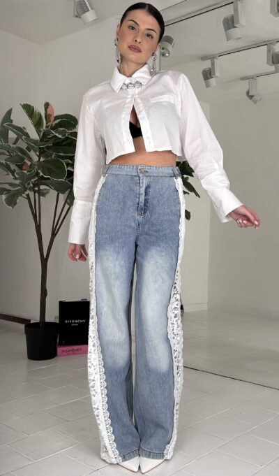Elastico sul retro, dettaglio pizzo e trasparenza, con tasche. Top quali. La modella è alta 1.60cm ed è una taglia S
