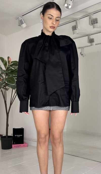 Consiglio da xs ad L, in cotone, dettaglio fiocco, con bottoni . La modella è una taglia S