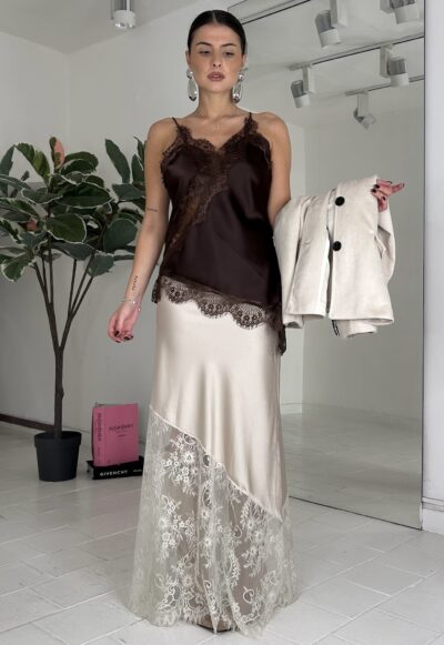 28,00 €In satin misto pizzo, regolabile sul retro, bretelle regolabili, consiglio da xs ad XL. La modella è una taglia S ed è alta 1.60cm