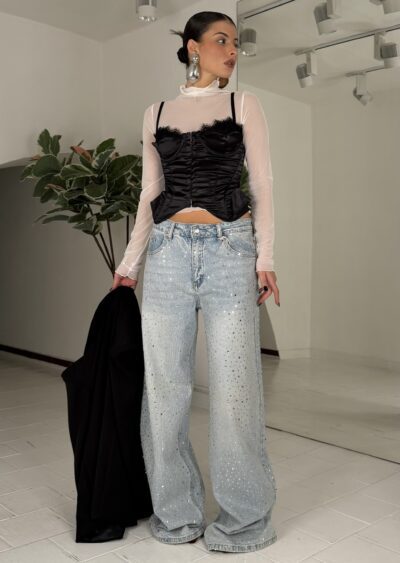 16,00 €Consiglio da xs ad XL, elasticizzata, maniche incorporate in pizzo. La modella è una taglia S ed è alta 1.60cm