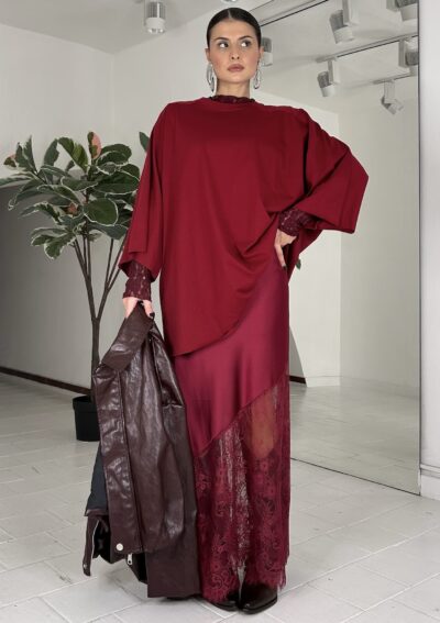 Consiglio da xs ad L, maniche in pizzo incorporate, in cotone. La modella è una taglia S ed è alta 1.60cm