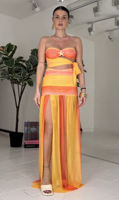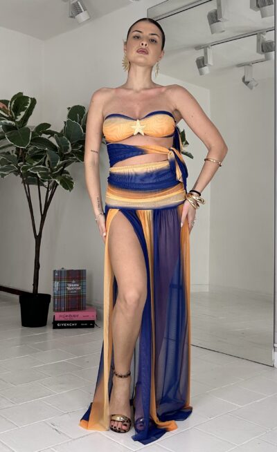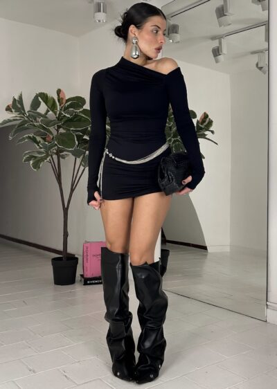 Body più gonna. Consiglio da xs ad L, elasticizzato, con applicazione centrale, con con spacco . La modella è alta 1.60cm ed è una taglia S
