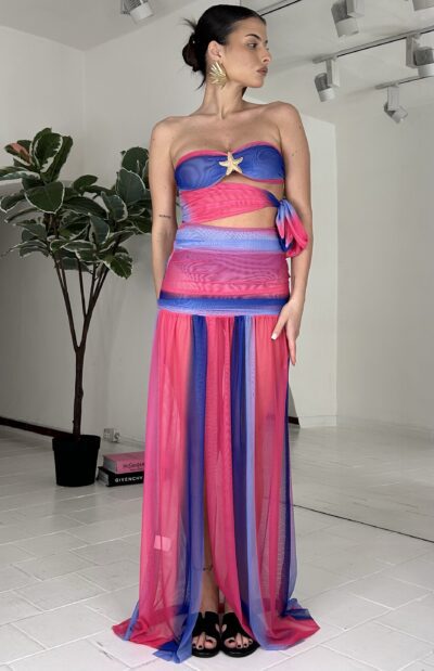 Consiglio da xs ad M, regolabile sul retro, vestito effetto in trasparenza. La modella é alta 1.60cm ed è una taglia S