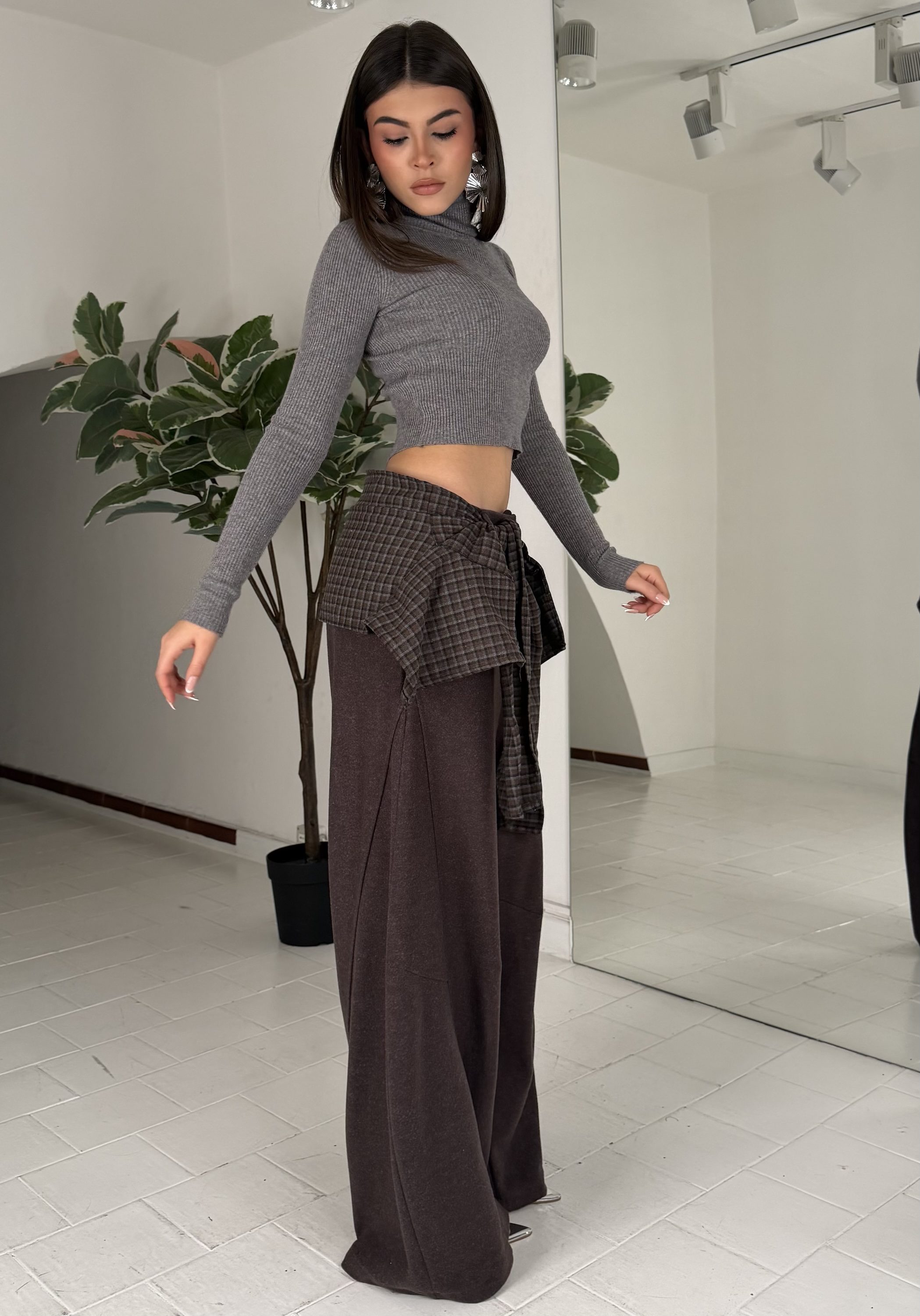 Consiglio da xs ad L, elastico sul retro, con bottone, zip, tasche, passanti, dettaglio camicia rimovibile. La modella รจ una taglia S ed รจ alta 1.65cm
