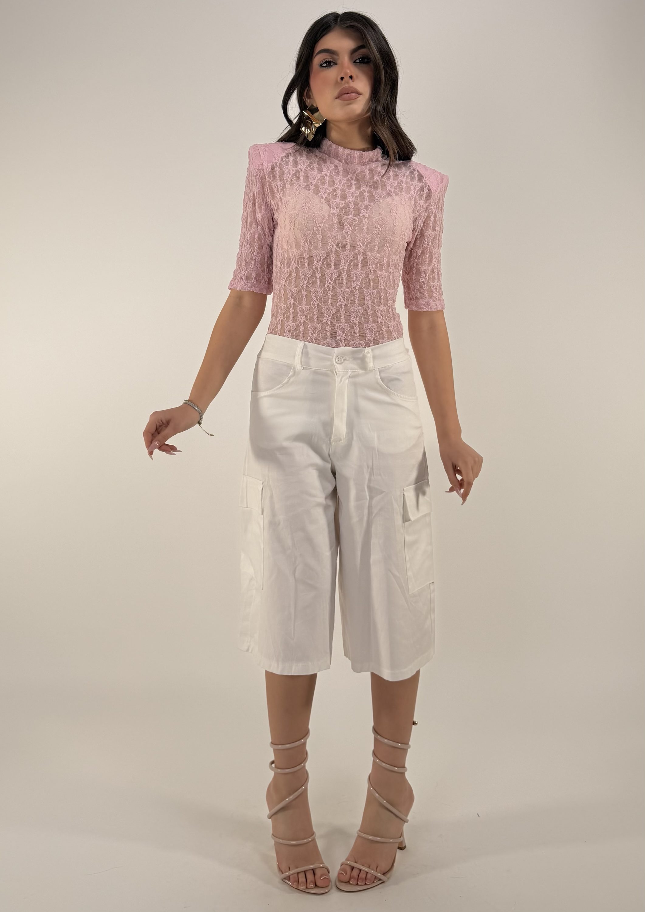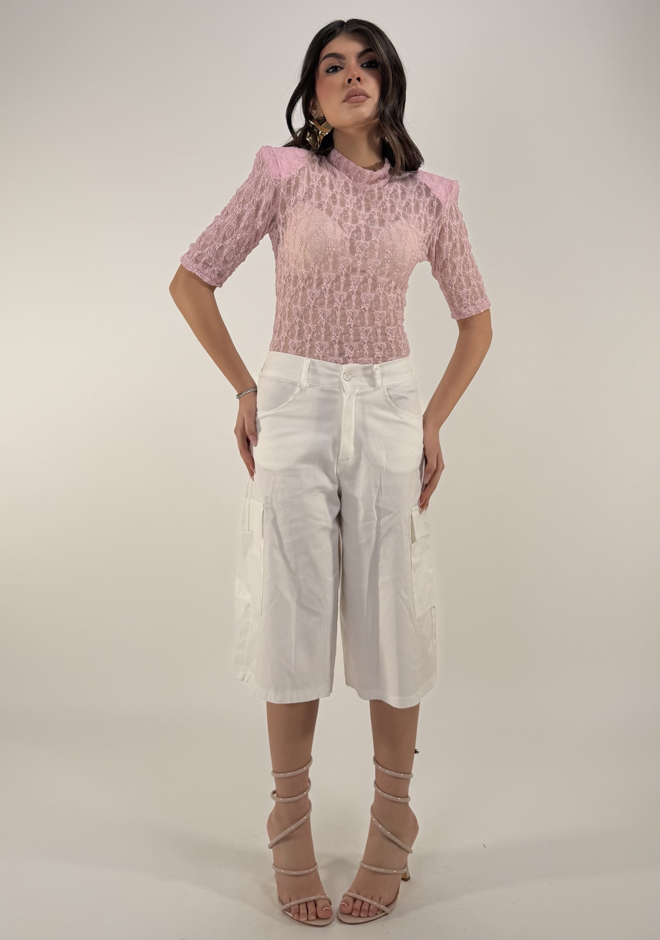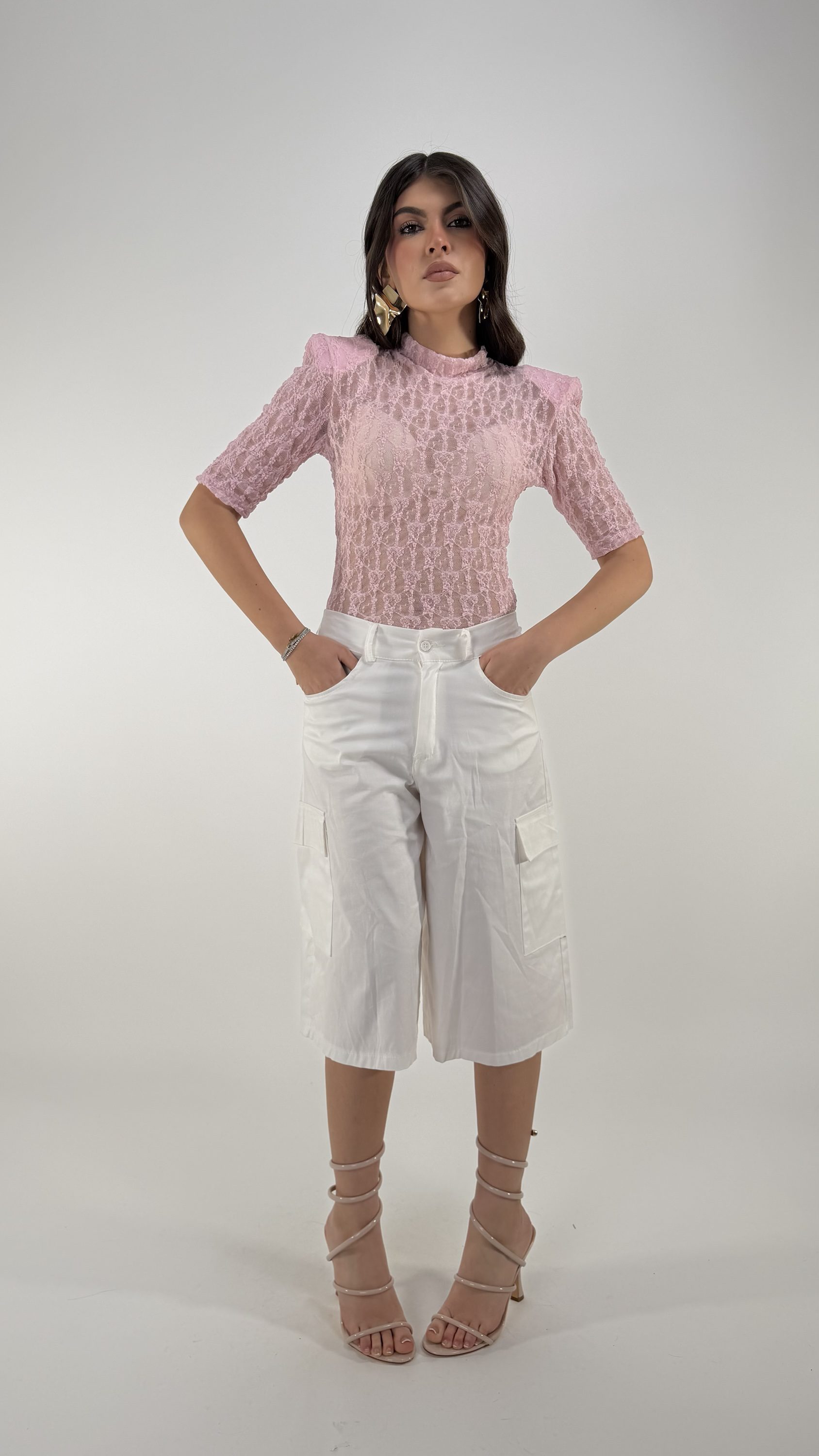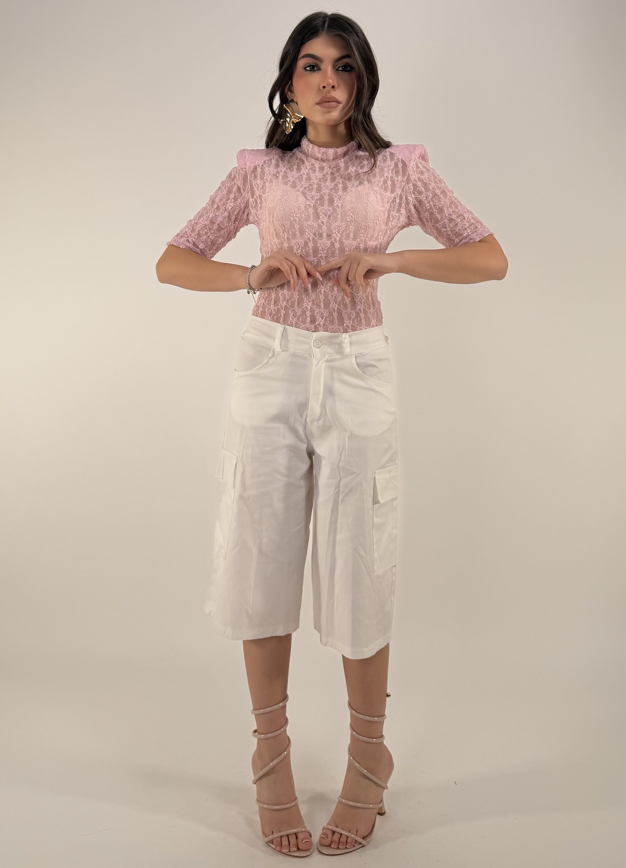 Consiglio da xs ad XL, con elastico sul retro, bottone, zip, passanti e tasche. La modella รจ alta 1.65cm ed รจ una taglia S