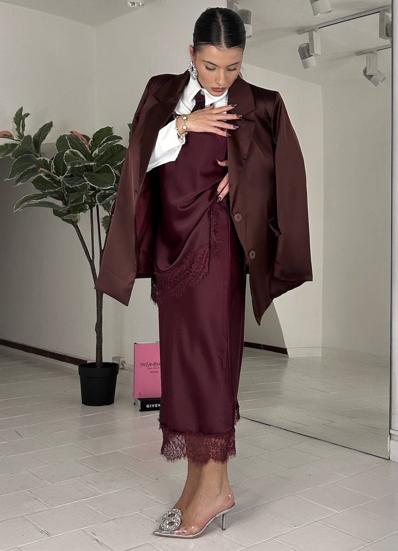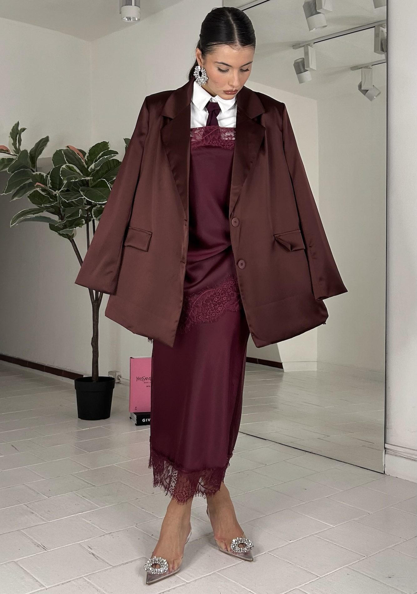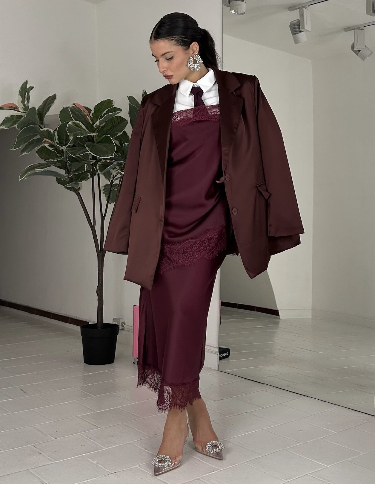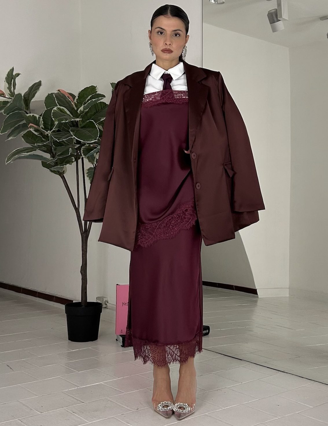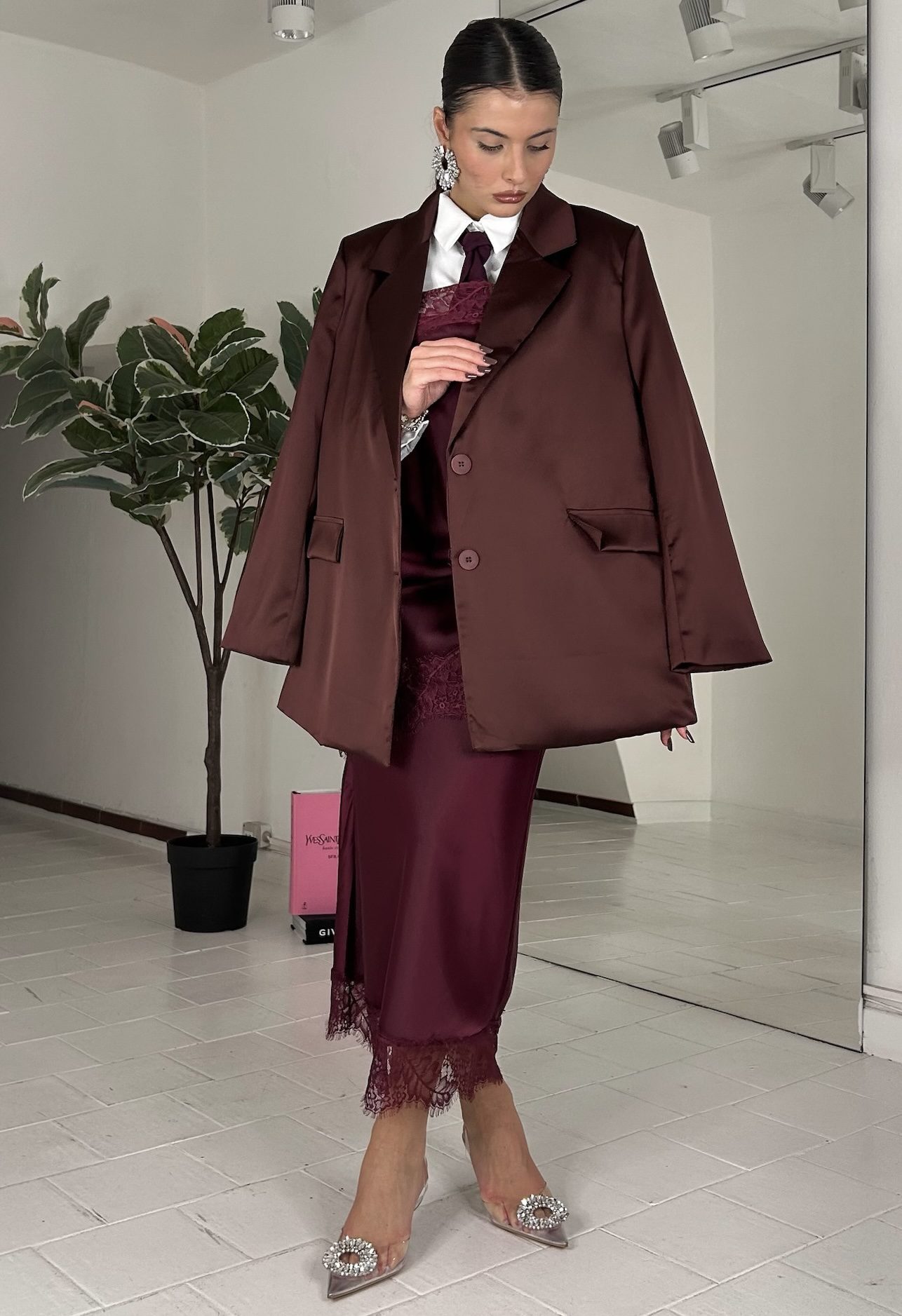 Consiglio da xs ad XL, in doppio satin, foderato, con bottoni. La modella รจ una taglia S ed รจ alta 1.60cm