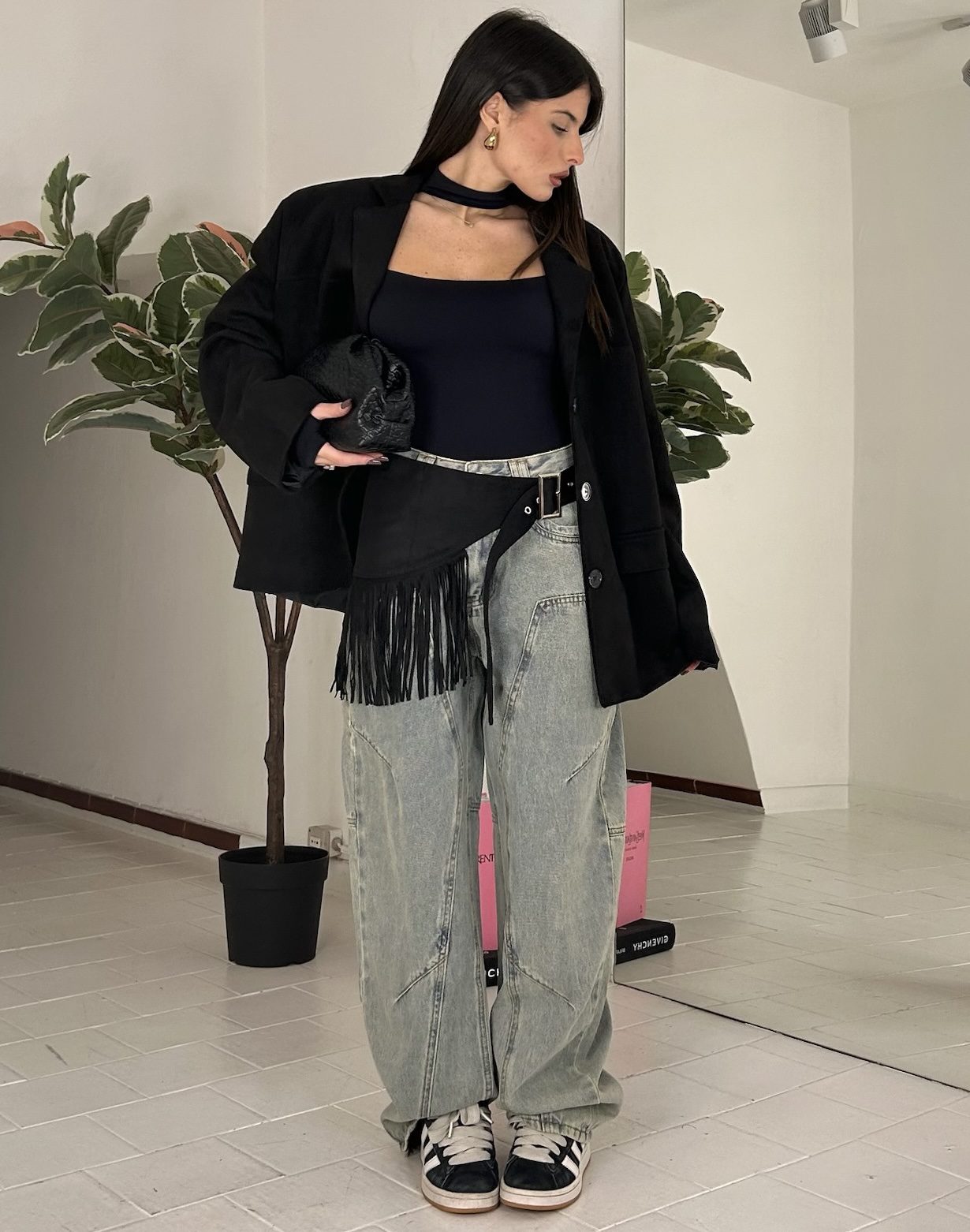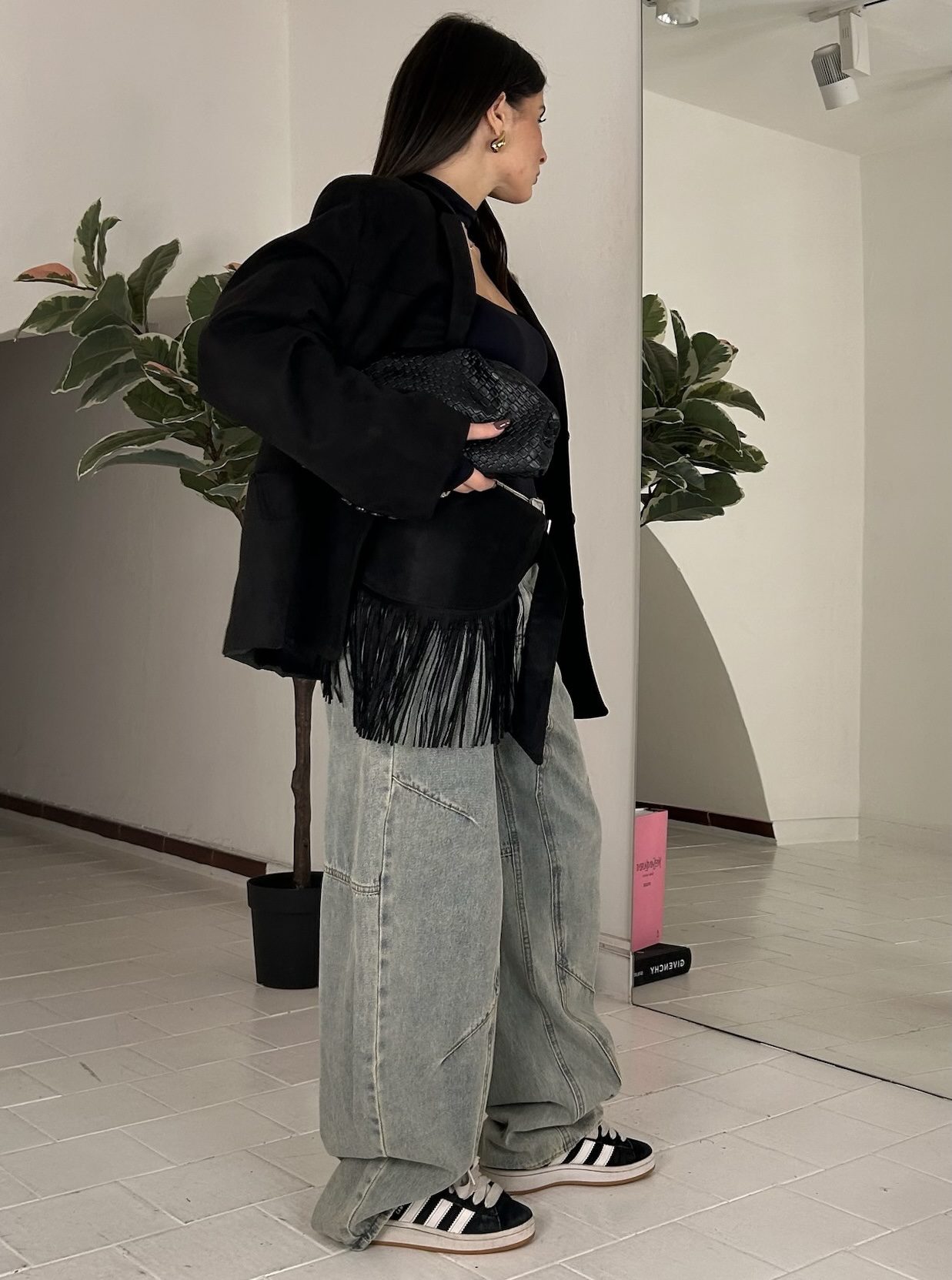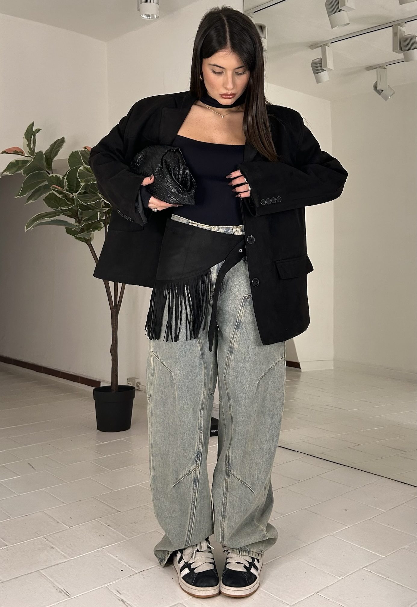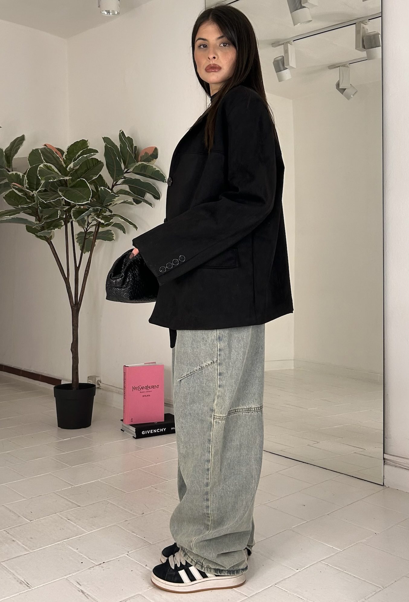 Coniglio da xs ad XL, oversize, in camoscio, foderato. La modella รจ una taglia S ed รจ alta 1.60cm