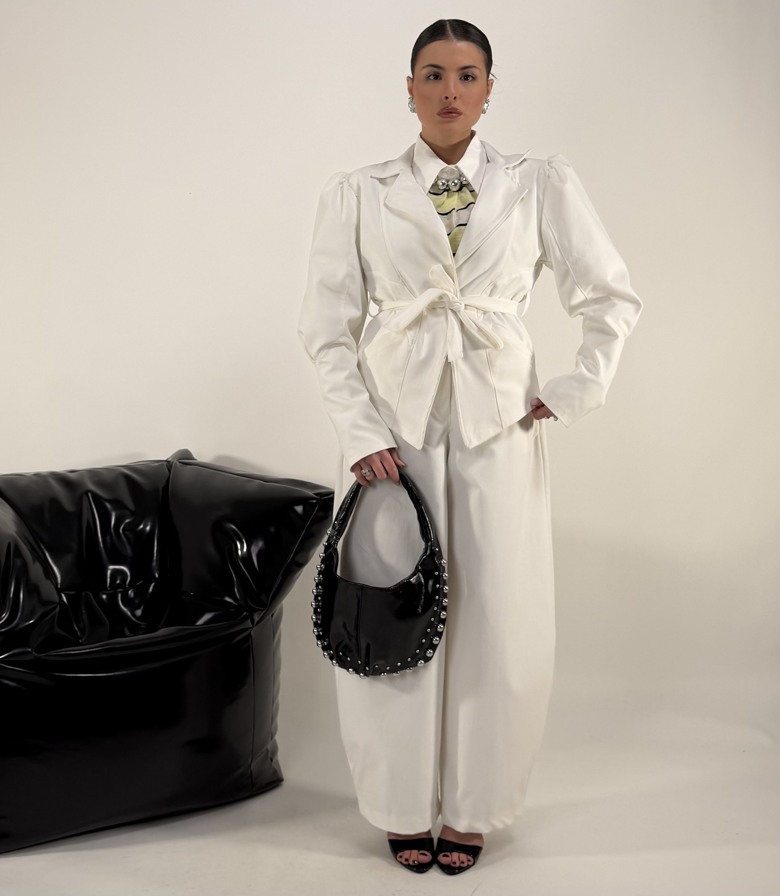 Consiglio da xs ad M, strutturato, con tasche La modella รจ una taglia S ed รจ alta 1.60cm