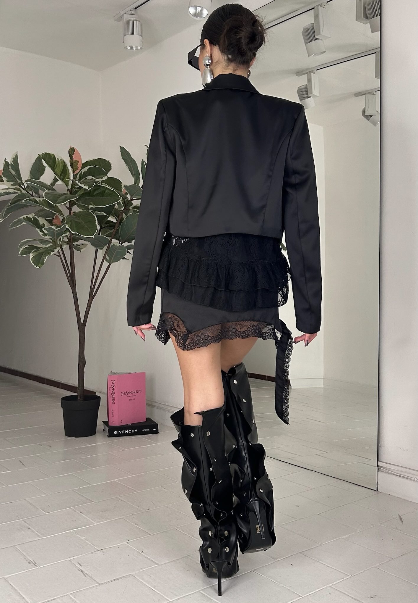 Consiglio da xs ad L, crop, in satin, con spalline, con bottoni. La modella รจ una taglia S
