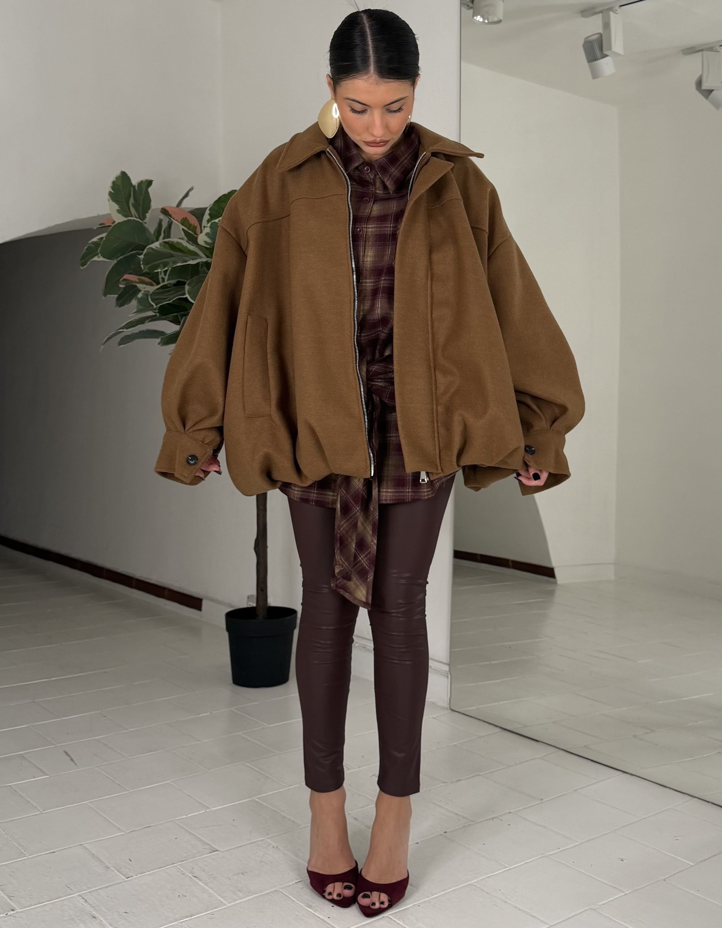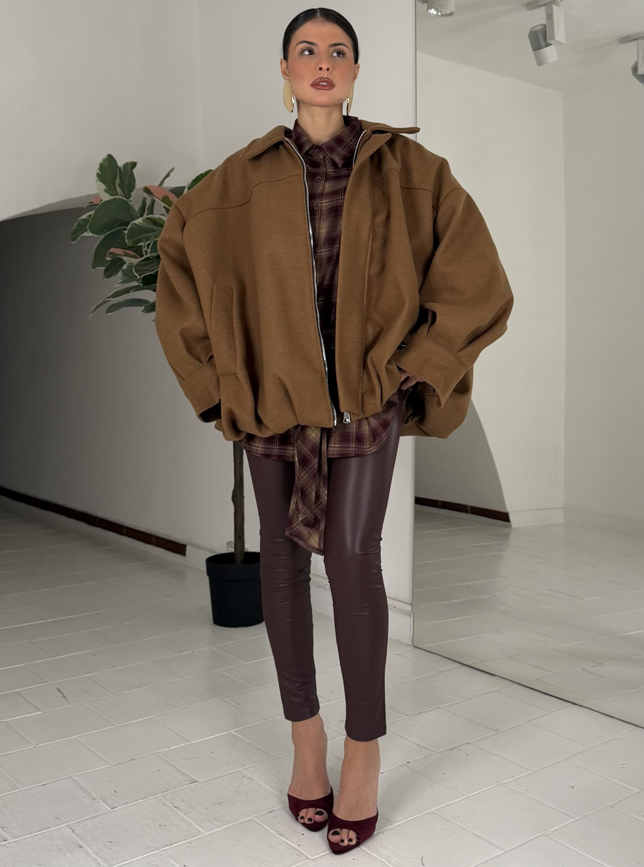 Veste ogni taglia, foderato, con zip, tasche, effetto bomber. La modella รจ una taglia S ed รจ alta 1.60cm