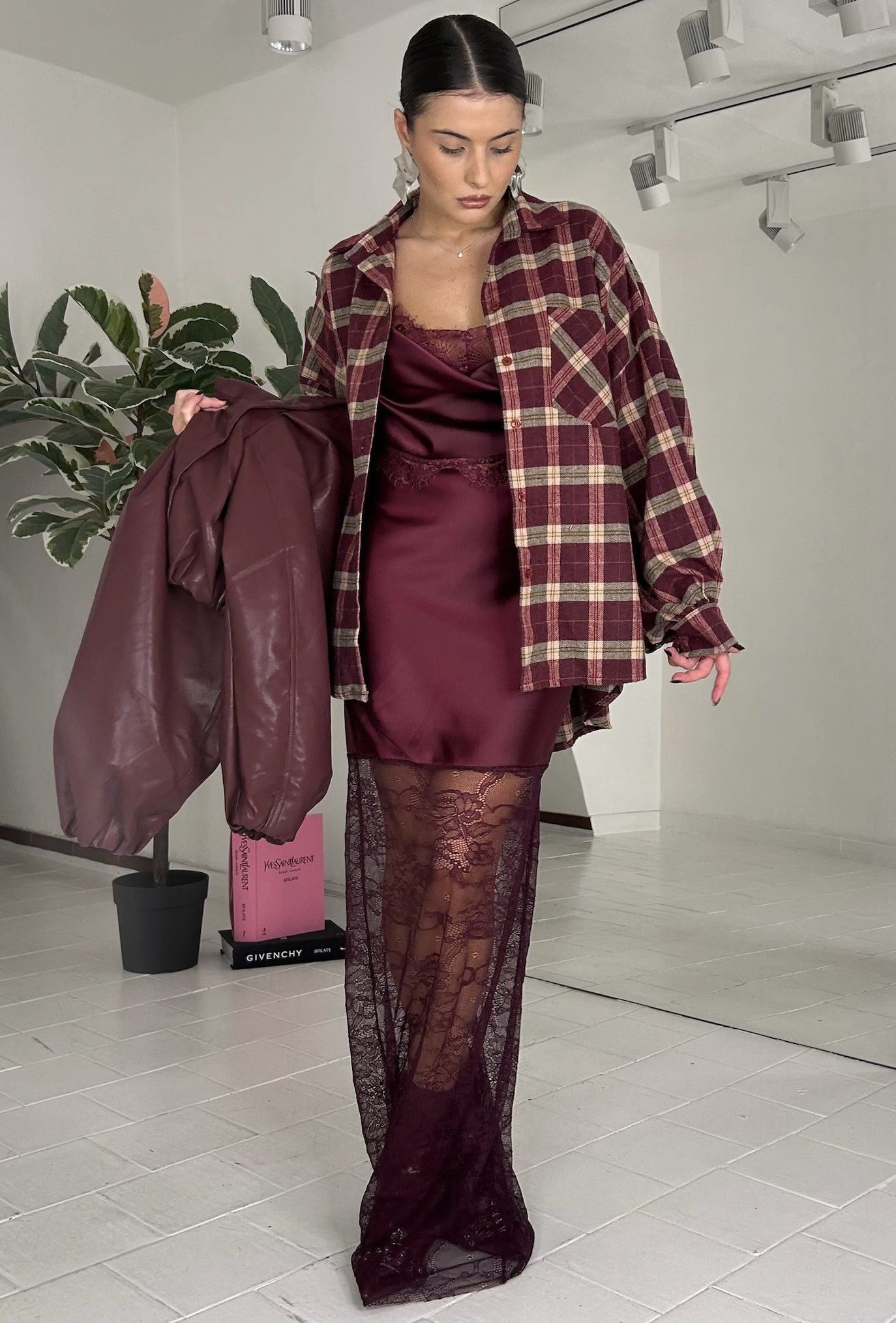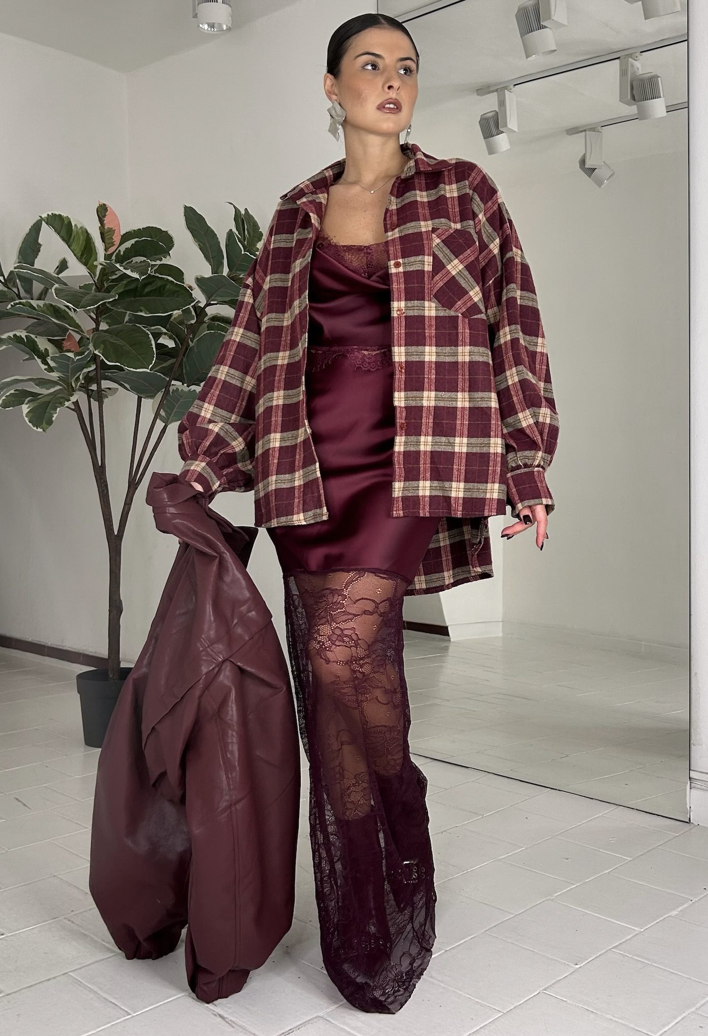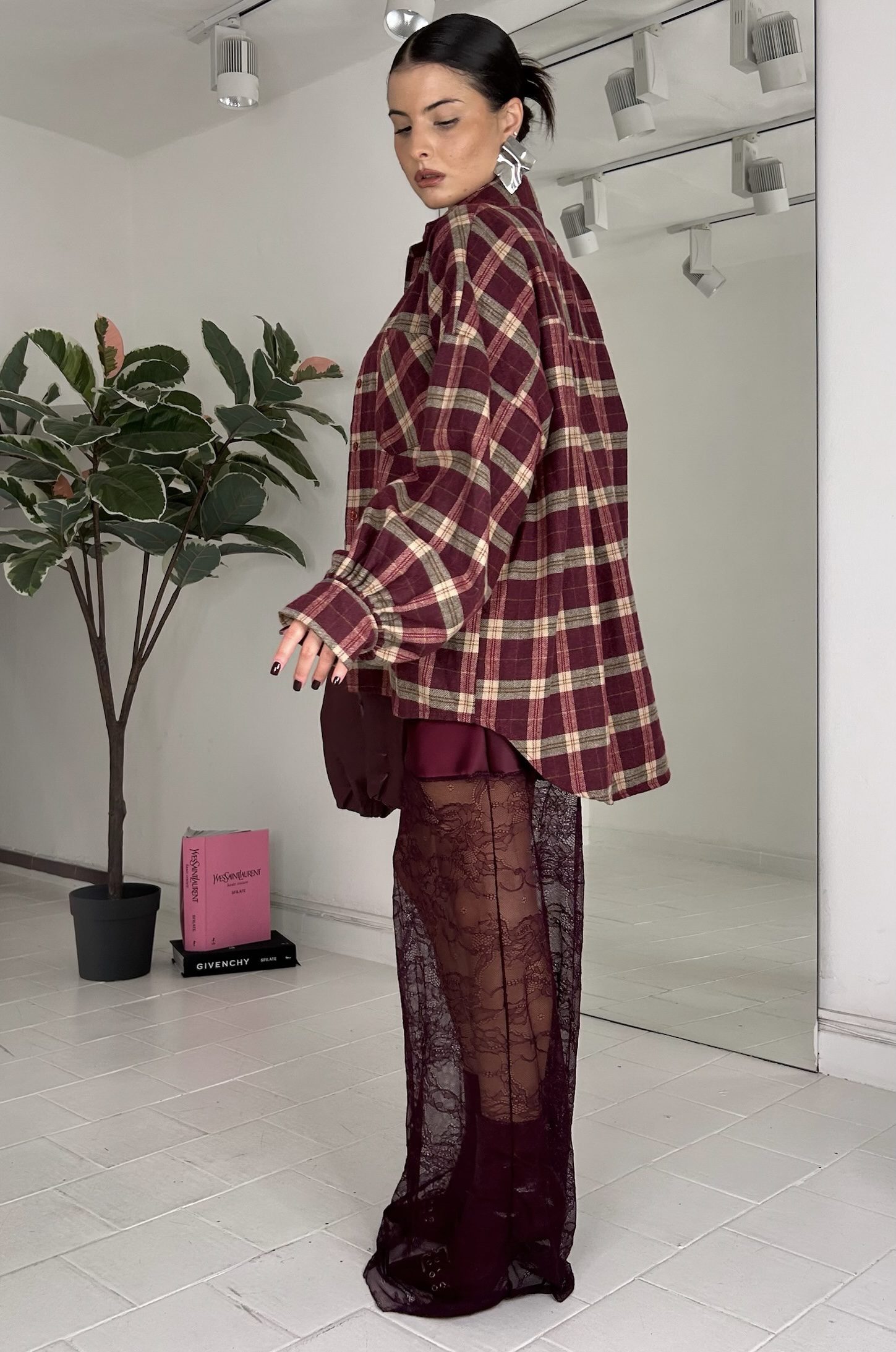 Consiglio da xs ad XL, oversize, manica a palloncino, in flanella. La modella รจ una taglia S