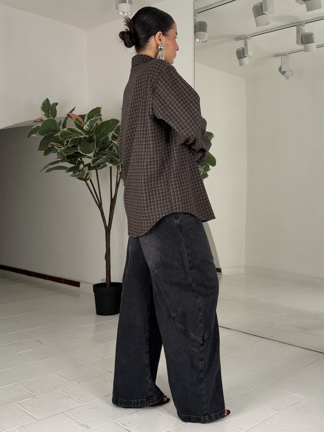 Consiglio da xs ad XL, in flanella, oversize, con bottoni. La modella รจ una taglia S ed รจ alta 1.60cm