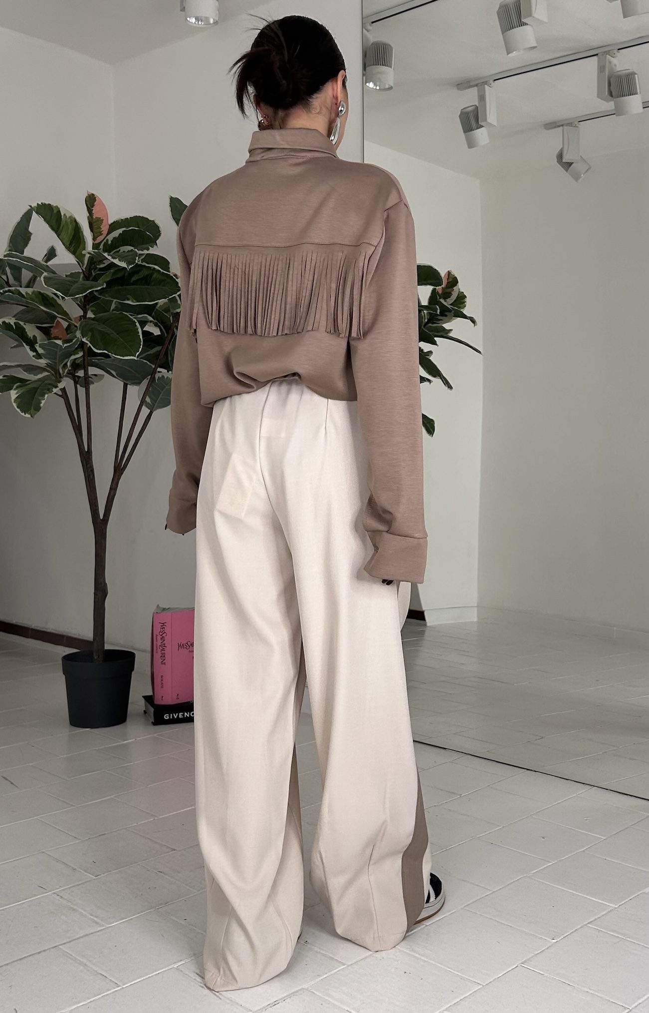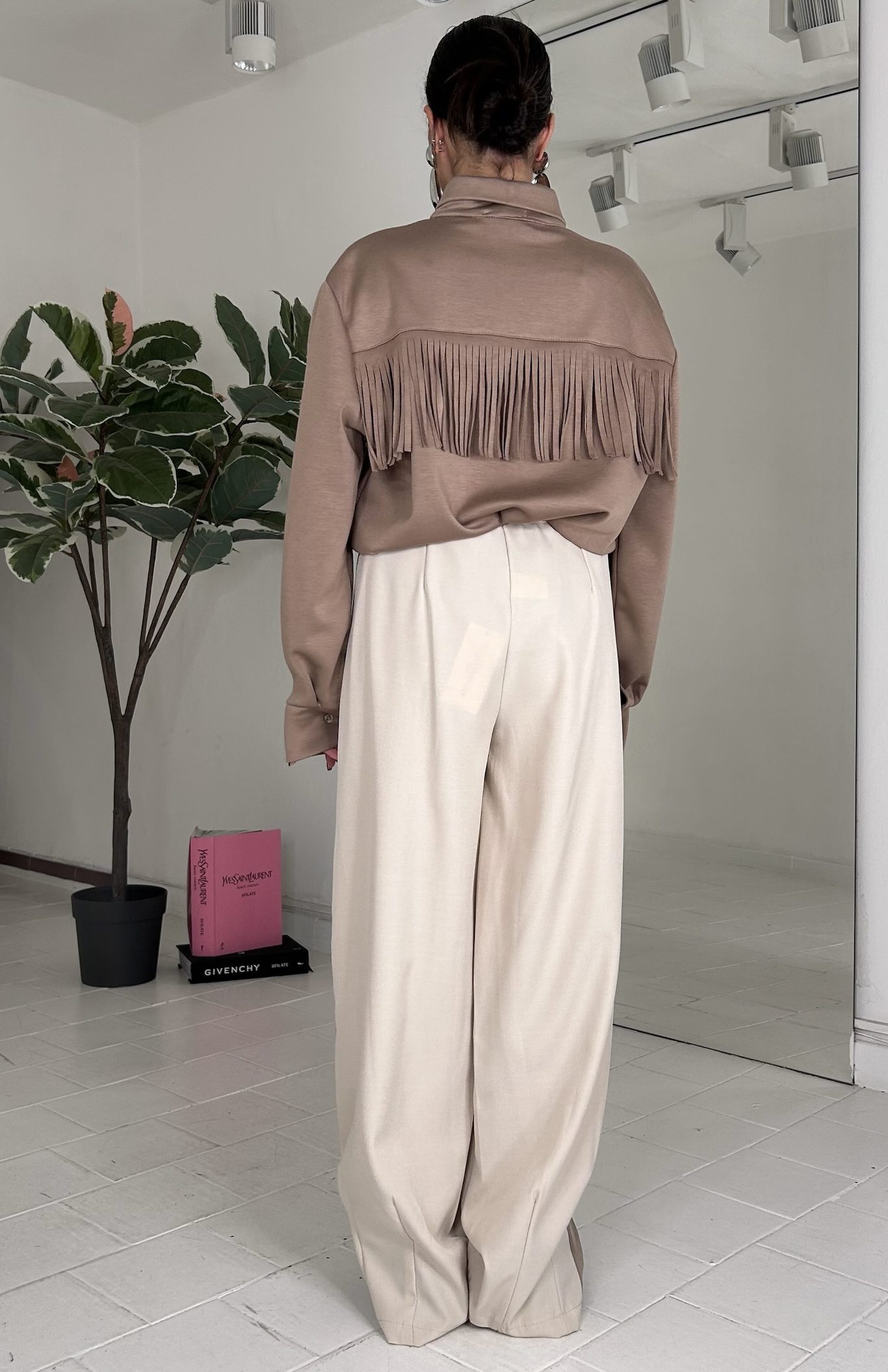 Consiglio da xs ad L, oversize, in camoscio, con bottoni. La modella รฉ una taglia S ed รจ alta 1,60cm