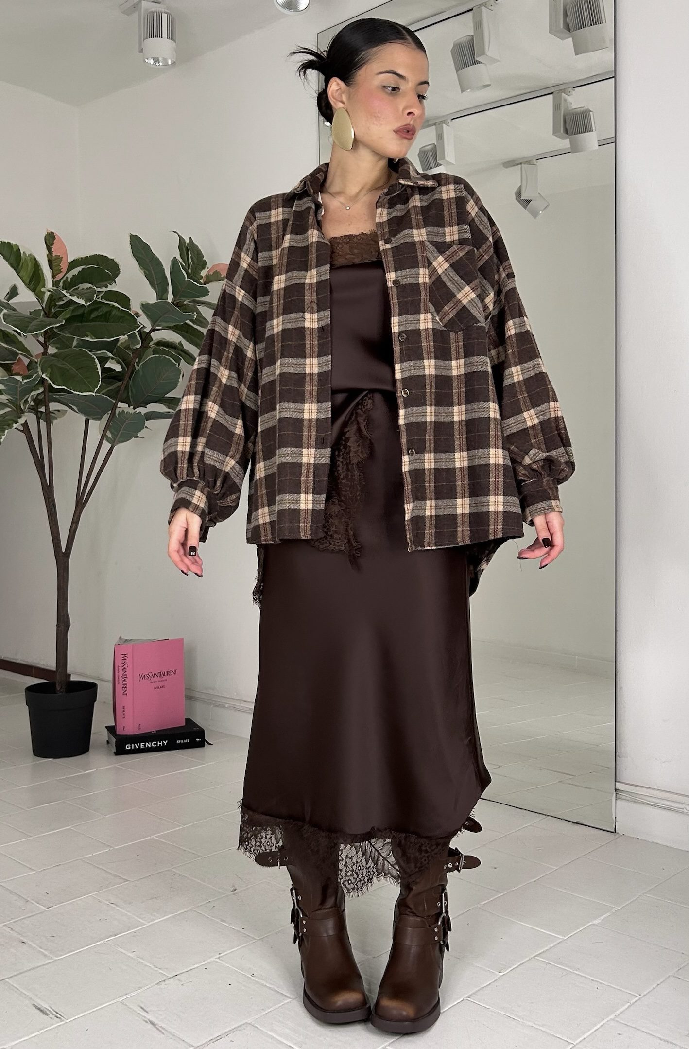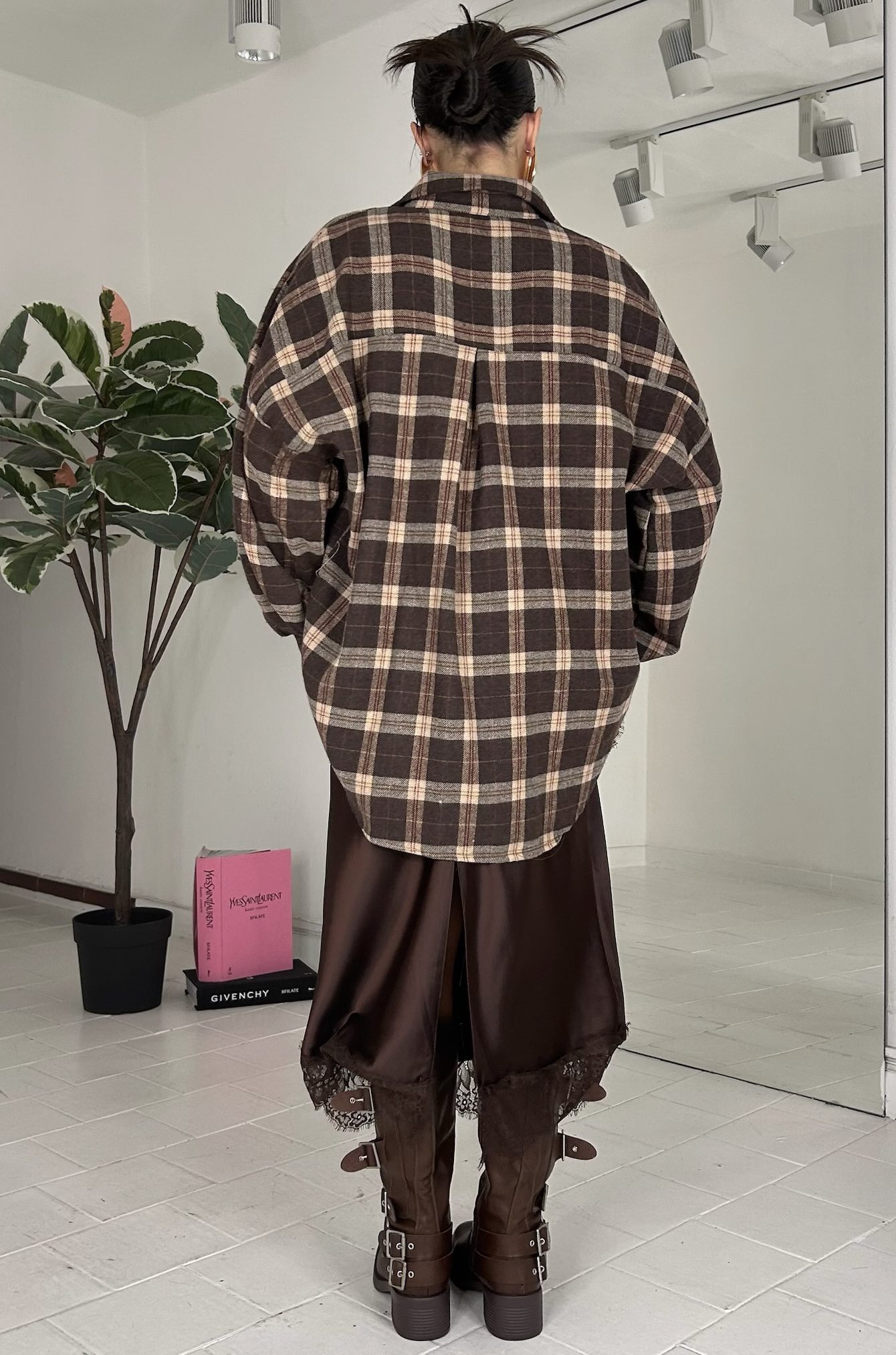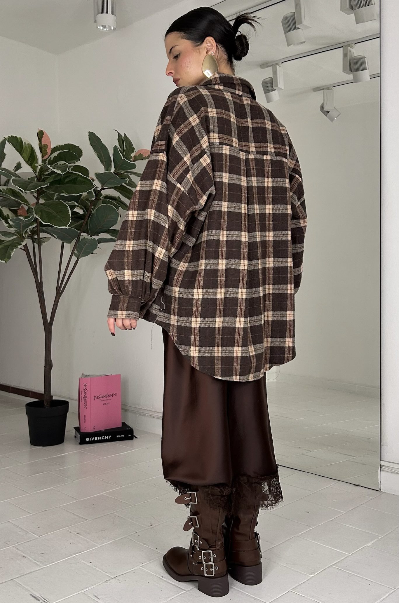 Consiglio da xs ad L, in flanella, con bottoni . La modella รจ una taglia S