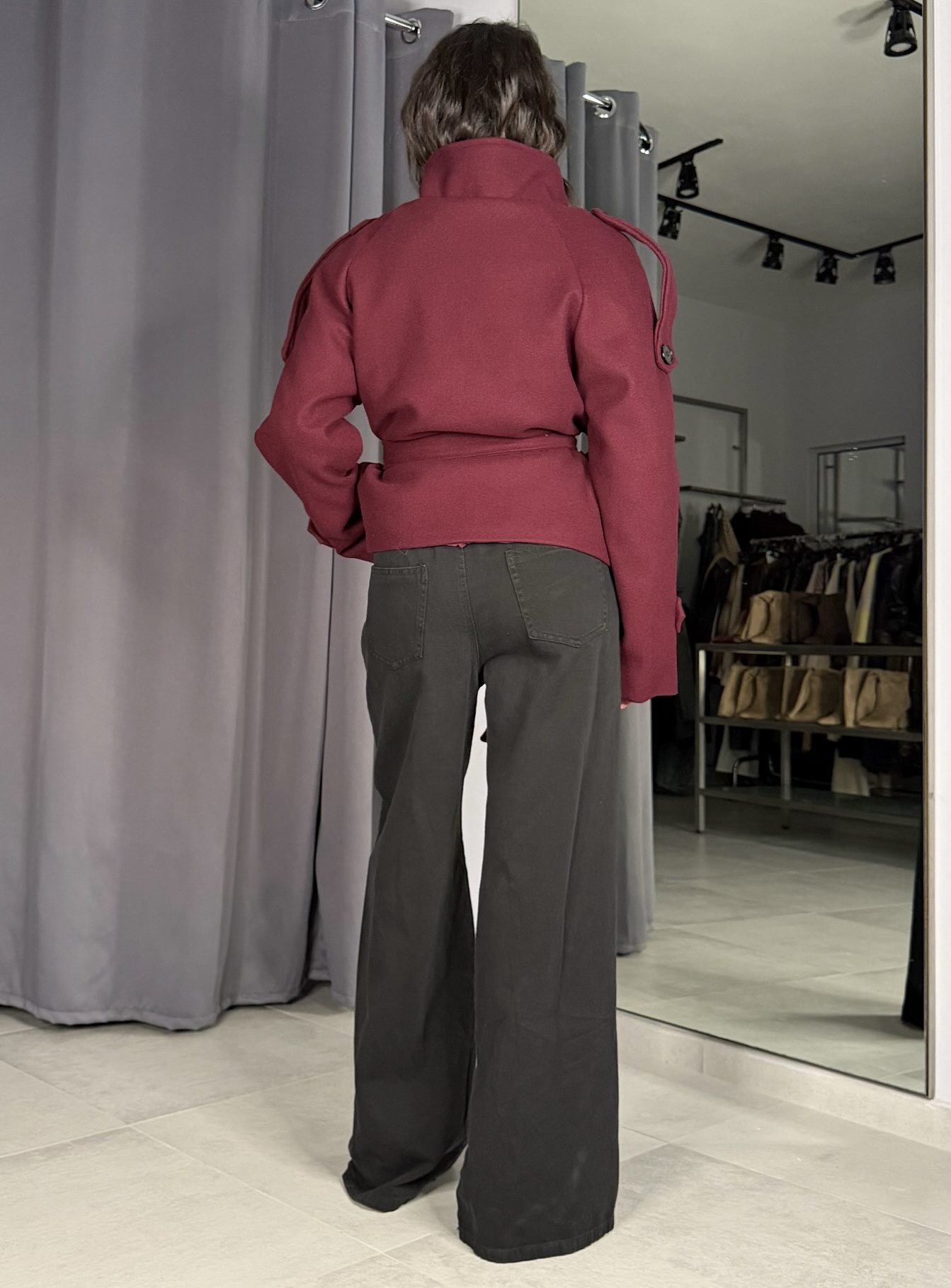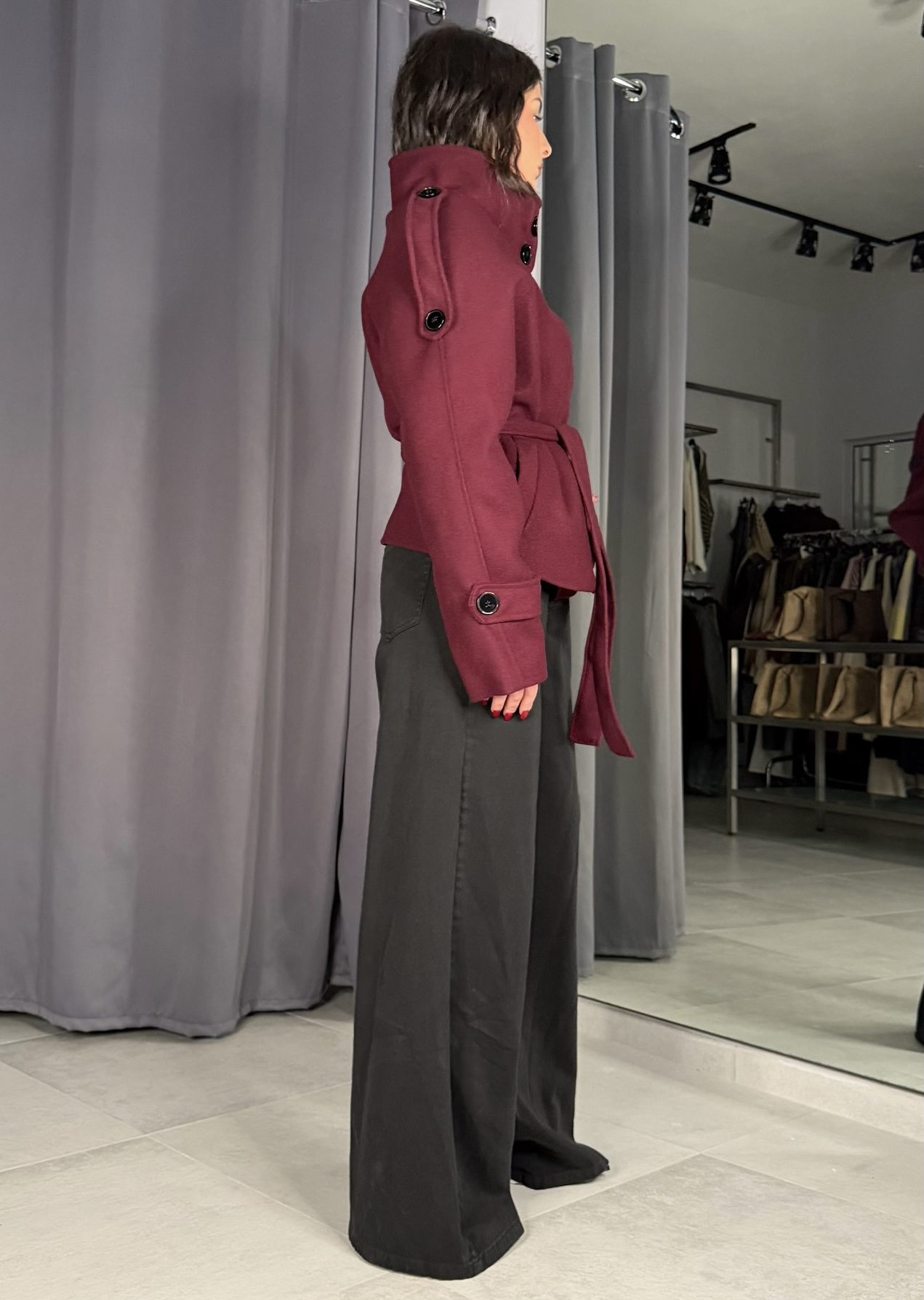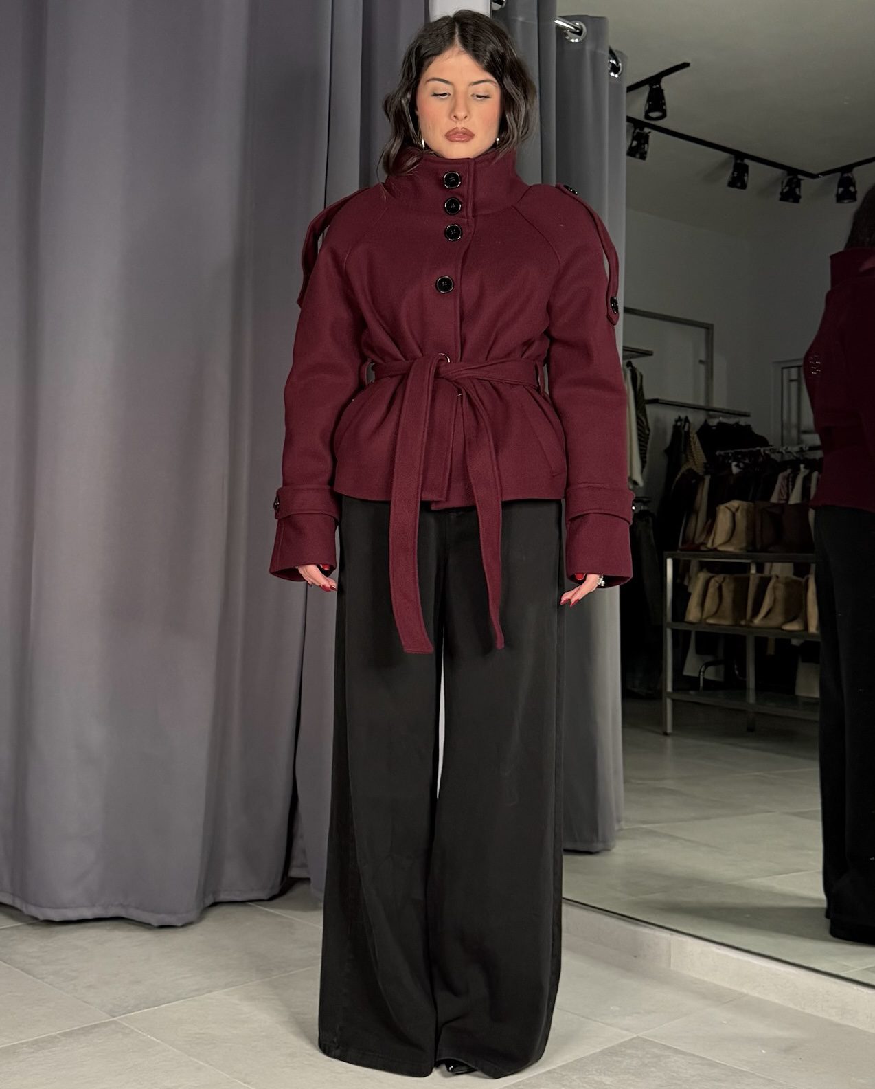 Consiglio da xs ad L, foderato, con bottoni e cintura. La modella รจ una taglia S ed รจ alta 1.60cm