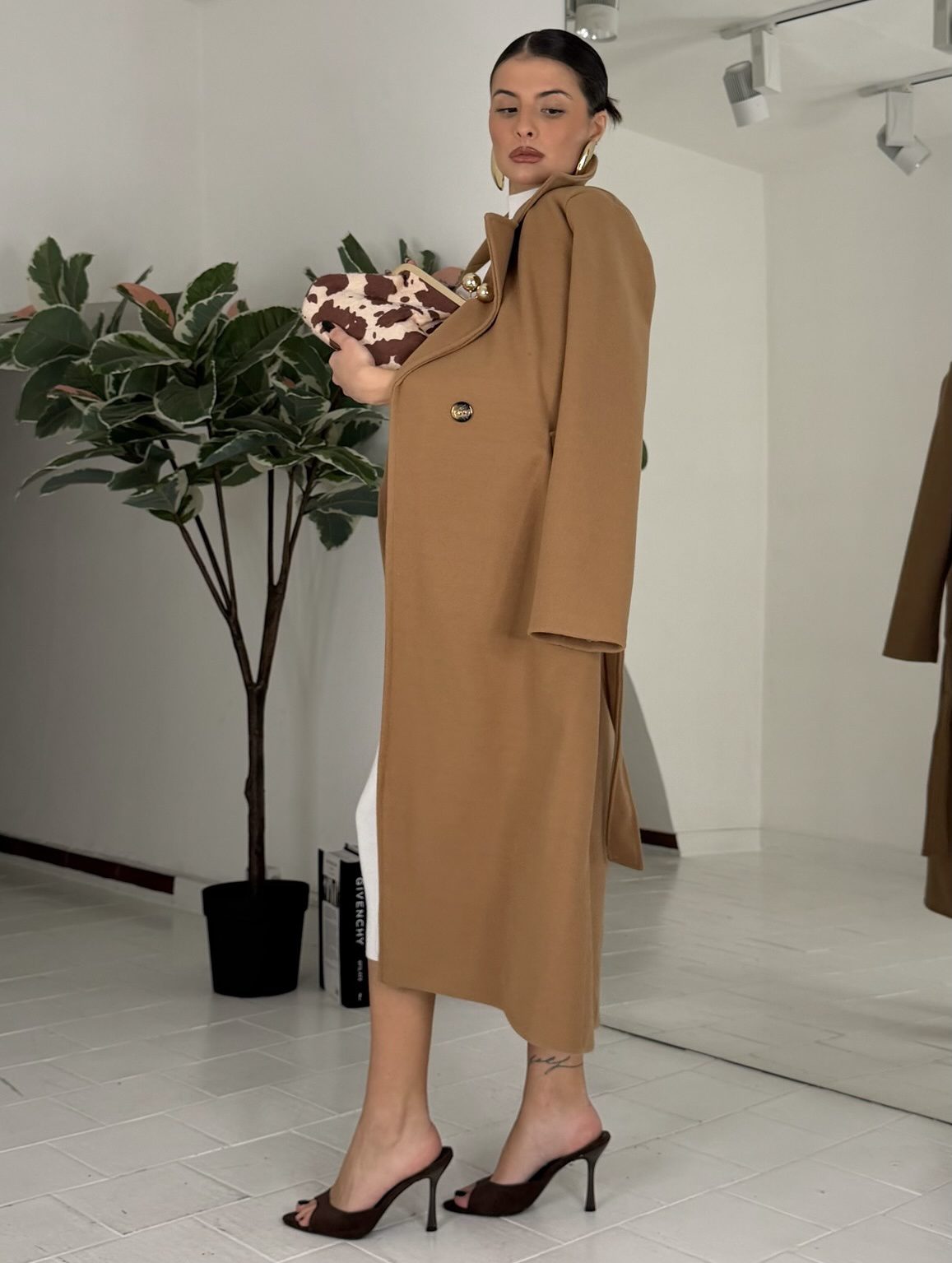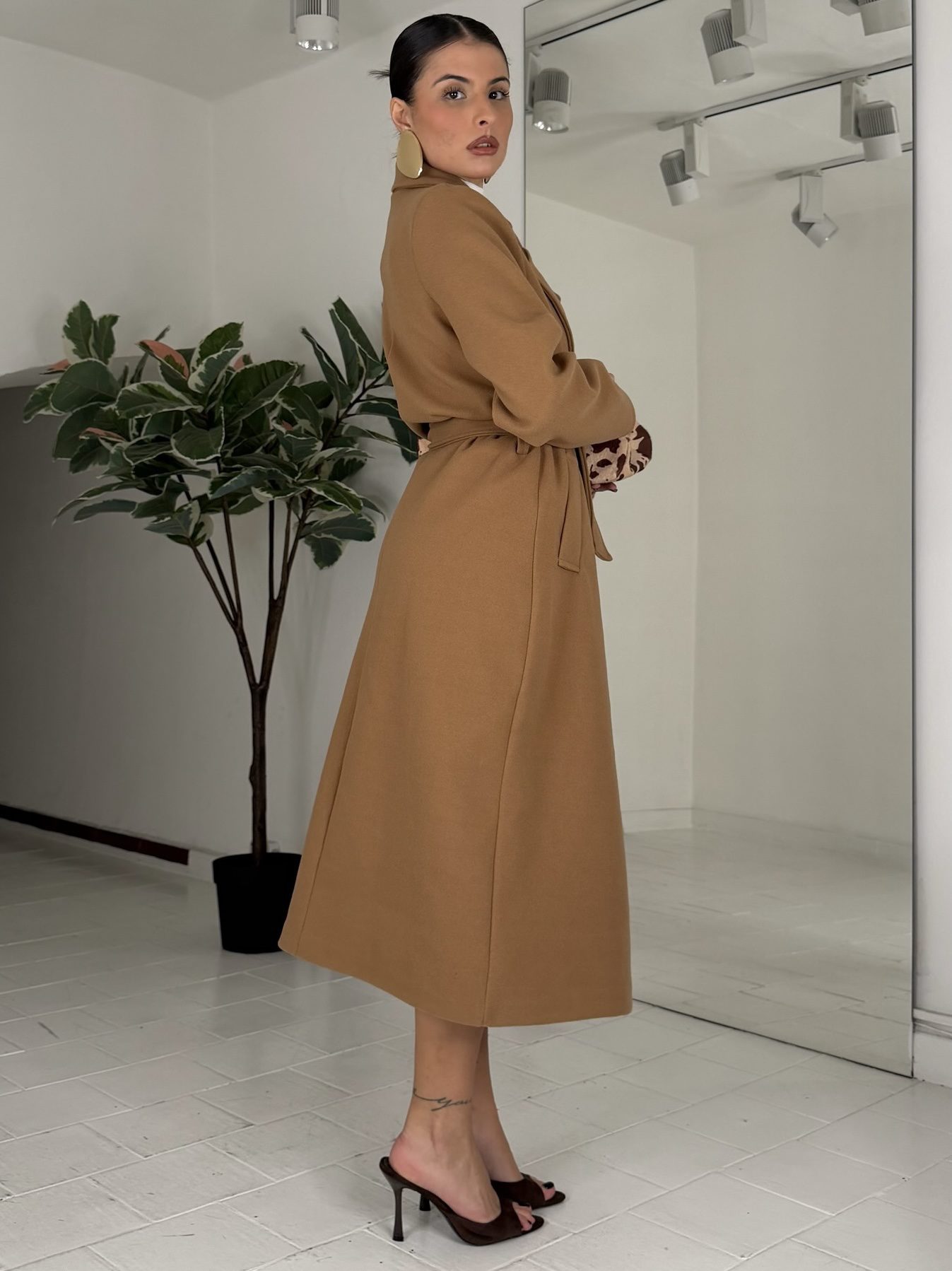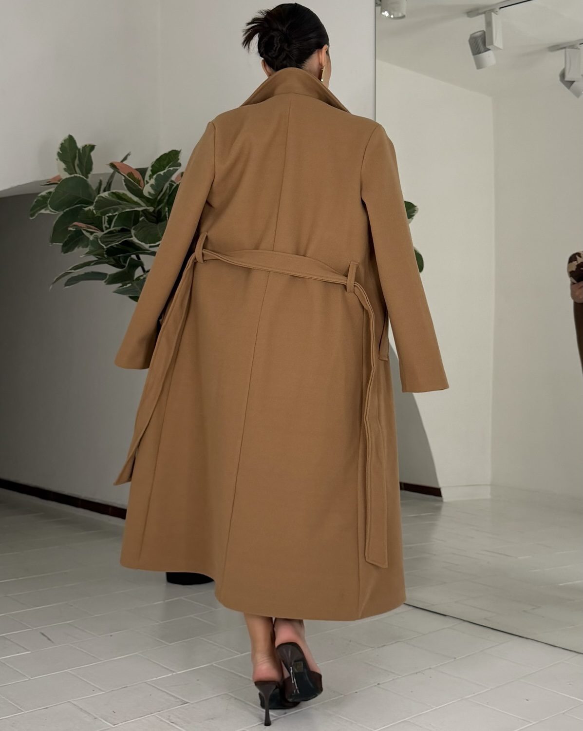 Consiglio da xs ad L, foderato, con bottoni e cintura. La modella รจ una taglia S ed รจ alta 1.60cm
