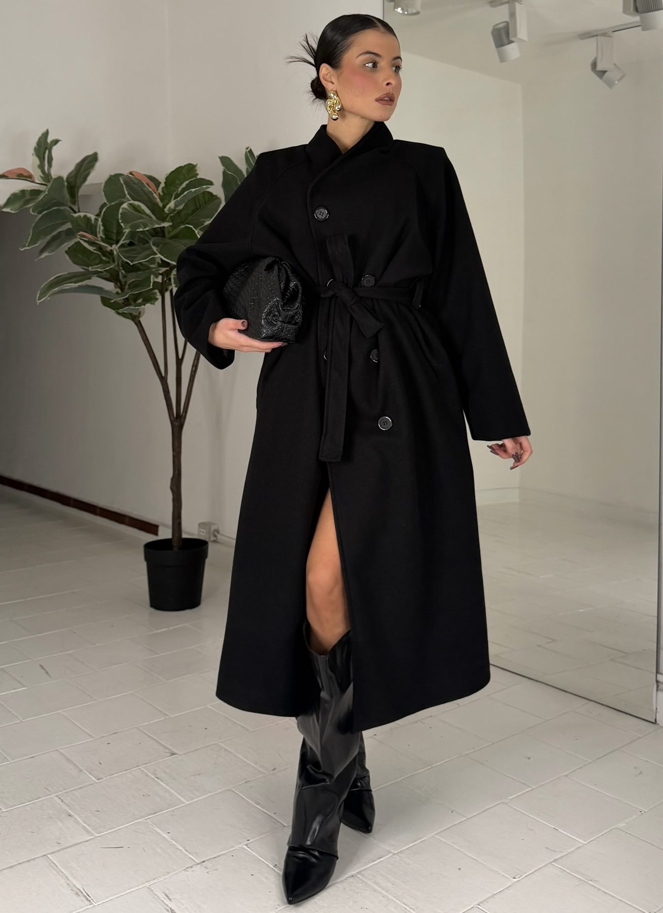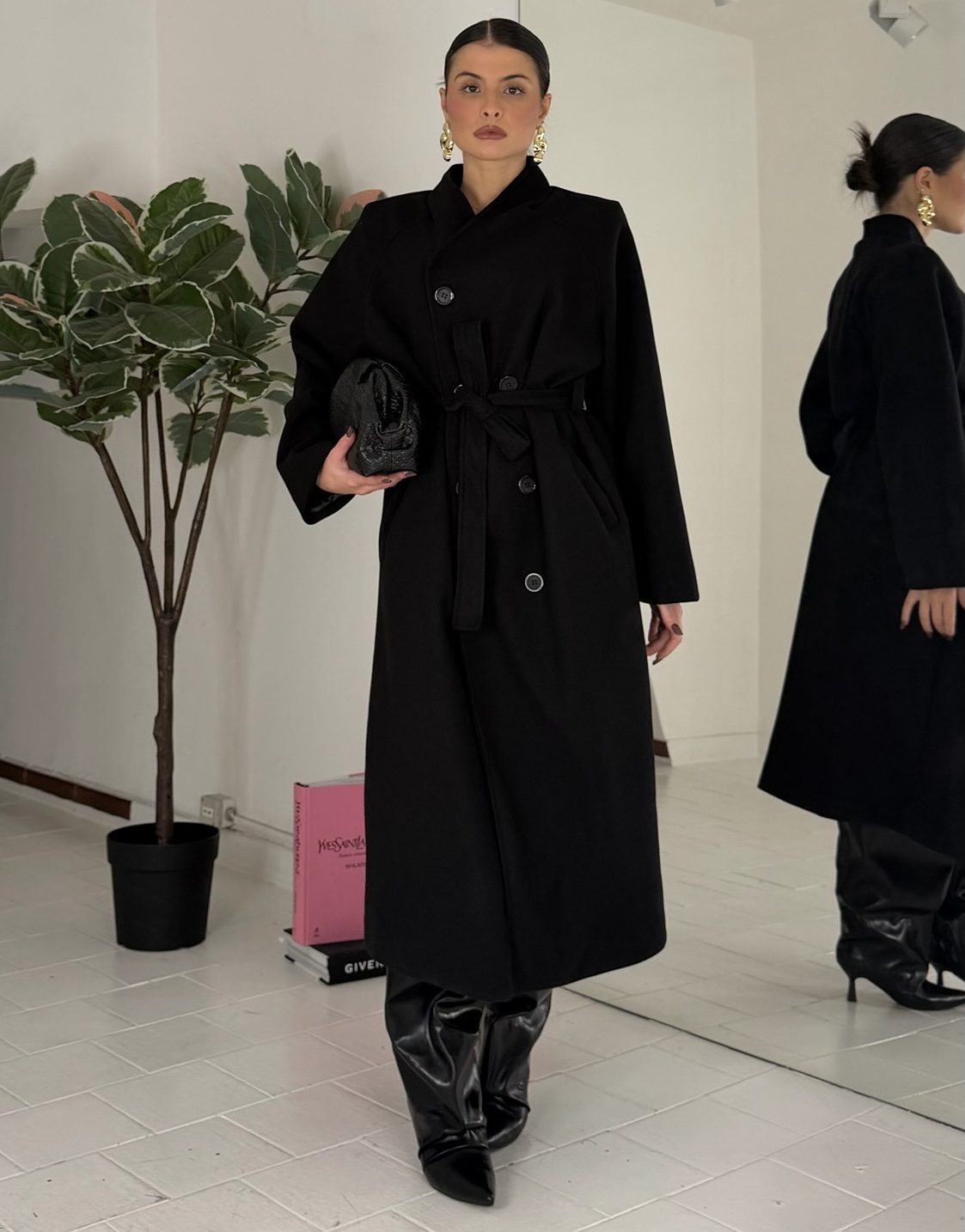 Consiglio da xs ad L, con tasche, oversize, con bottoni, foderato, con cintura. La modella รจ una taglia S ed รจ alta 1.60cm