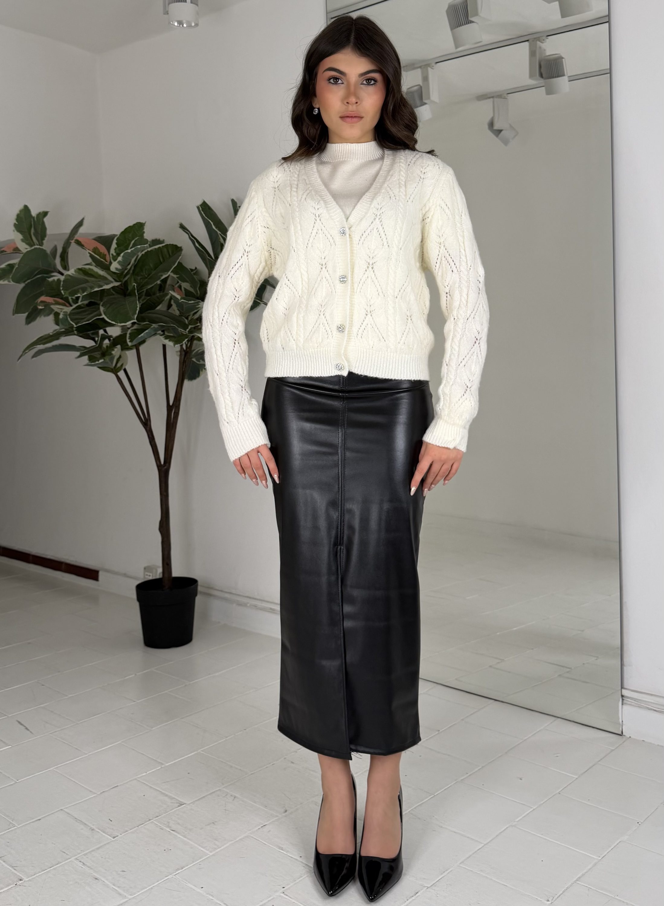 Consiglio da xs ad L, elasticizzato. La modella รจ una taglia S ed รจ alta 1.65cm