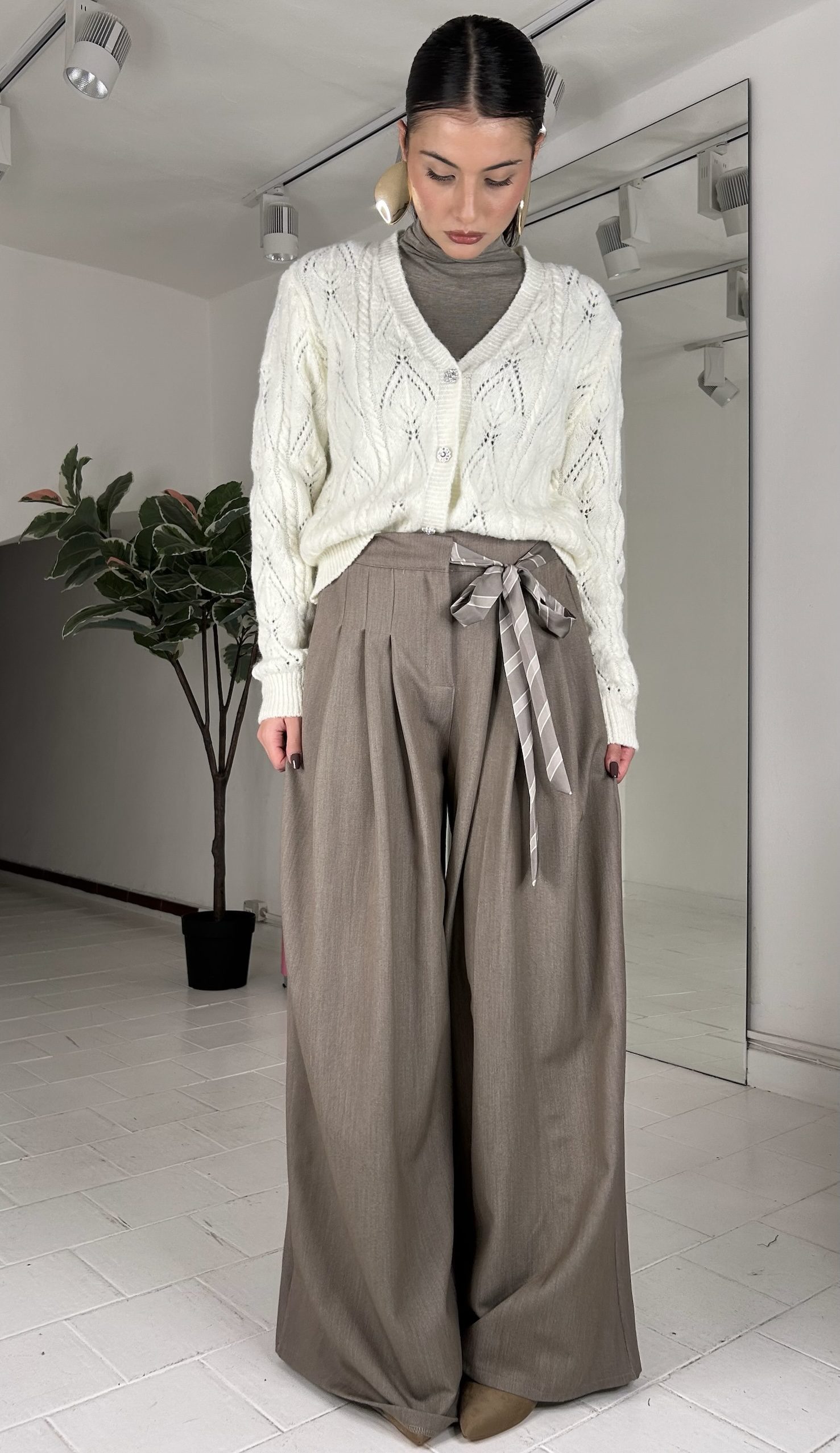 Consiglio da xs ad L, bottone gioiello, in lana. La modella รจ una taglia S
