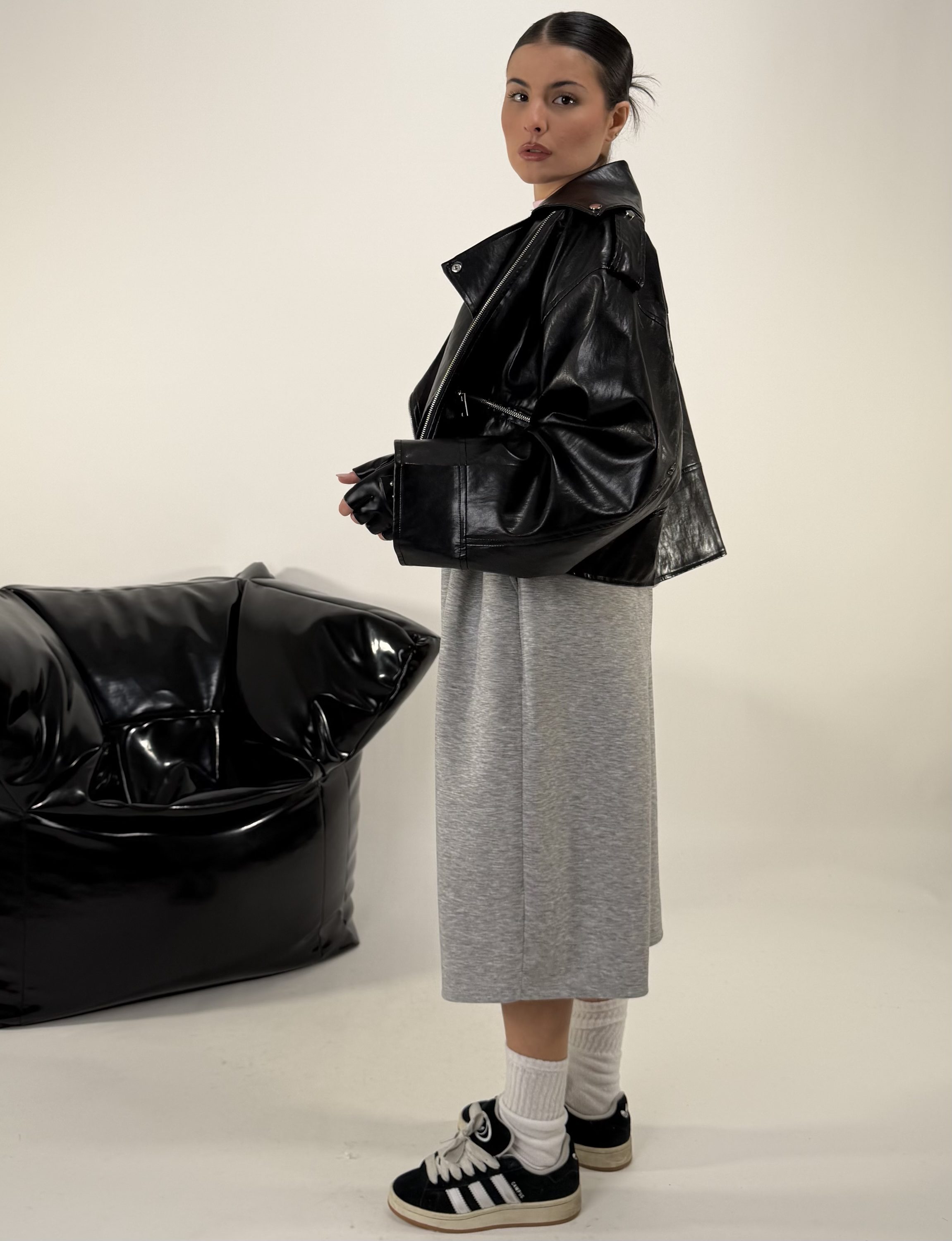 Consiglio da xs ad XL. Oversize, foderato, lucido, con tasche La modella รจ una taglia S ed รจ alta 1.60cm