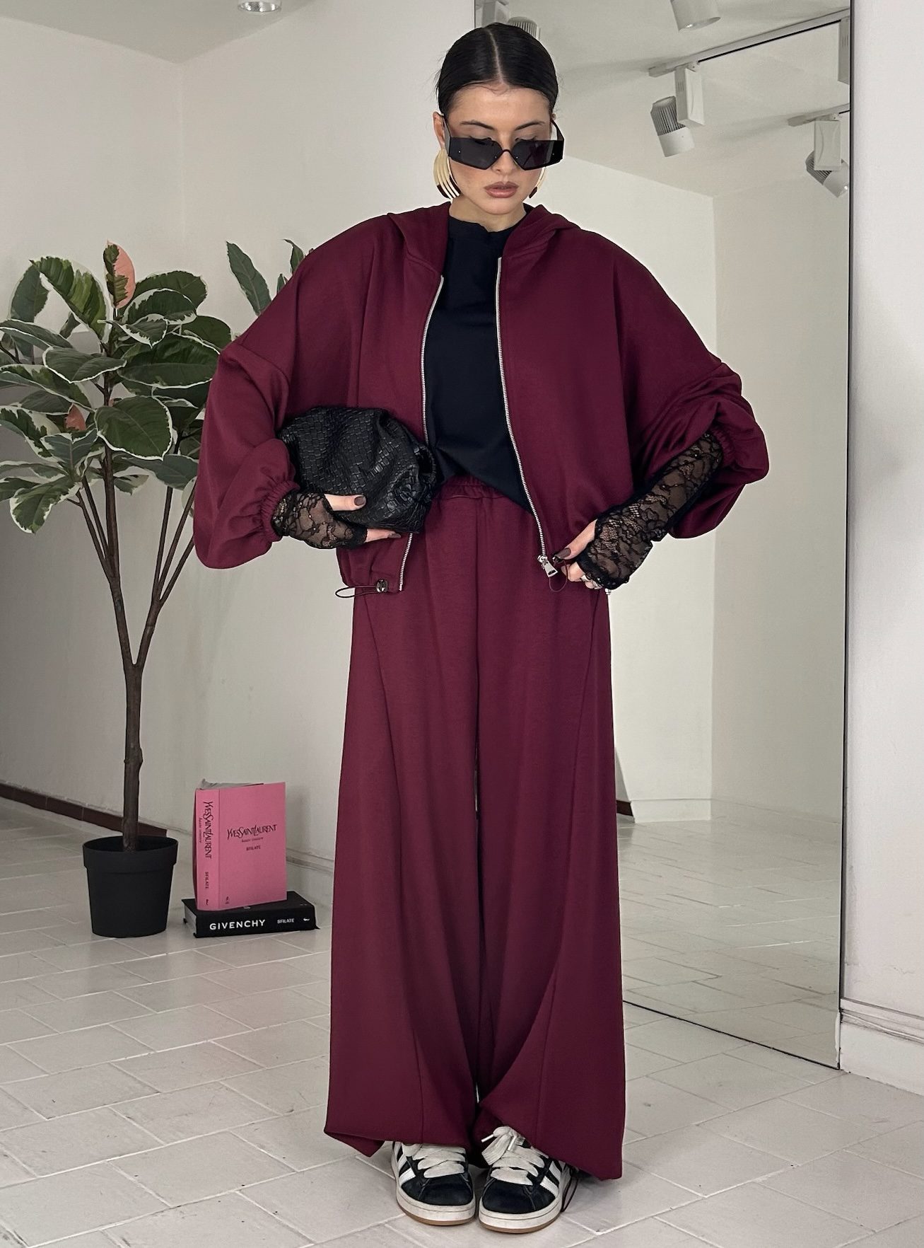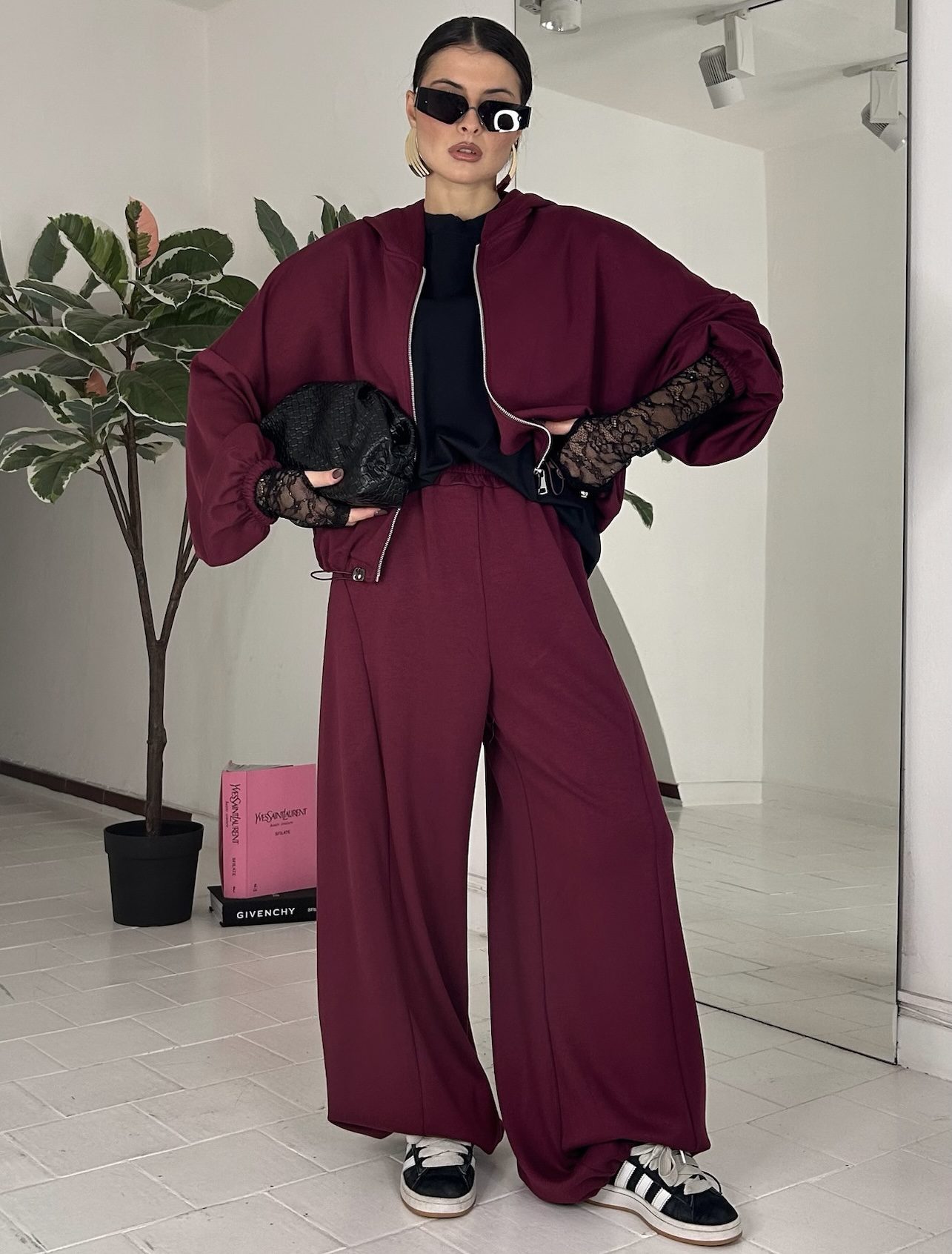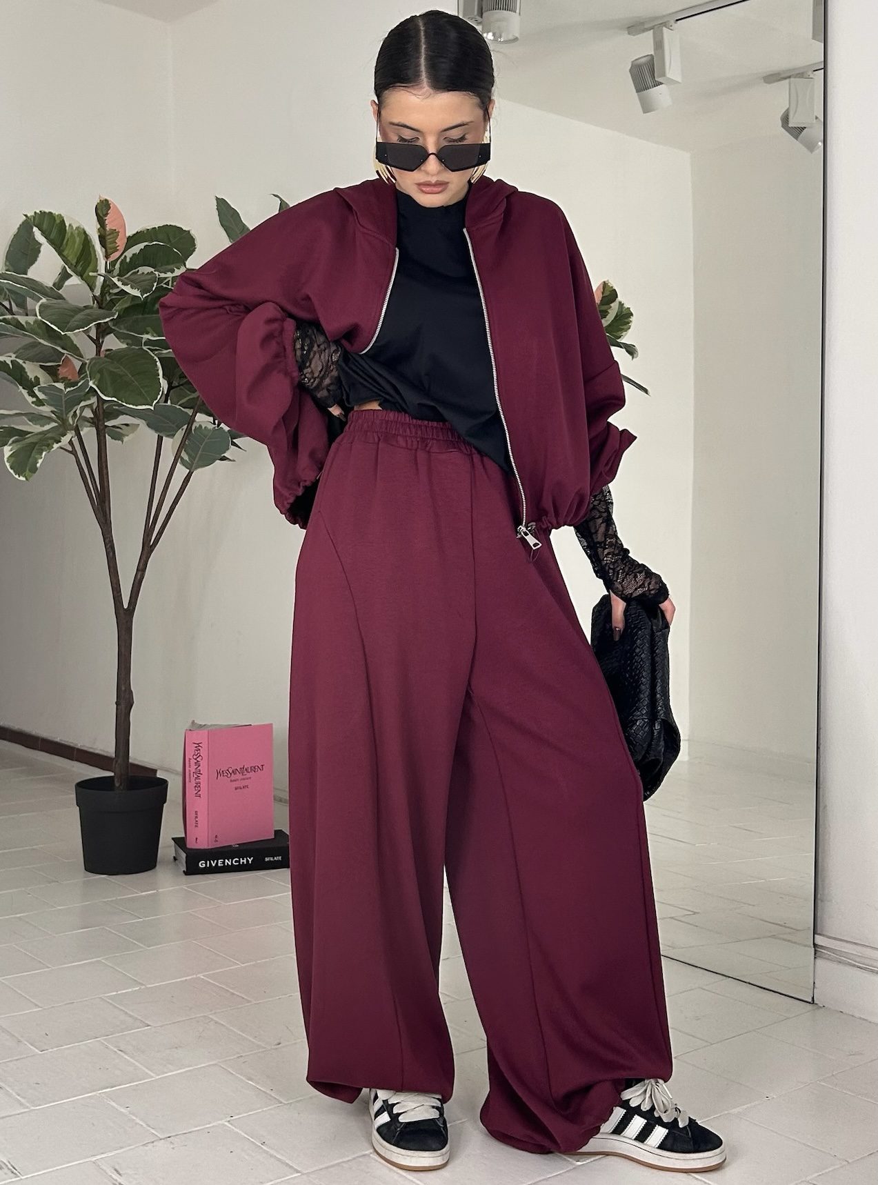 JustWest , consiglio da xs ad XL, elastico alla base del pantalone e della felpa, con polsino, oversize. La modella รจ alta 1.60cm ed รจ una taglia S