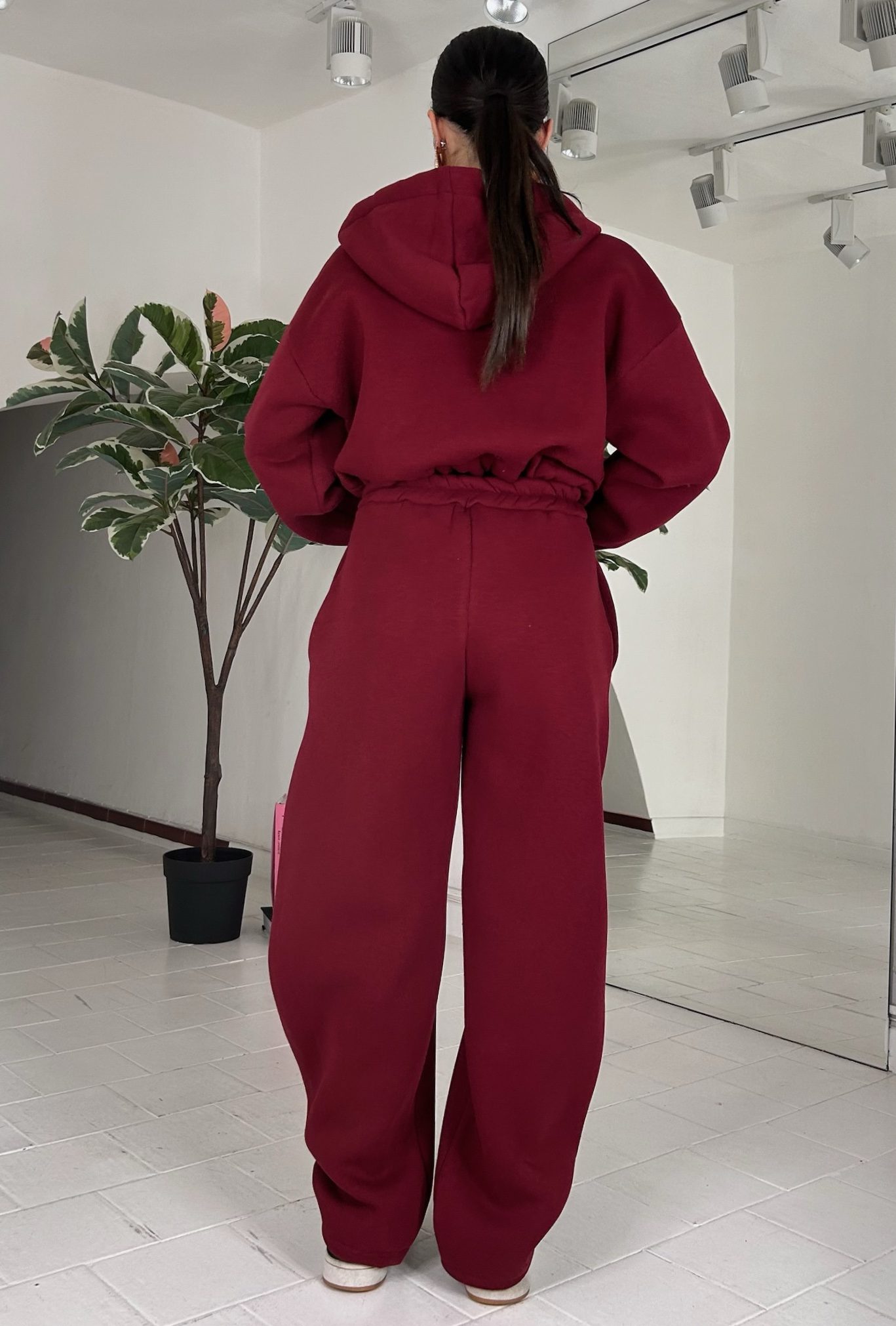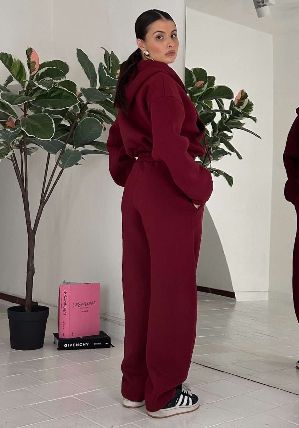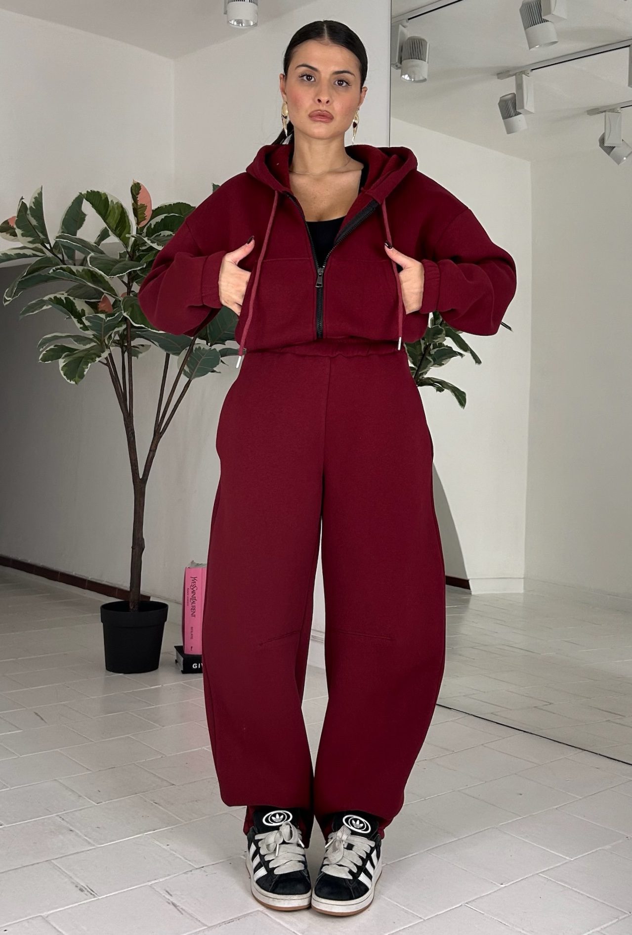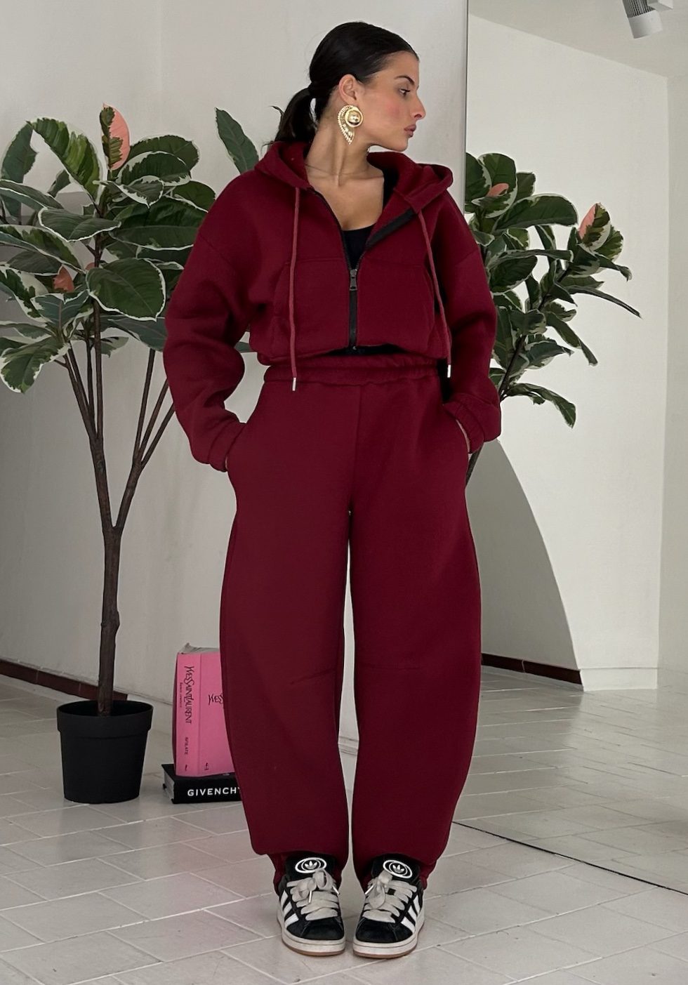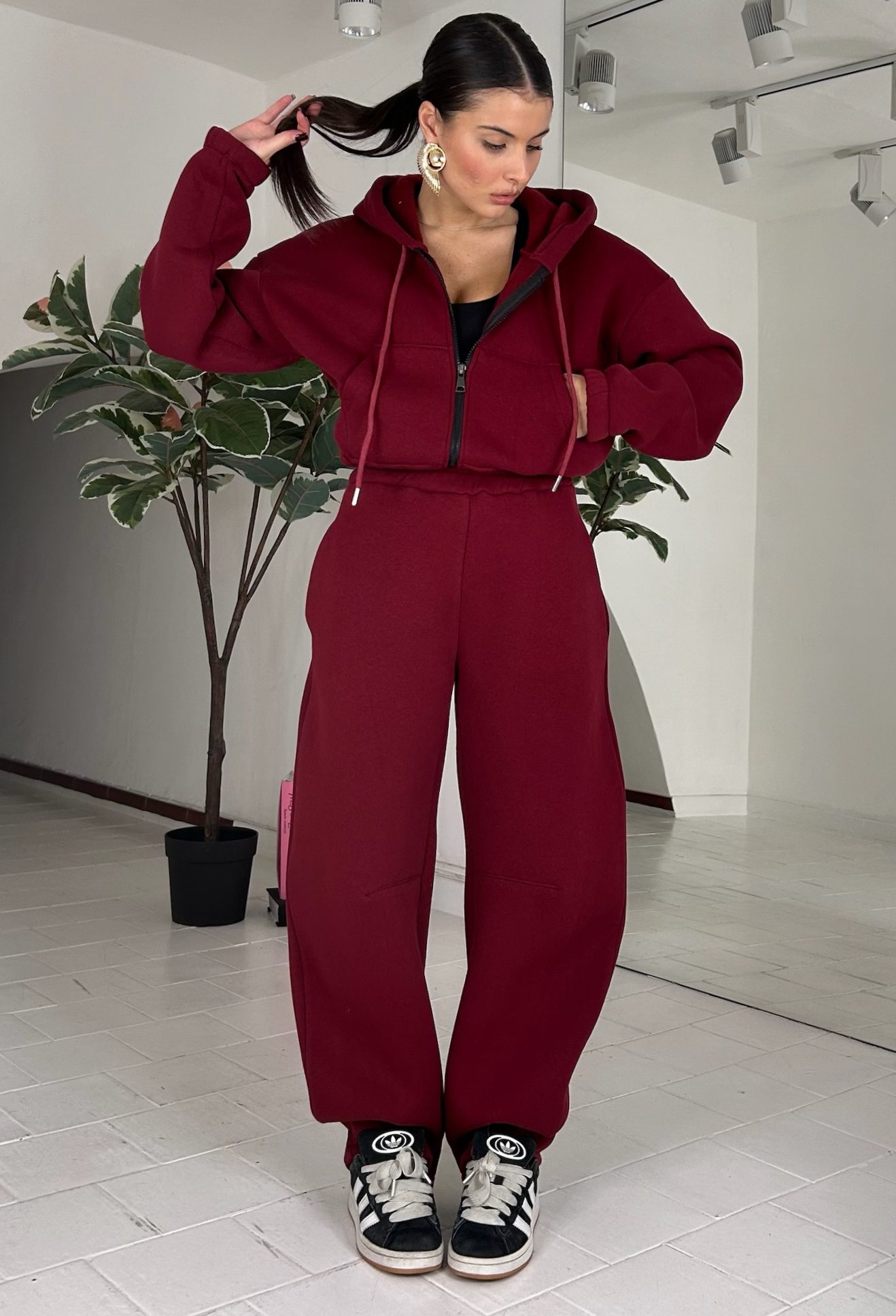 Consiglio da xs ad M. Coordinato di tuta, interno felpato. Pantalone con elastico in vita e tasche. Felpa con zip. La modella รจ una taglia S ed รจ alta 1.60cm