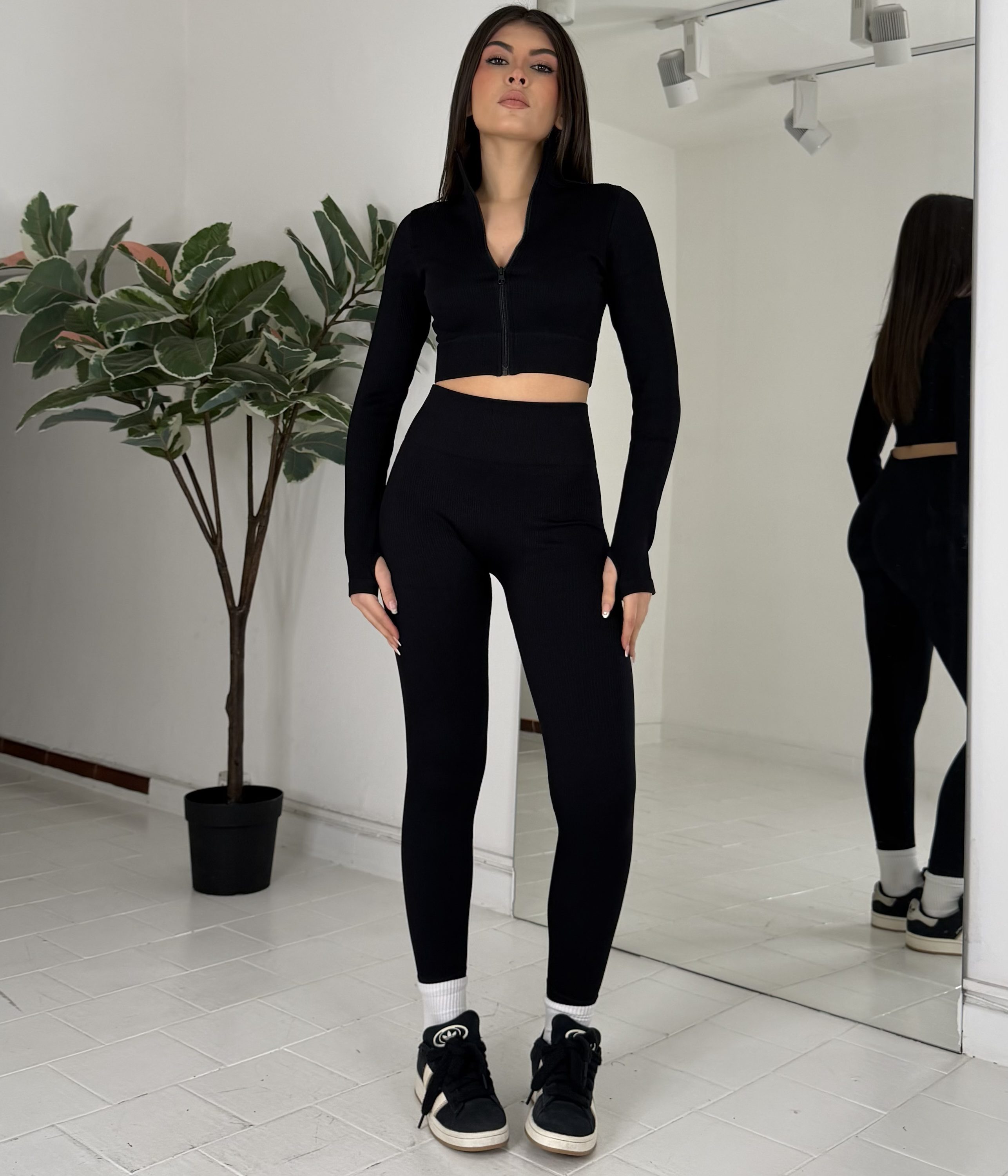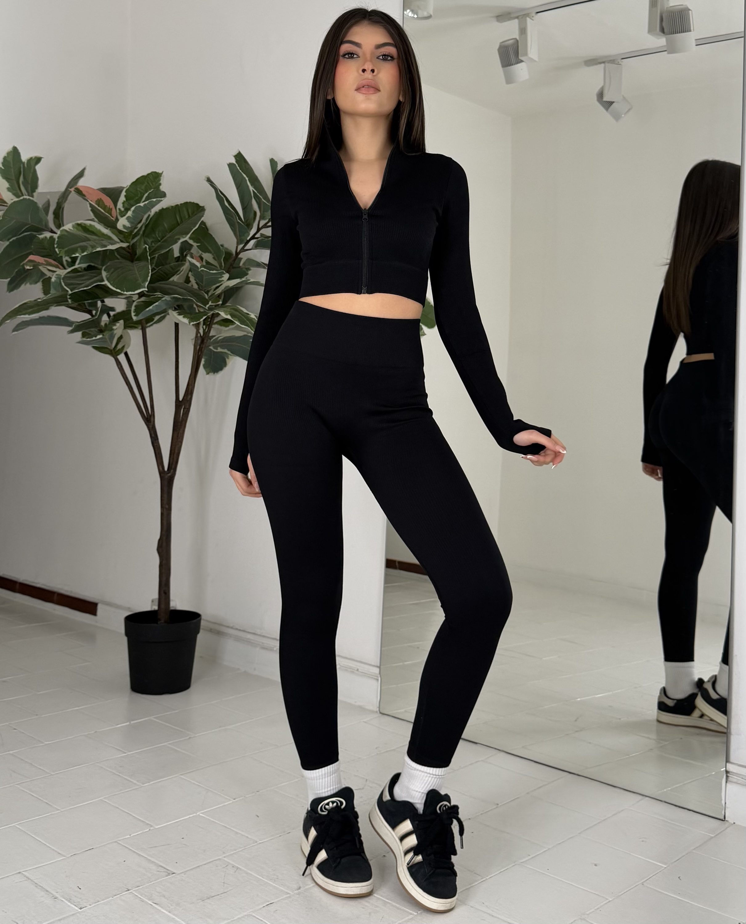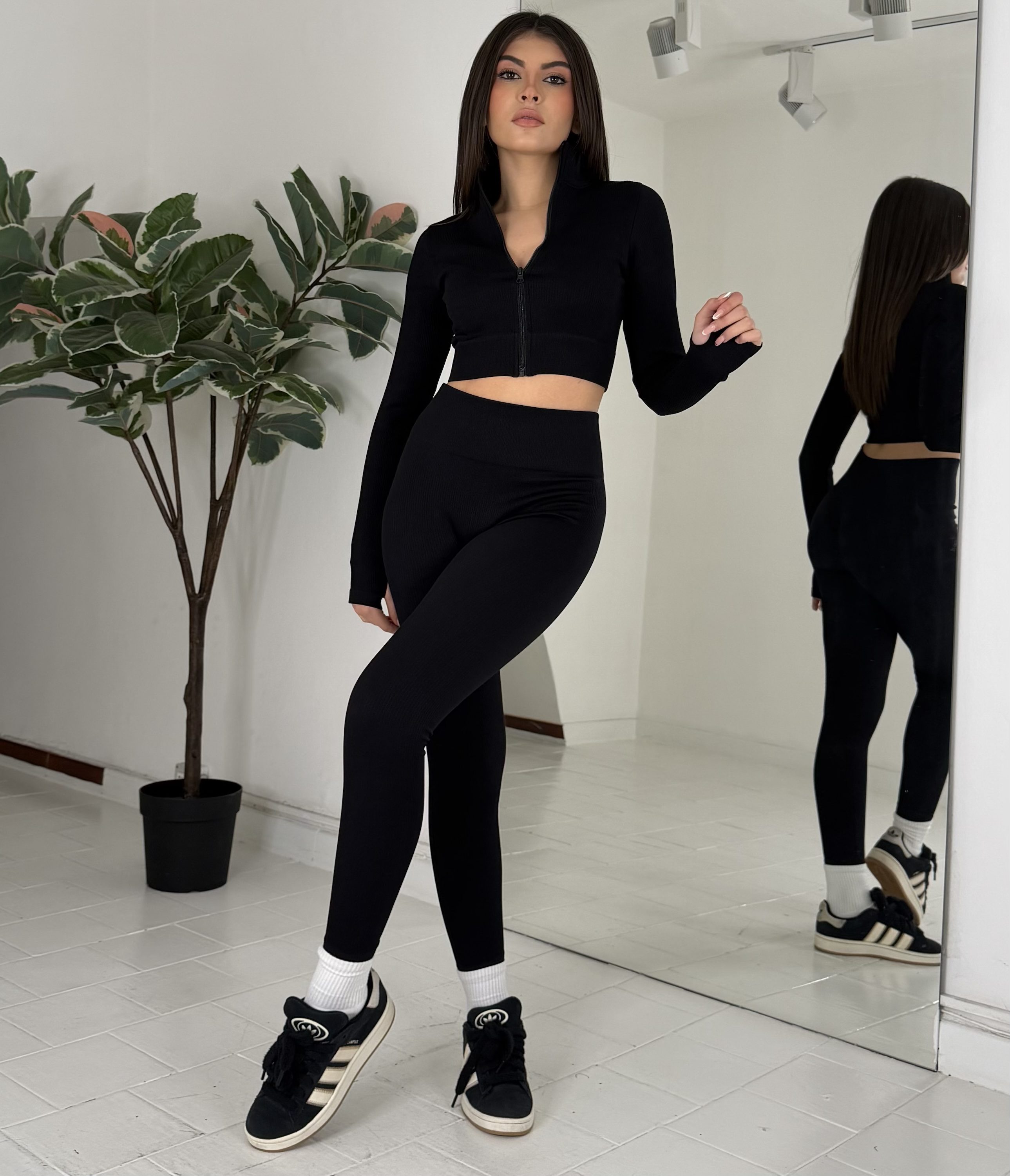 Consiglio da xs ad L, in costina. Giacca con zip e manicotti, pantalone con elastico in vita. La modella รจ una taglia S ed รจ alta 1.65cm
