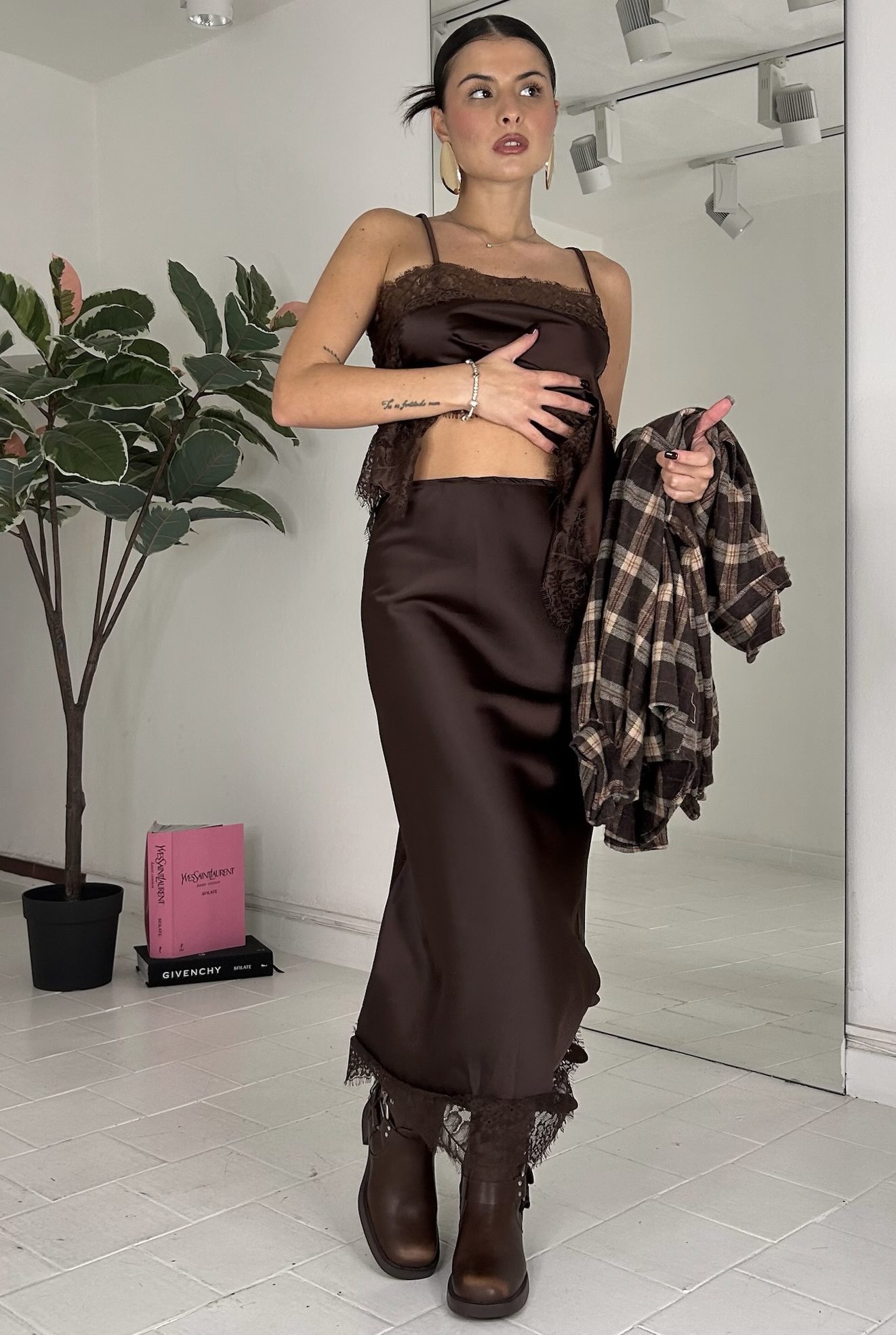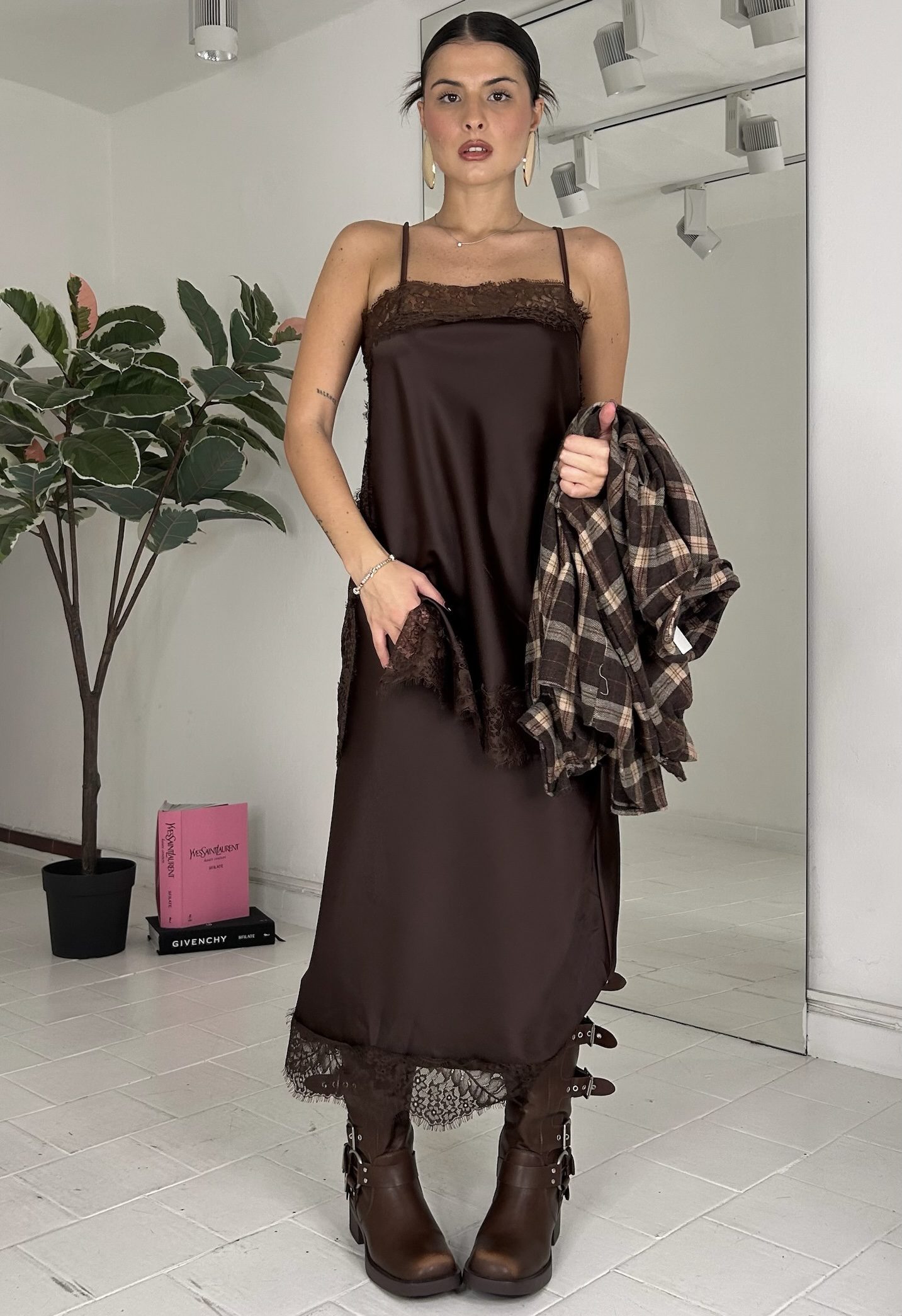 Consiglio da xs ad L, bretelle elasticizzate, in satin misto pizzo. La modella รจ una taglia S ed รจ alta 1.60cm