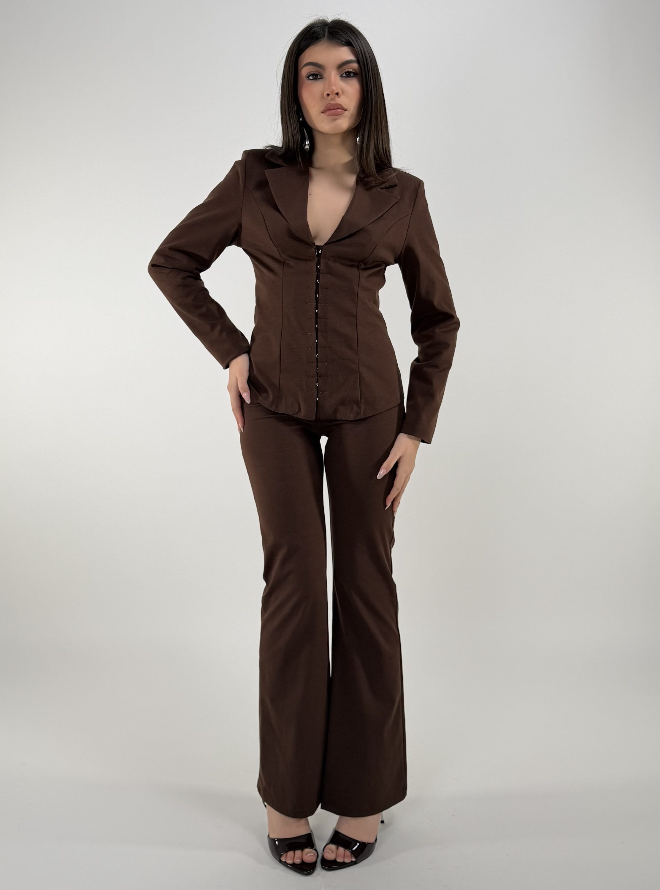 Consiglio da xs ad L, elasticizzato. Pantalone con elastico in vita. Blazer chiusura frontale con gancetti, con spalline rinforzate. La modella รจ una taglia S ed รจ alta 1.65cm