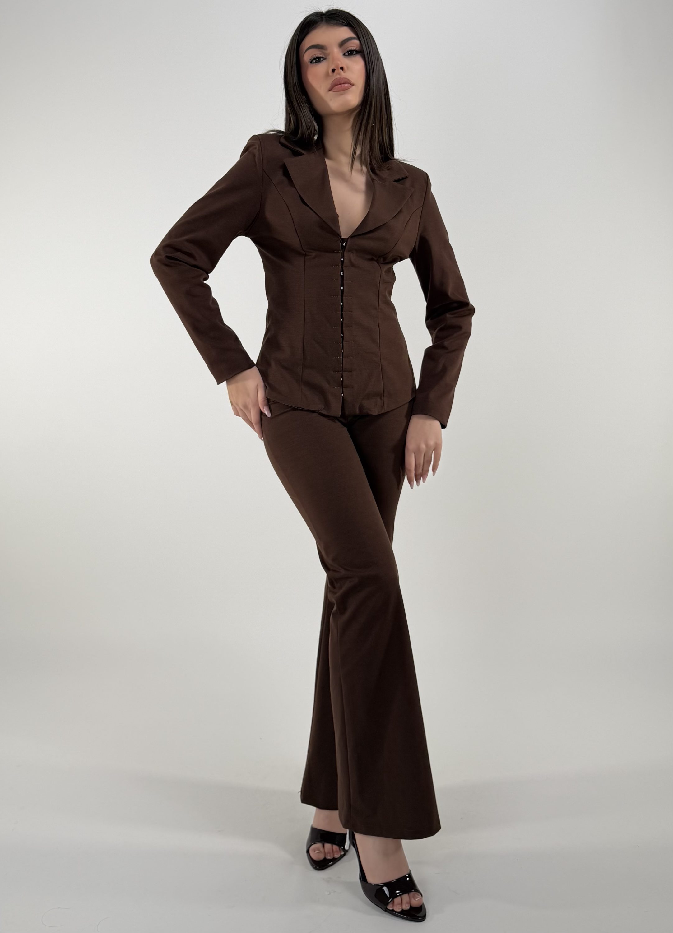 Consiglio da xs ad L, elasticizzato. Pantalone con elastico in vita. Blazer chiusura frontale con gancetti, con spalline rinforzate. La modella รจ una taglia S ed รจ alta 1.65cm