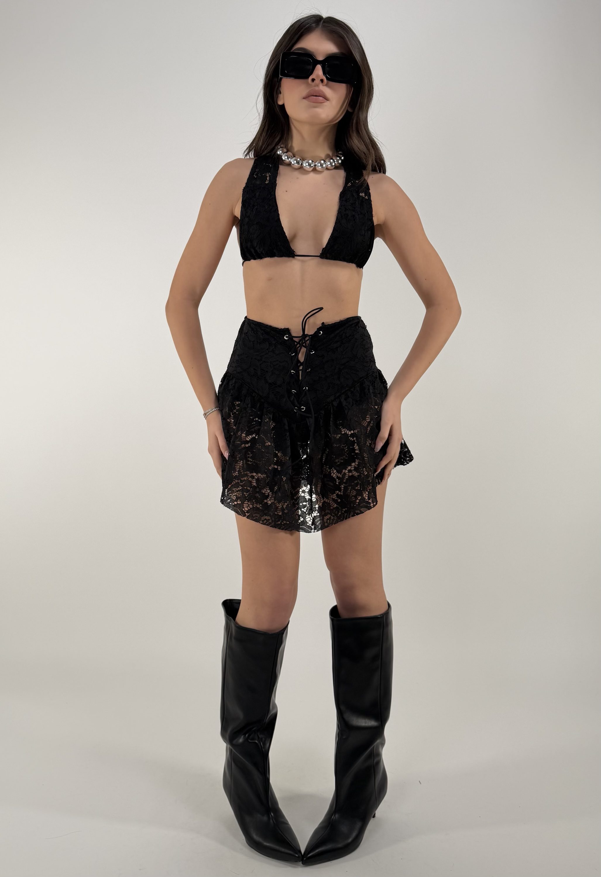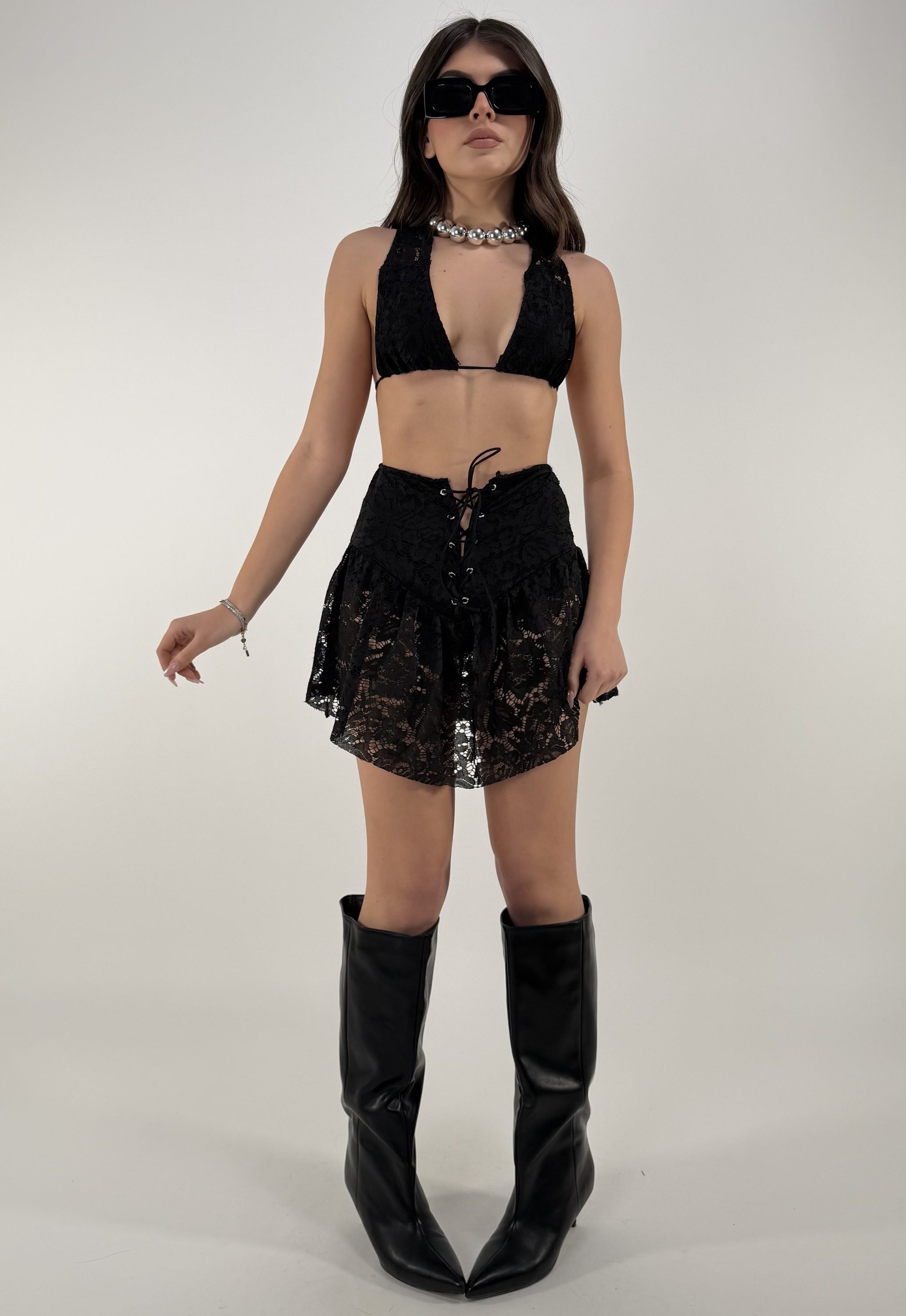Consiglio da xs ad XL, elasticizzato. Top regolabile. Pantagonna con laccetti regolabili. La modella รจ alta 1.65cm ed รจ una taglia S