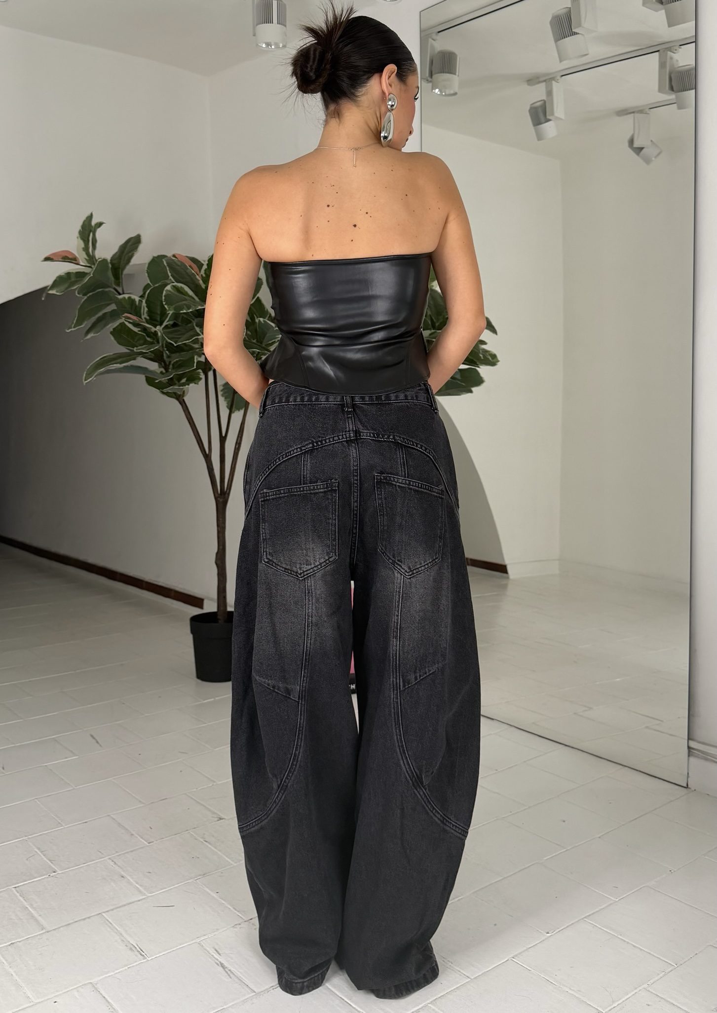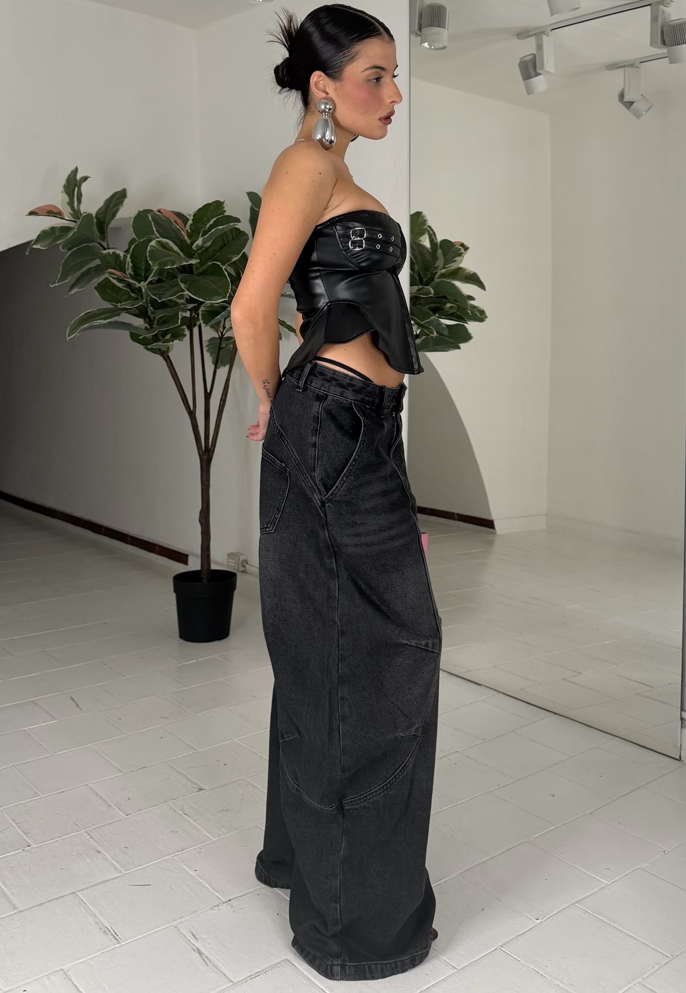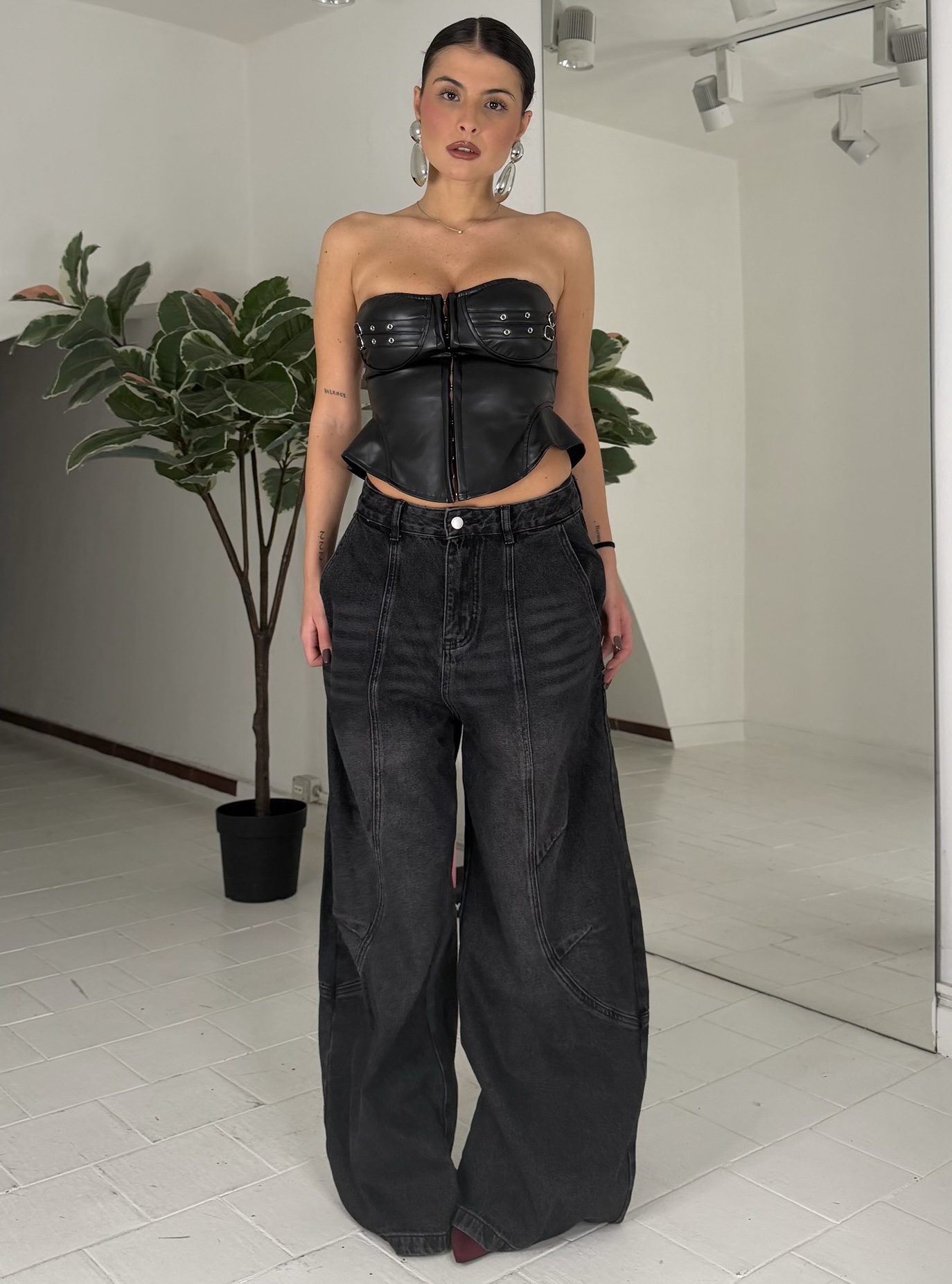 Consiglio da xs ad M, con coppe, in ecopelle. La modella รจ una taglia S