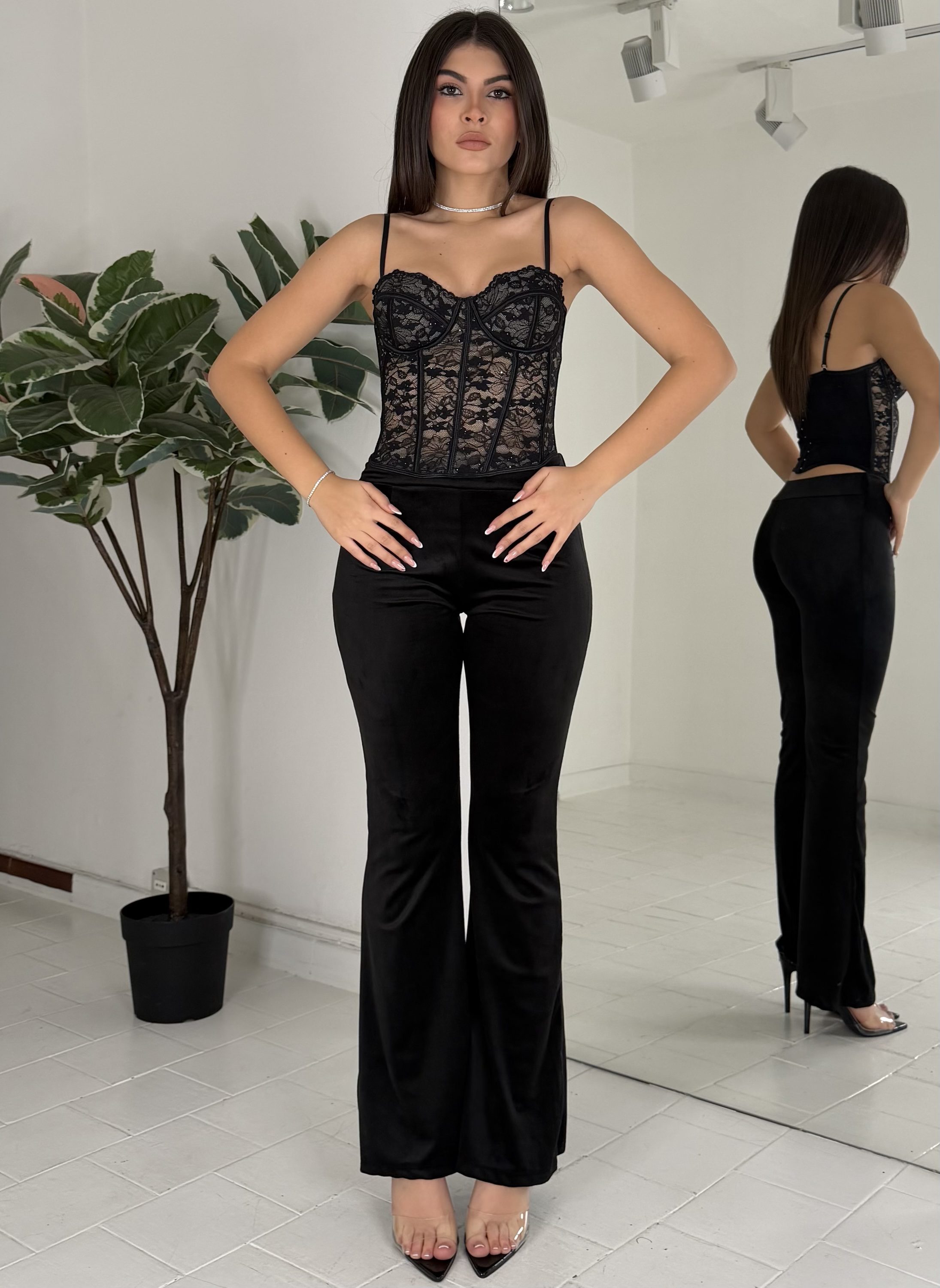 Consiglio da xs ad L,regolabile sul retro, bretelle regolabili, con coppe, con strass. La modella รจ una taglia S ed รจ alta 1.65cm