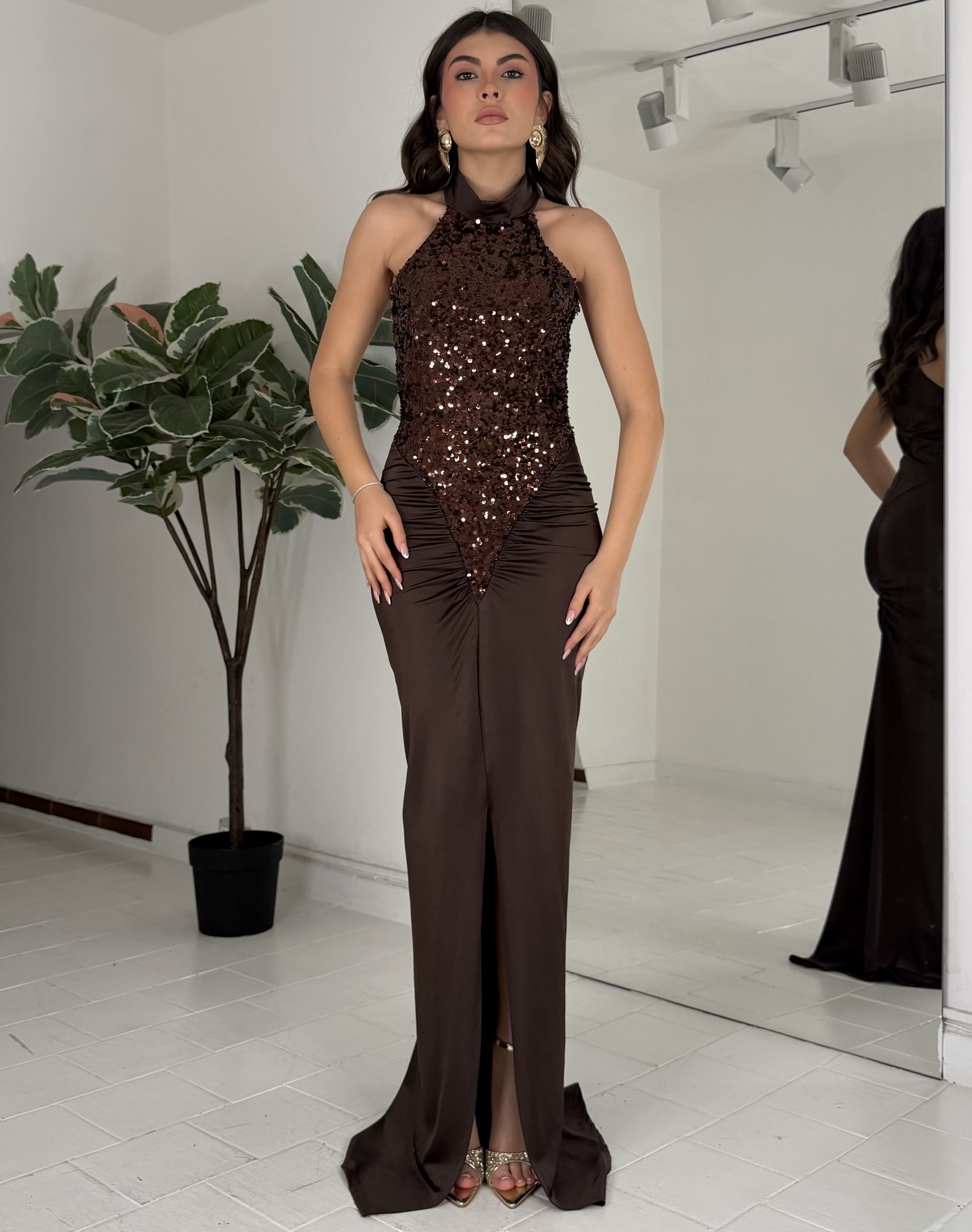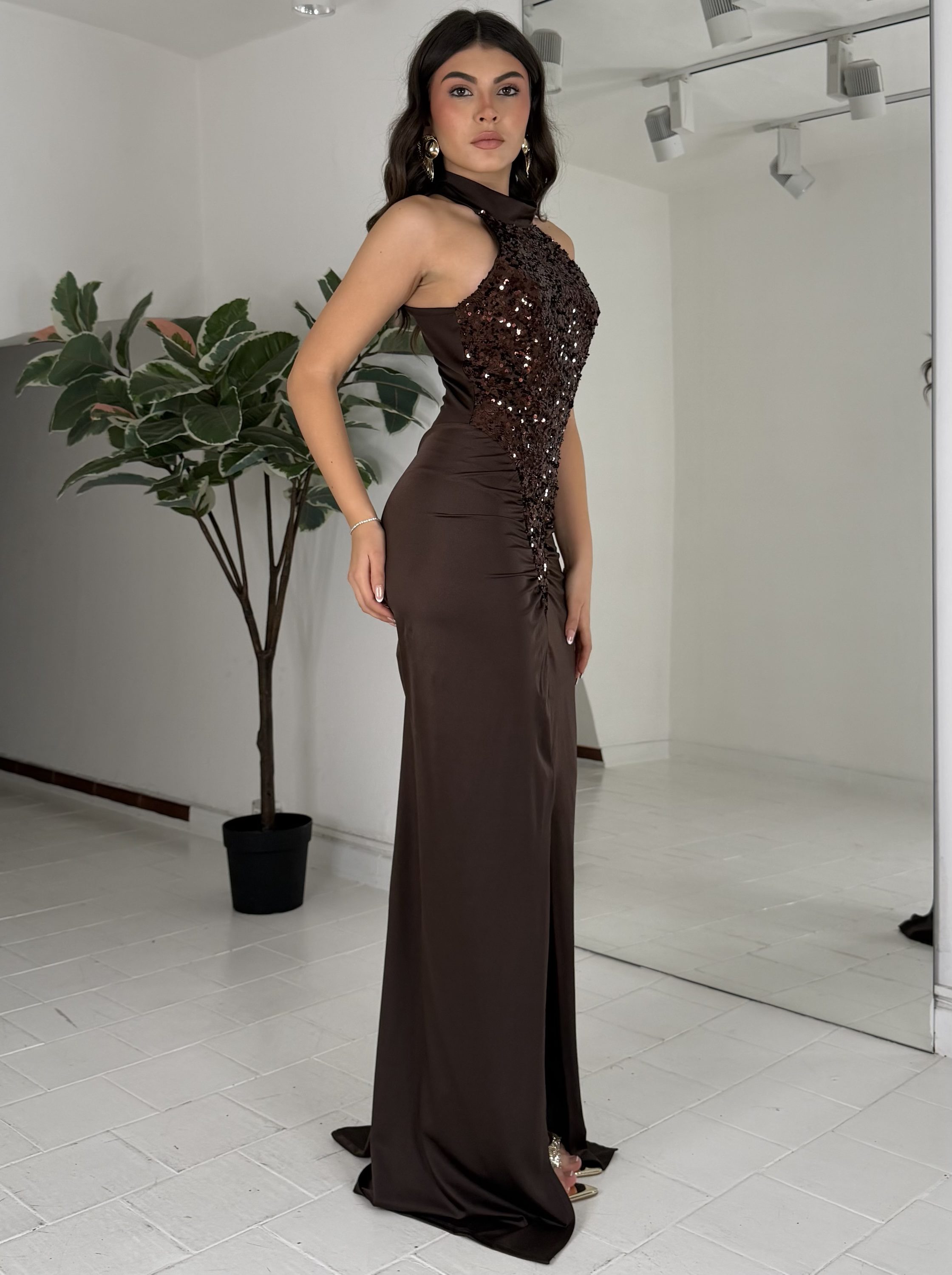 Consiglio da xs ad L, chiusura dietro il collo. La modella รจ una taglia S ed รจ alta 1,65cm