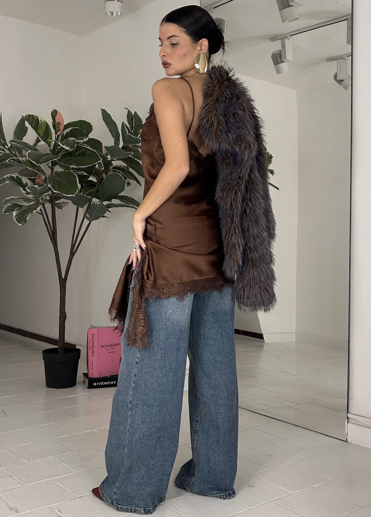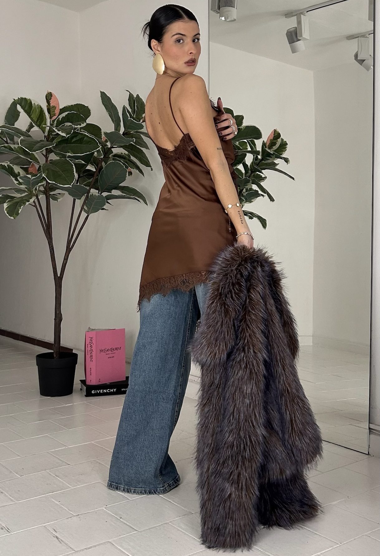 Consiglio da xs ad XL, in raso, dettaglio pizzo. La modella รจ una taglia S ed รจ alta 1.60cm