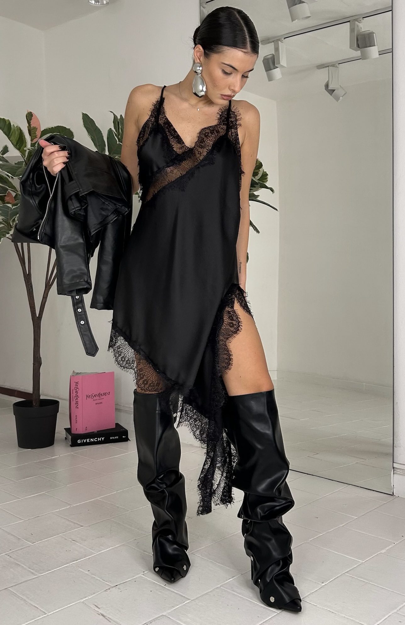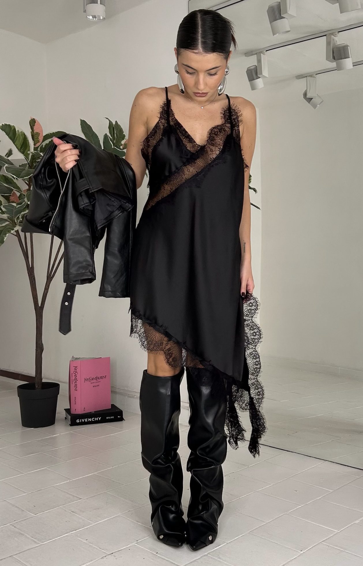 Consiglio da xs ad XL, in raso, dettaglio pizzo. La modella รจ una taglia S ed รจ alta 1.60cm
