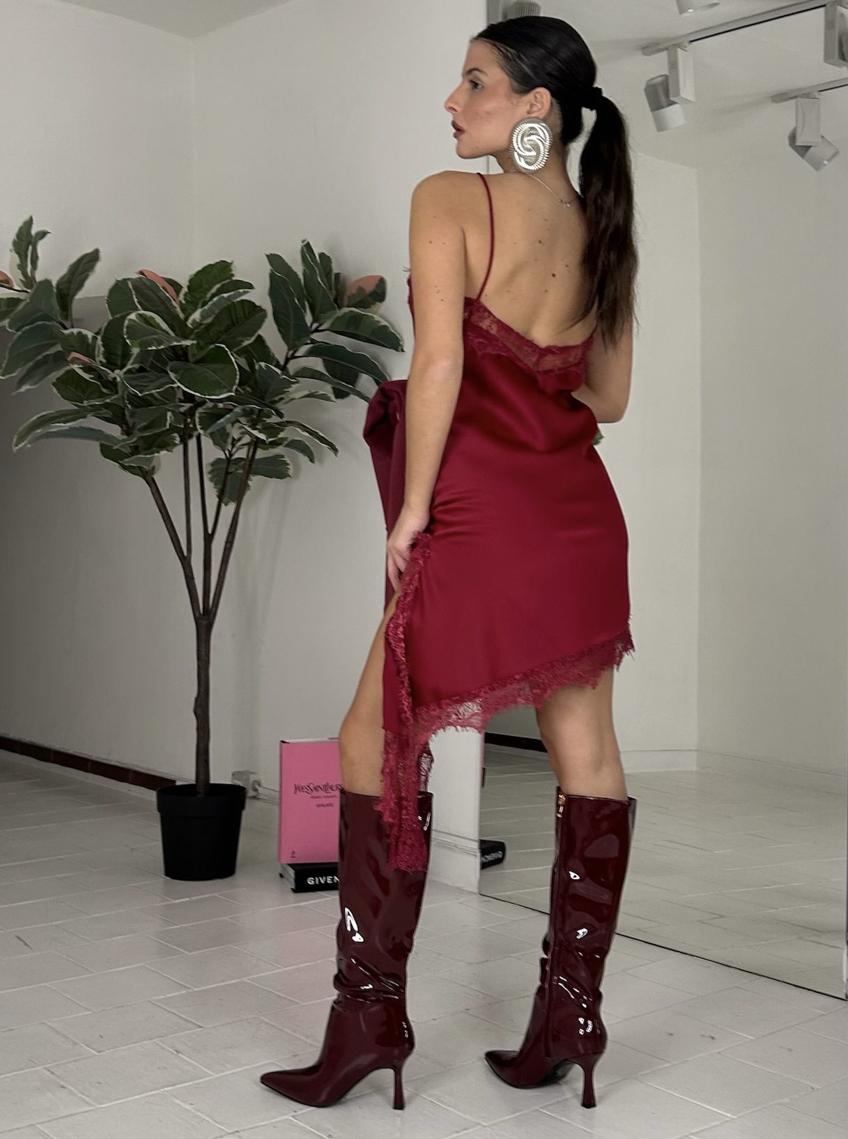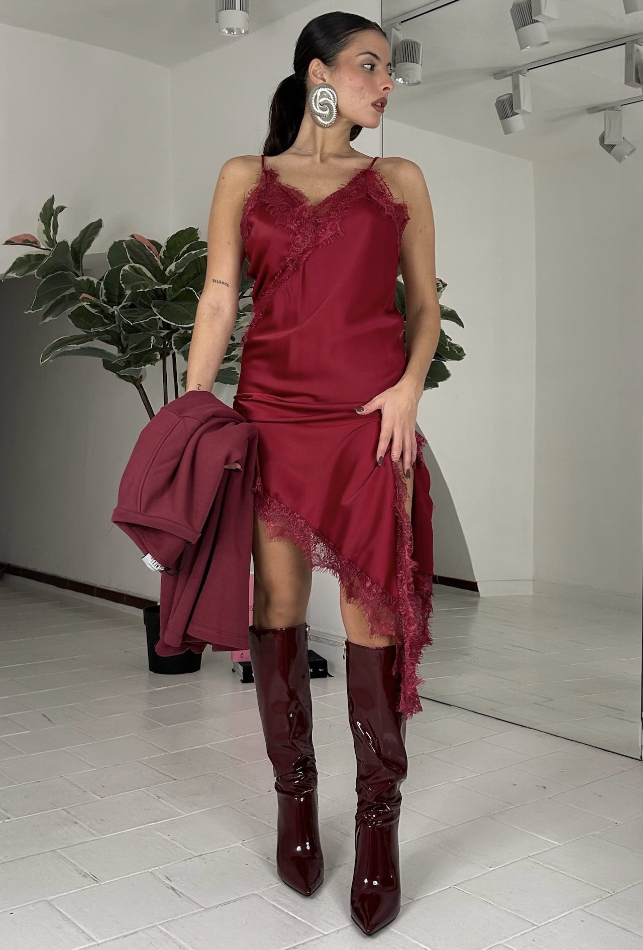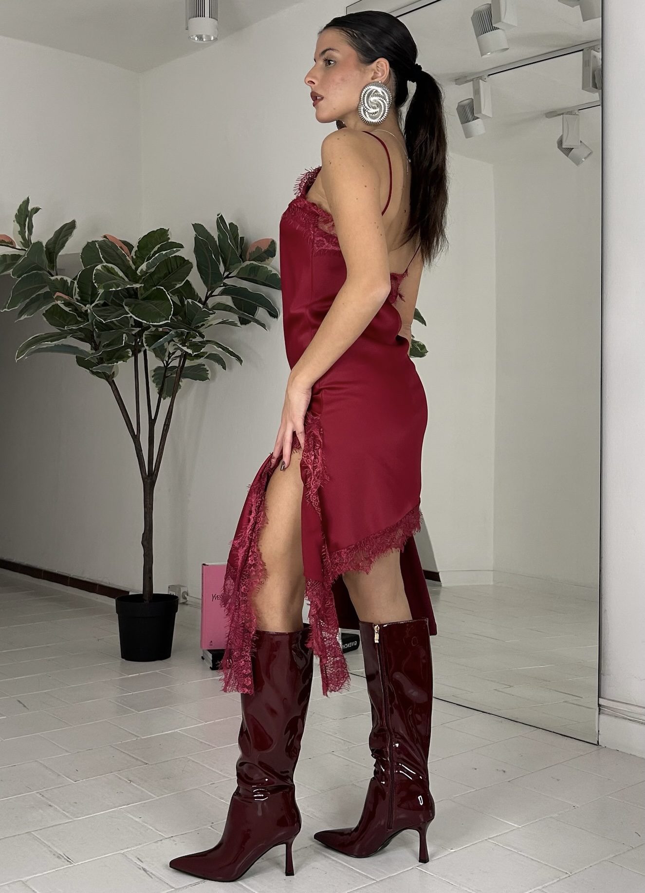 Consiglio da xs ad XL, in raso, dettaglio pizzo. La modella รจ una taglia S ed รจ alta 1.60cm