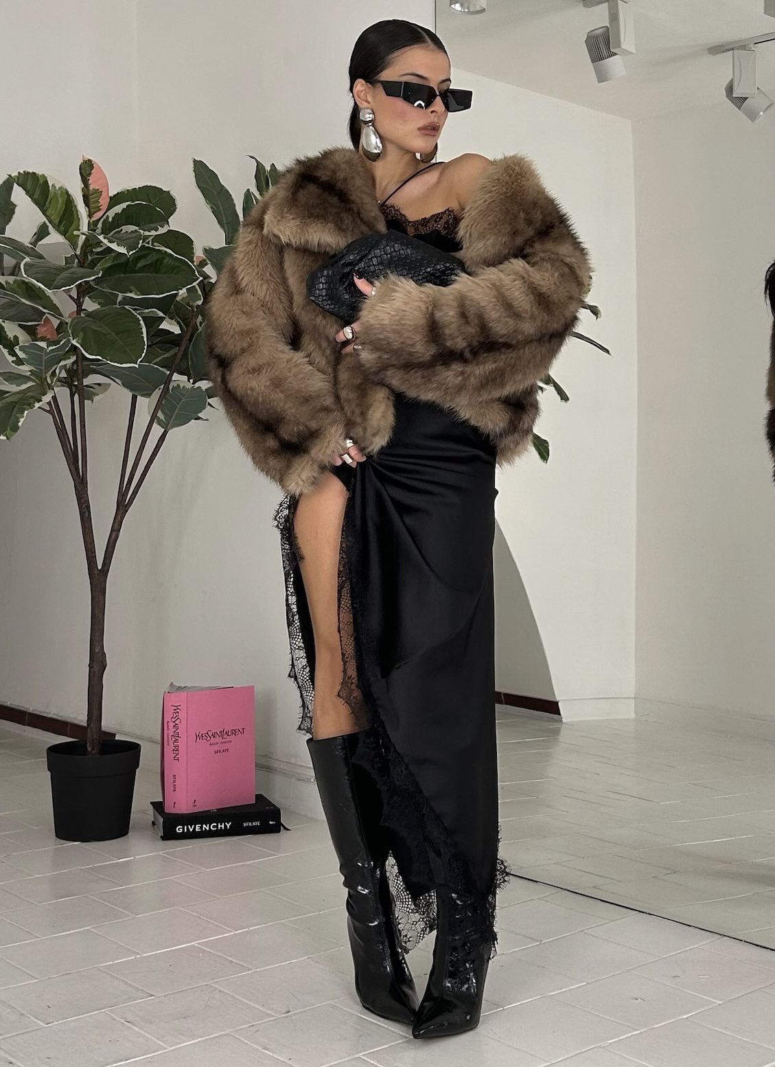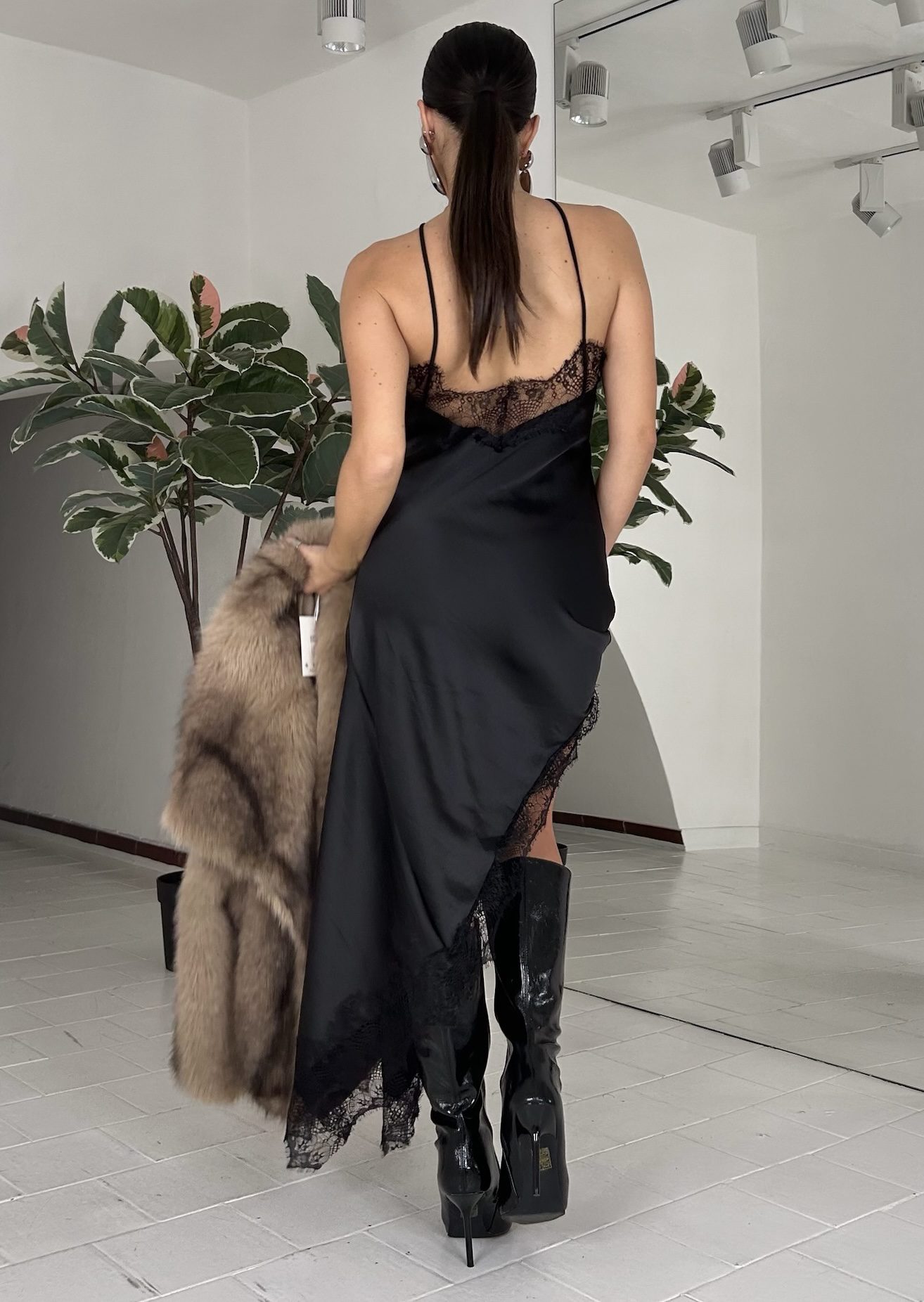 Consiglio da xs ad XL, in raso, dettaglio pizzo, bretelle elasticizzate. La modella รจ una taglia S ed รจ alta 1.60cm