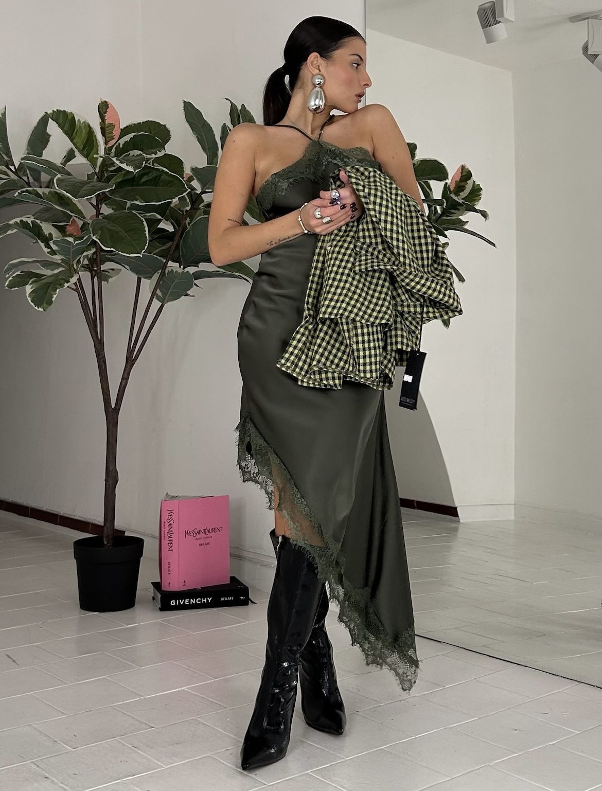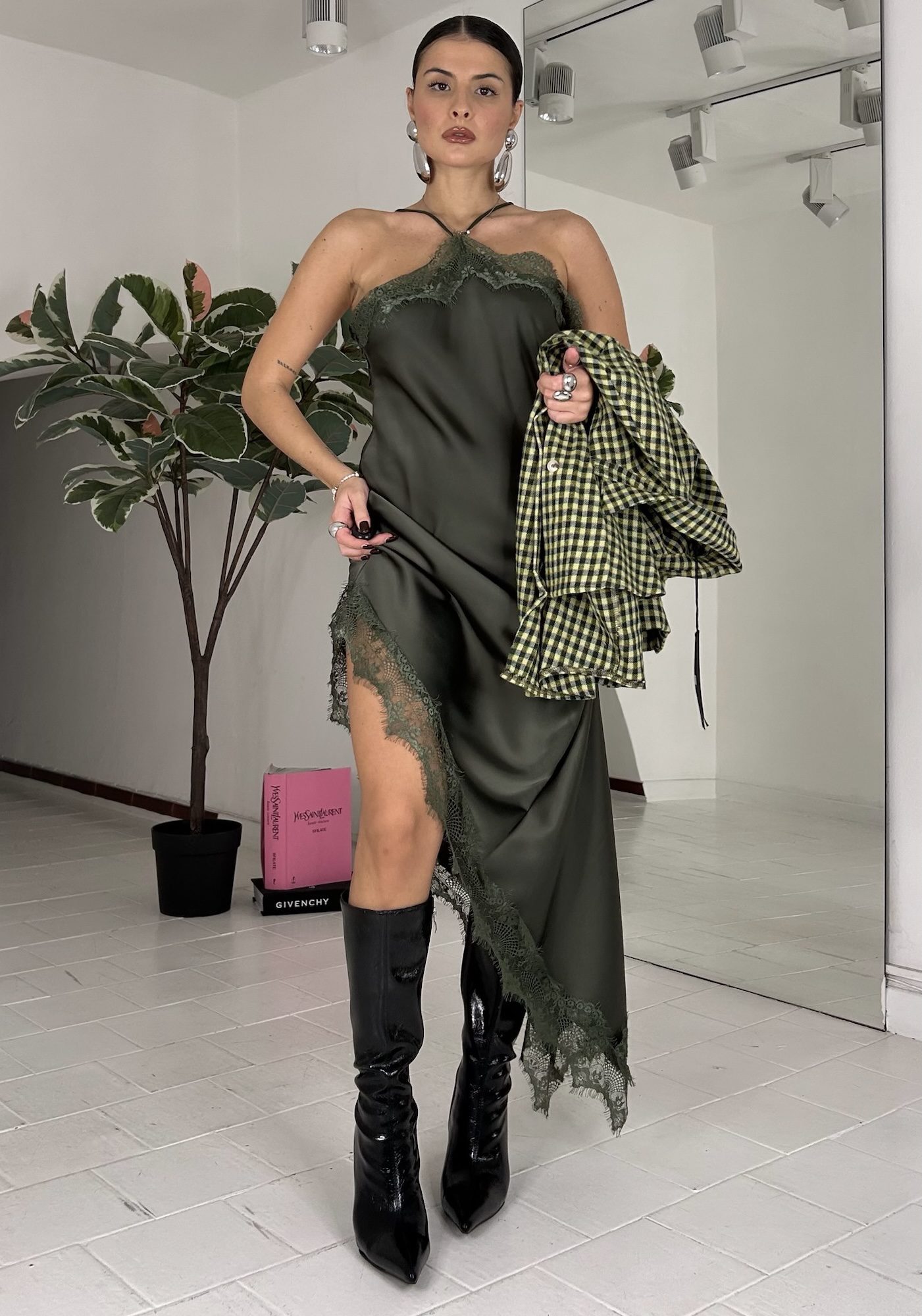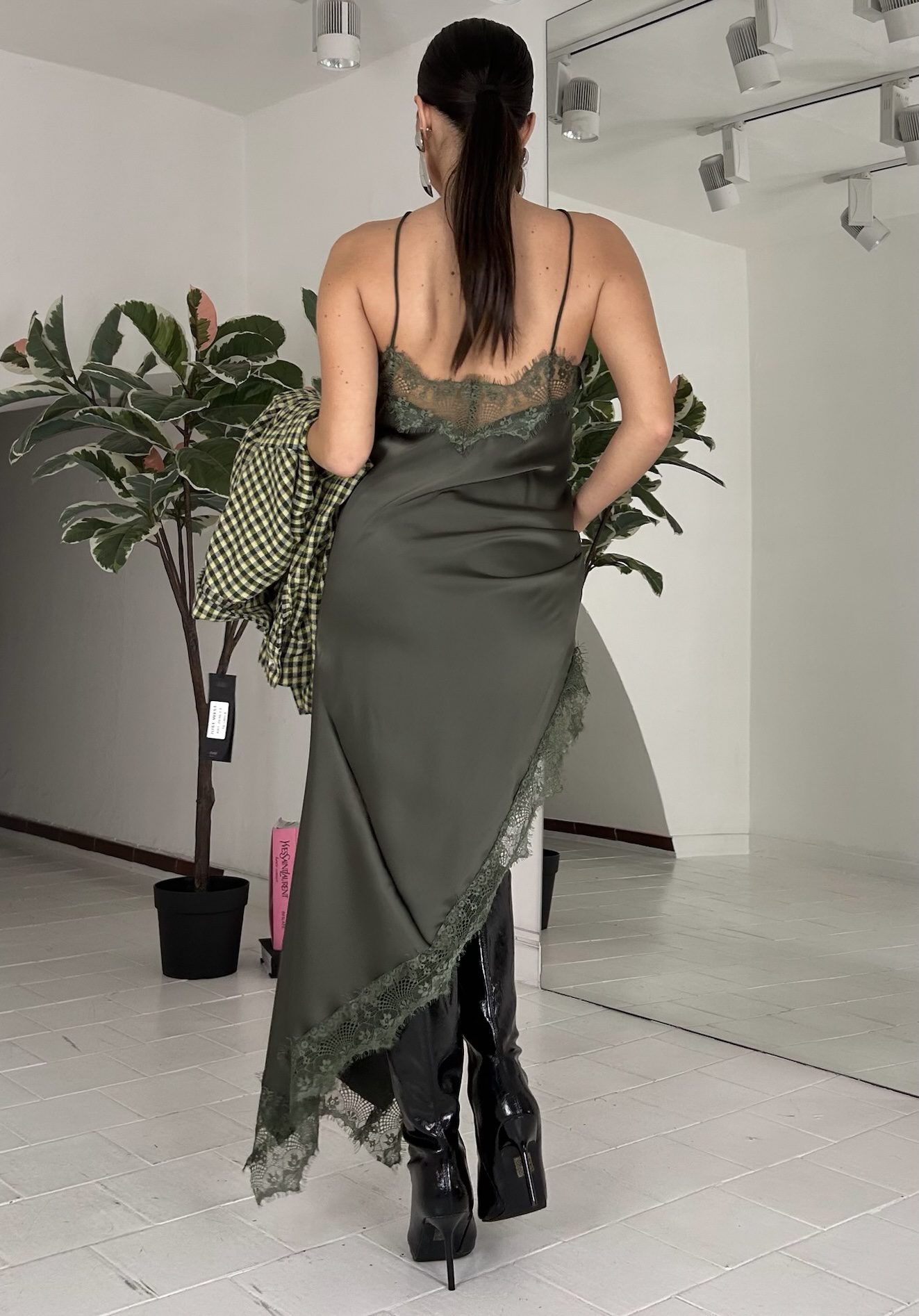 Consiglio da xs ad XL, in raso, dettaglio pizzo, bretelle elasticizzate. La modella รจ una taglia S ed รจ alta 1.60cm