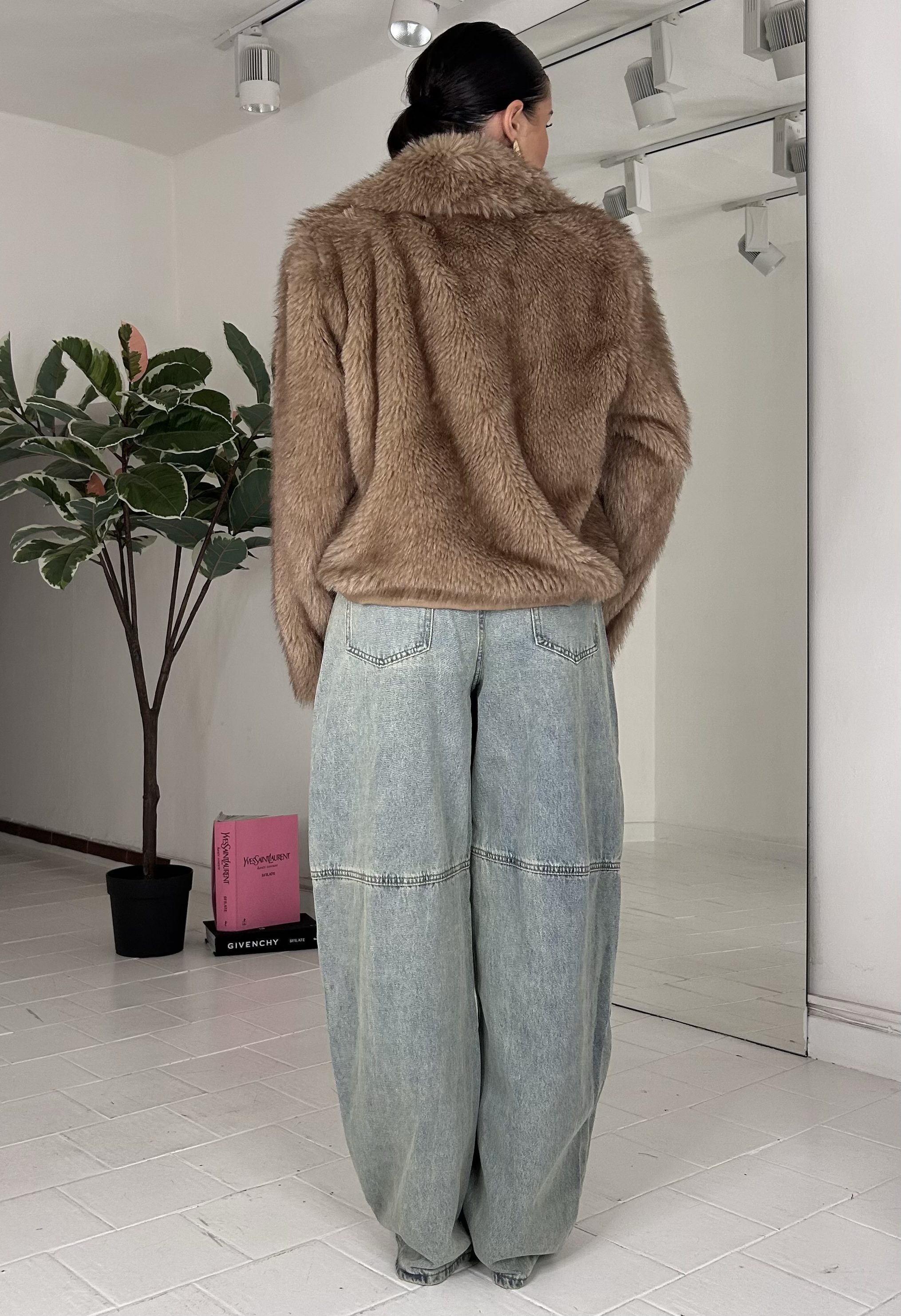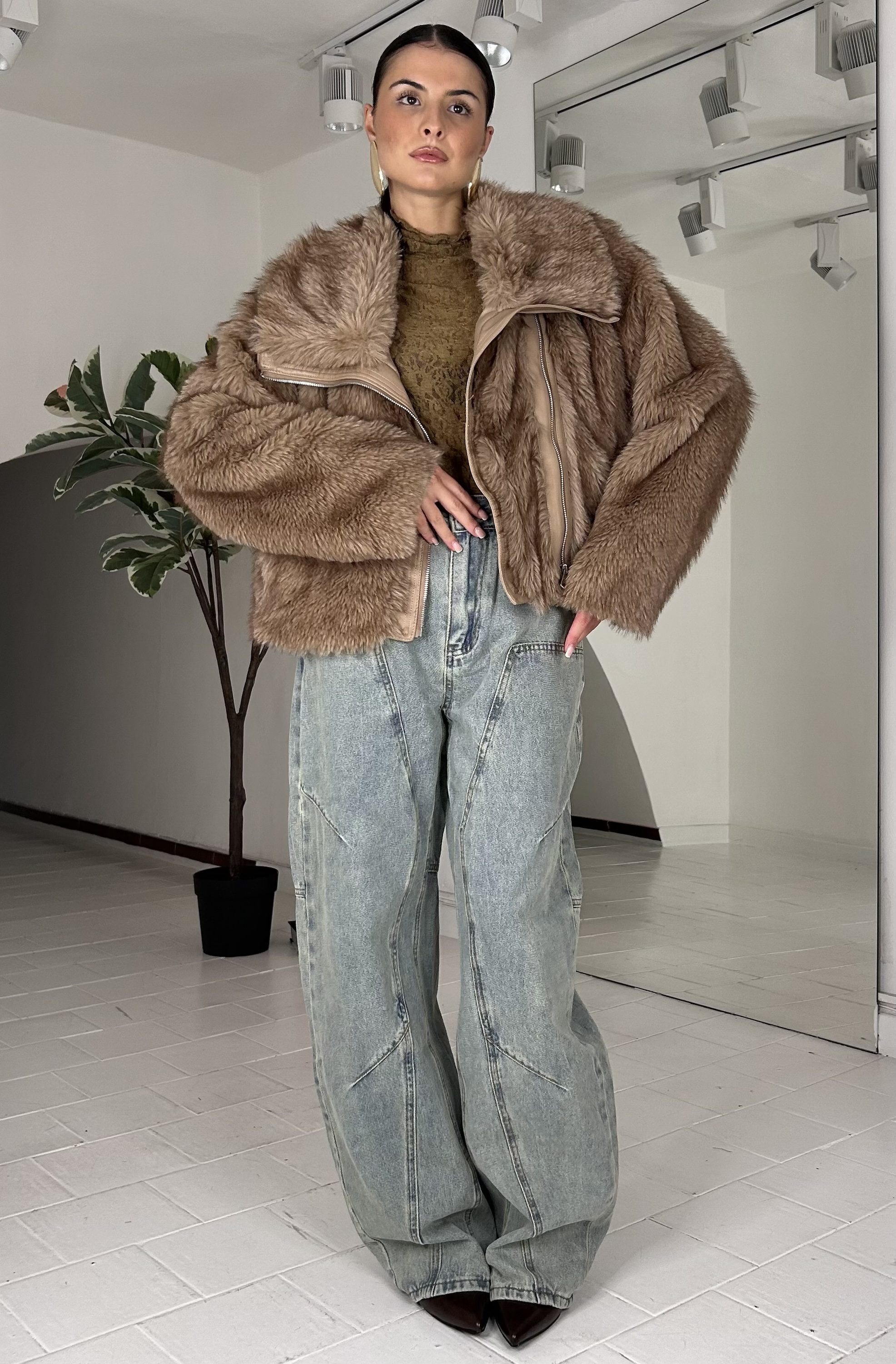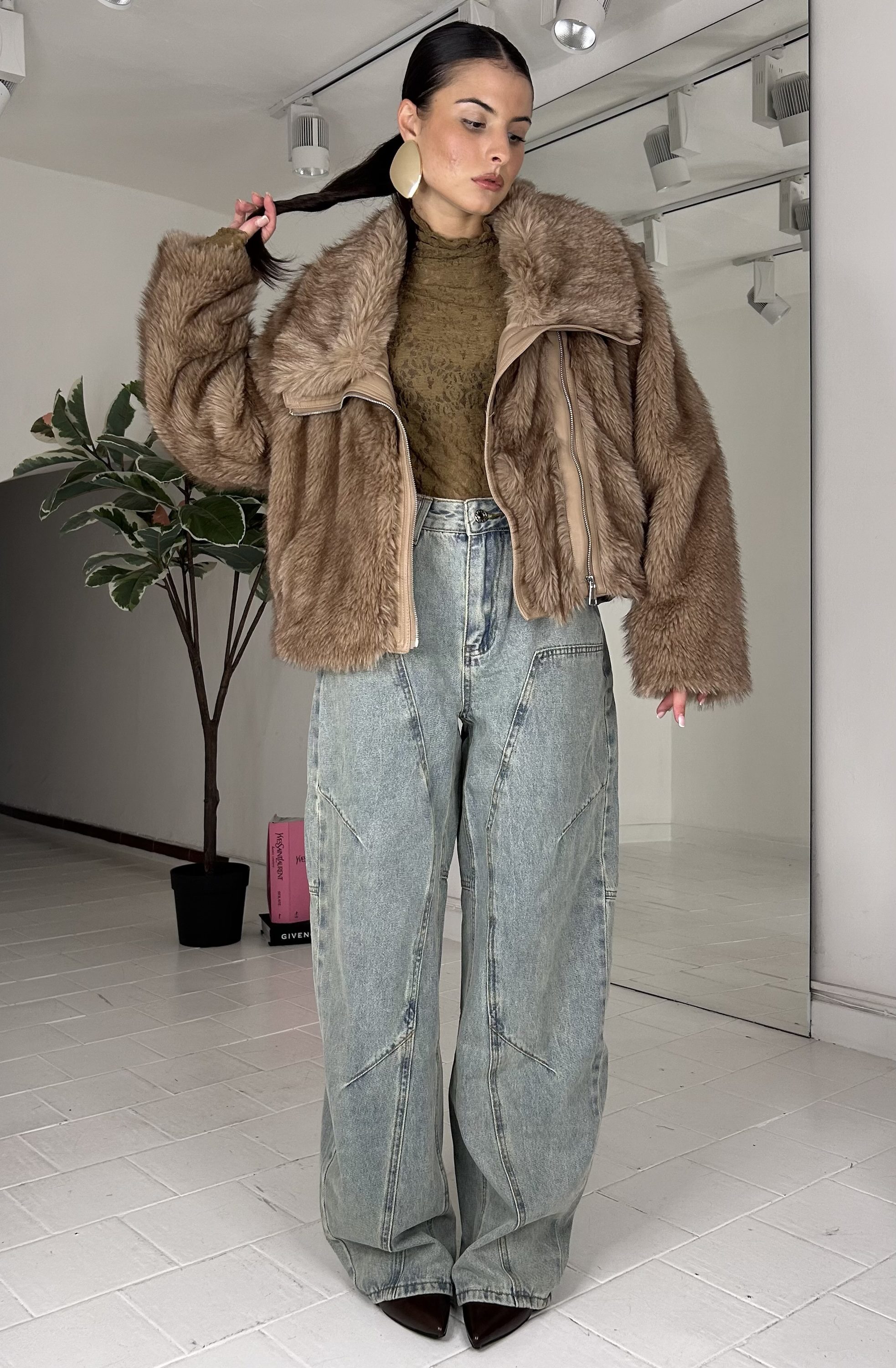 Consiglio da xs ad L, con dettagli in ecopelle, foderata, con tasche e zip. La modella รจ una taglia S
