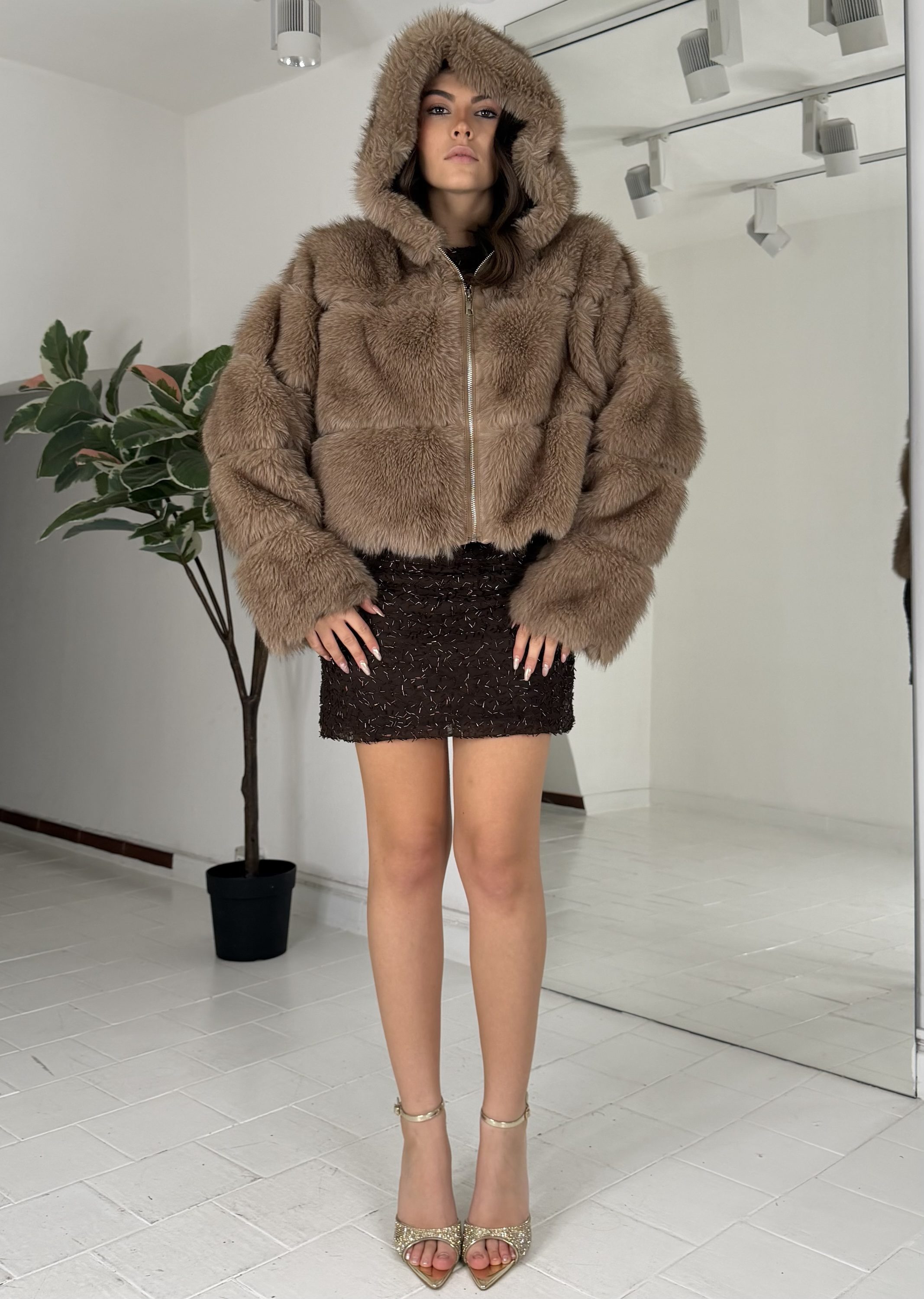Con cappuccio, consiglio da xs ad L, con Zip e tasche. La modella รจ una taglia S ed รจ alta 1.65cm