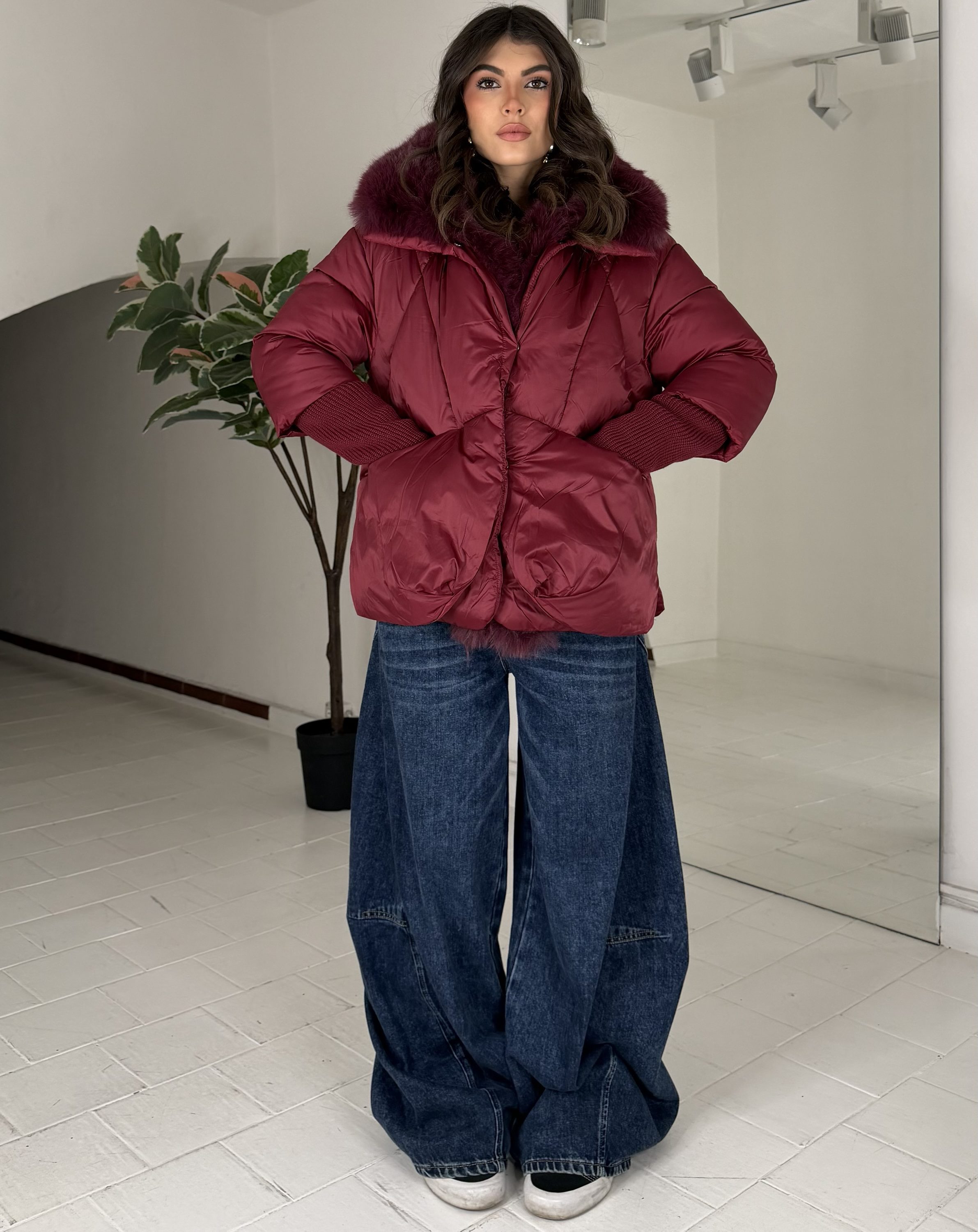 Consiglio da xs ad L, con gancetti, parte in Ecopelliccia rimovibile, con bottoni e tasche, Top Quality. La modella รจ alta 1.65cm ed รจ una taglia S