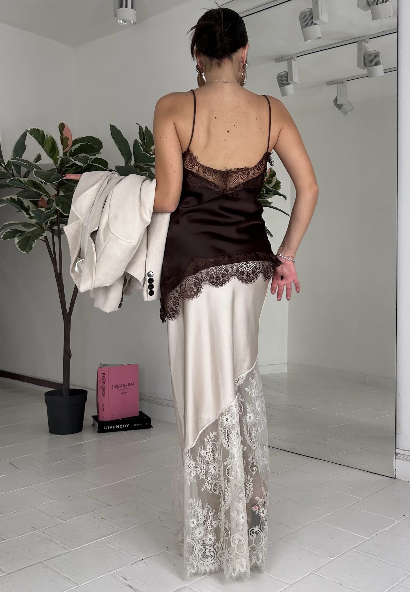 Consiglio da xs ad L, elastico in vita, in satin misto pizzo. La modella รจ una taglia S ed รจ alta 1.60cm... read more